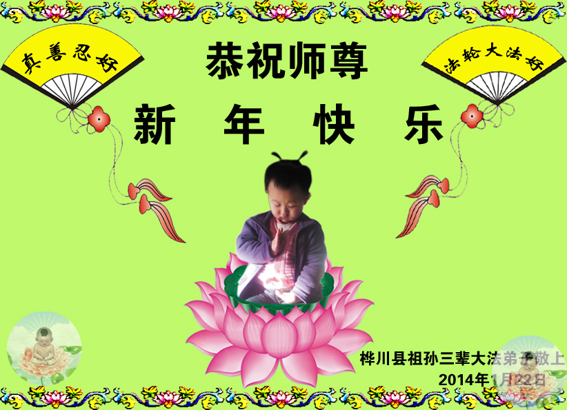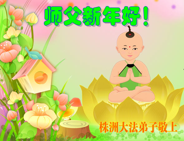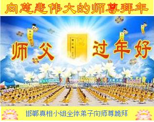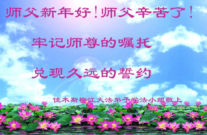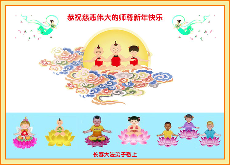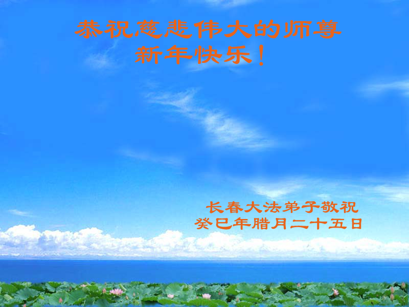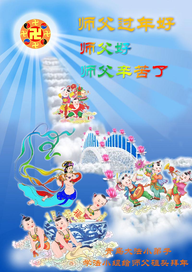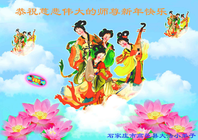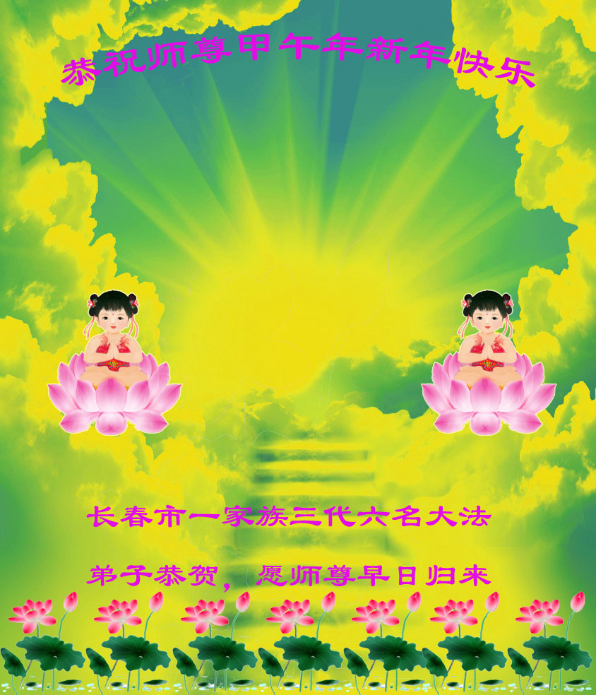 师尊新年好!弟子们想念您,谢谢您的慈悲救度!我们无法用语言来表达对您的敬意,只有在今后做的更好些,多救人,兑现我们的誓约,跟师尊回家。