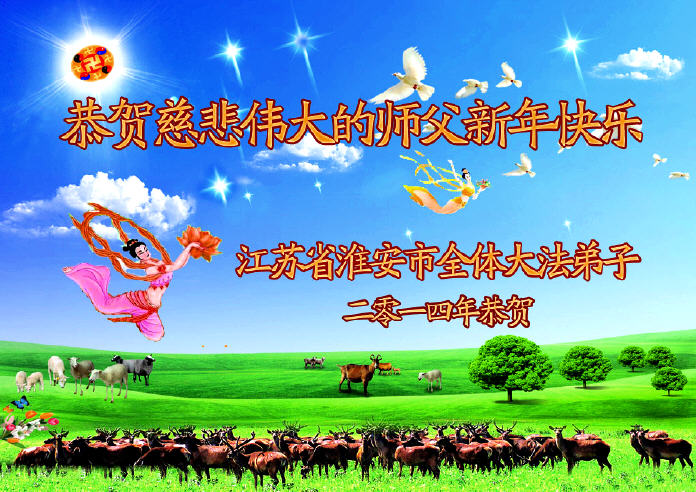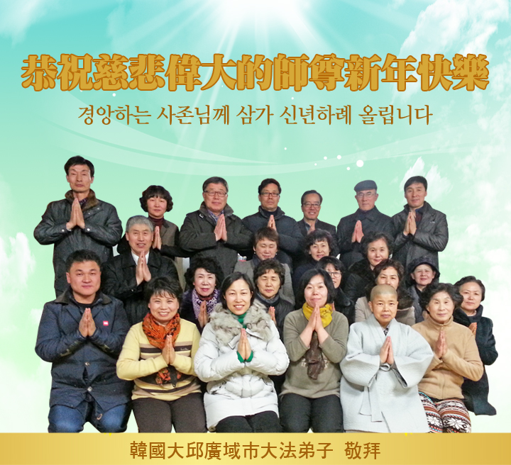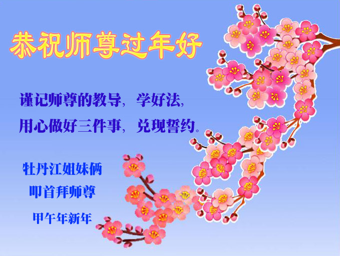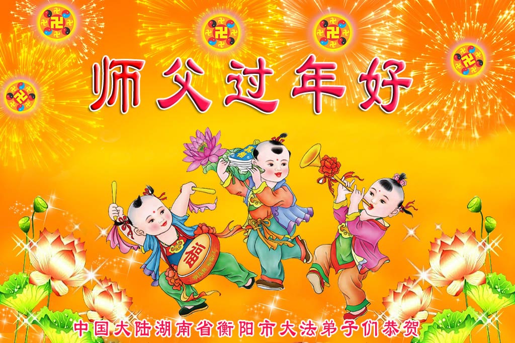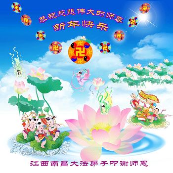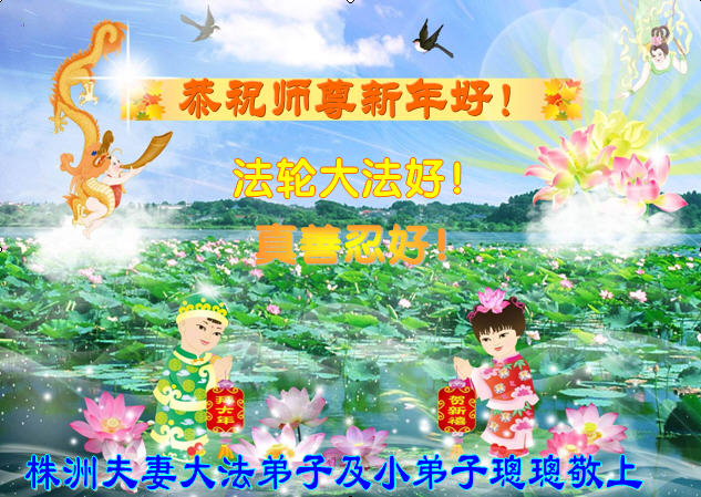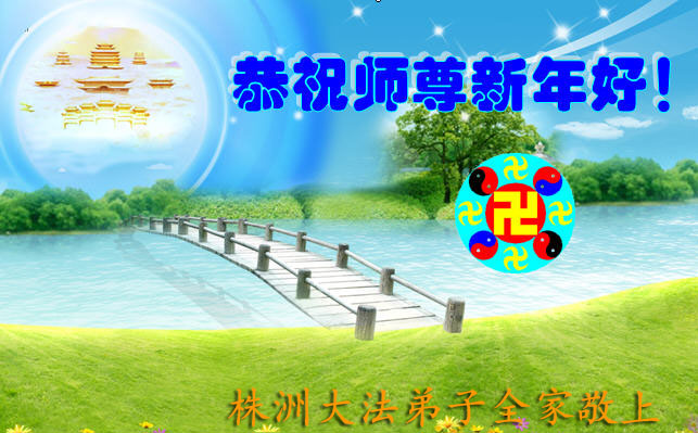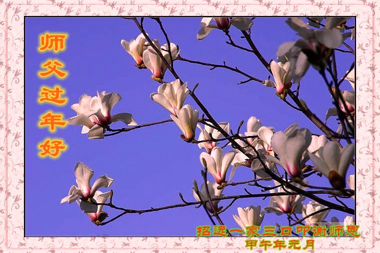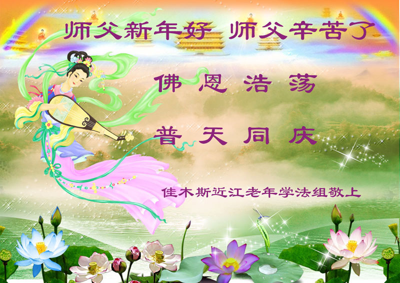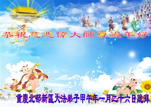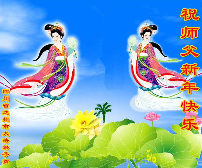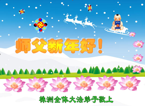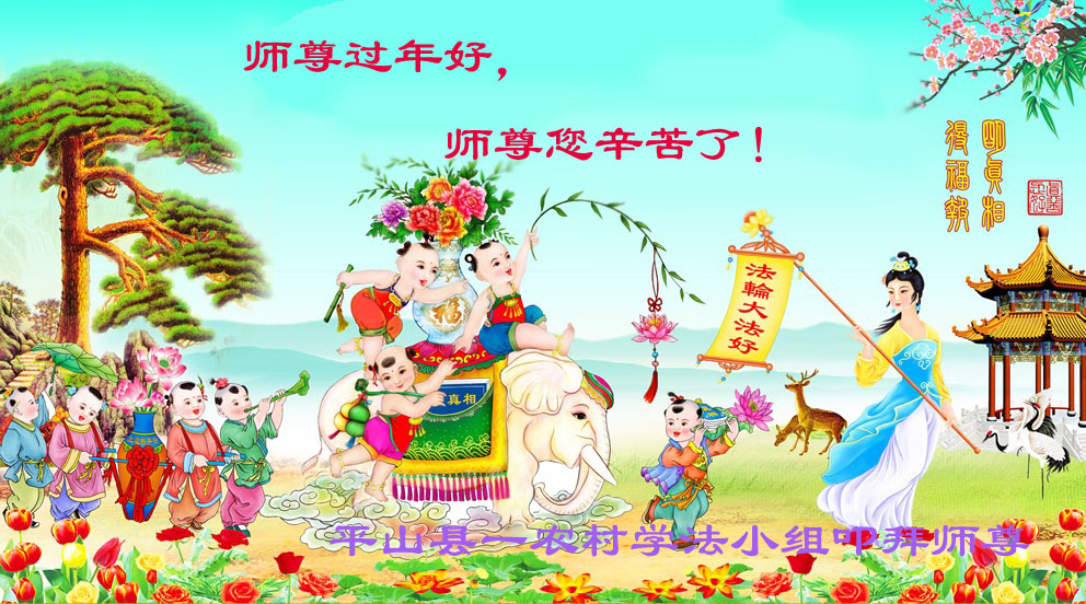 师尊新年好!弟子们想念您,谢谢您的慈悲救度!我们无法用语言来表达对您的敬意,只有在今后做的更好些,多救人,兑现我们的誓约,跟师尊回家。