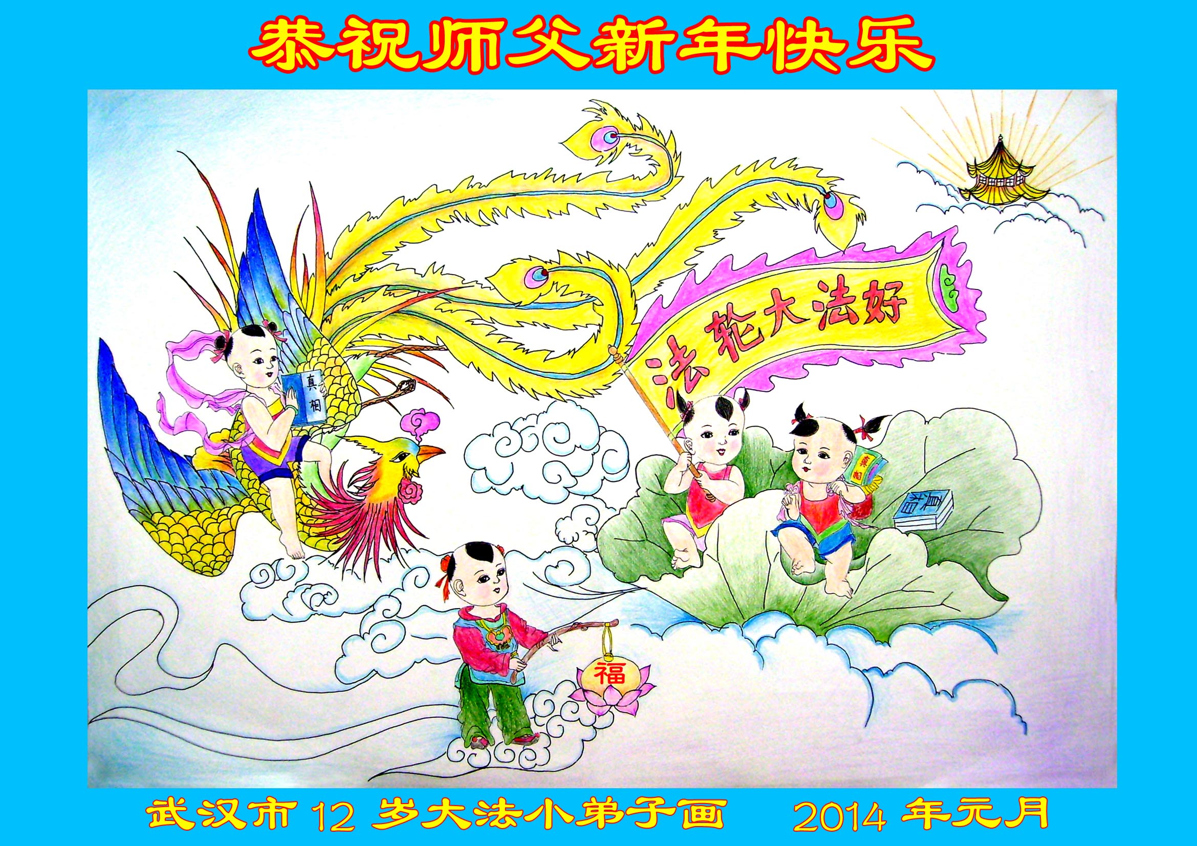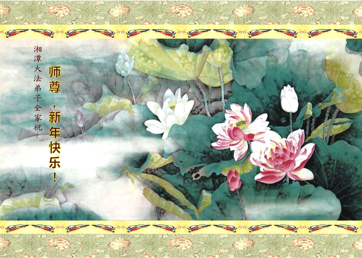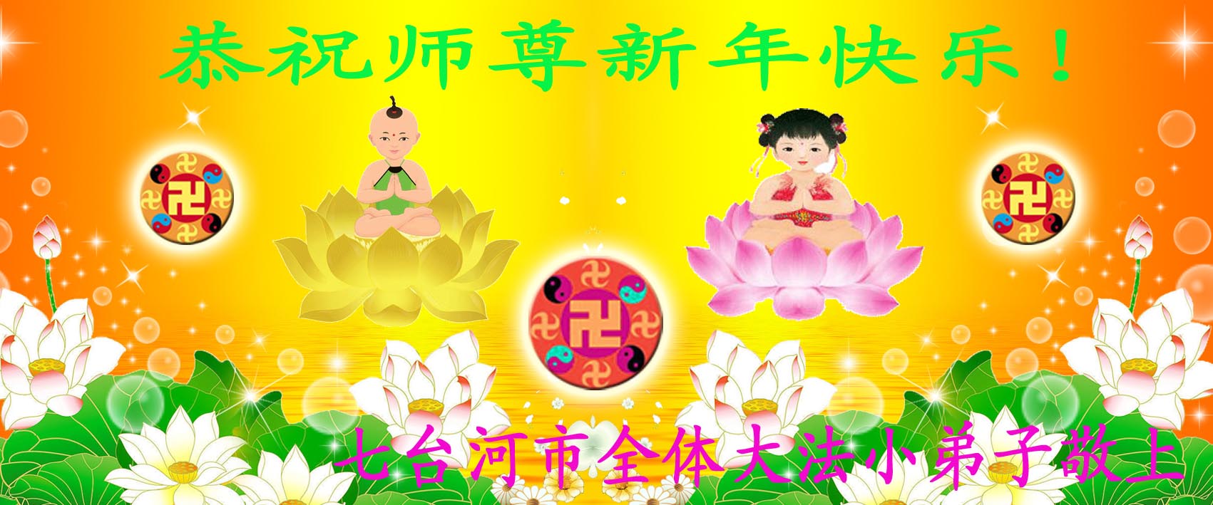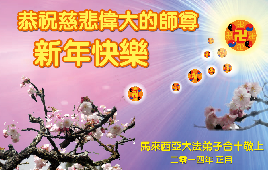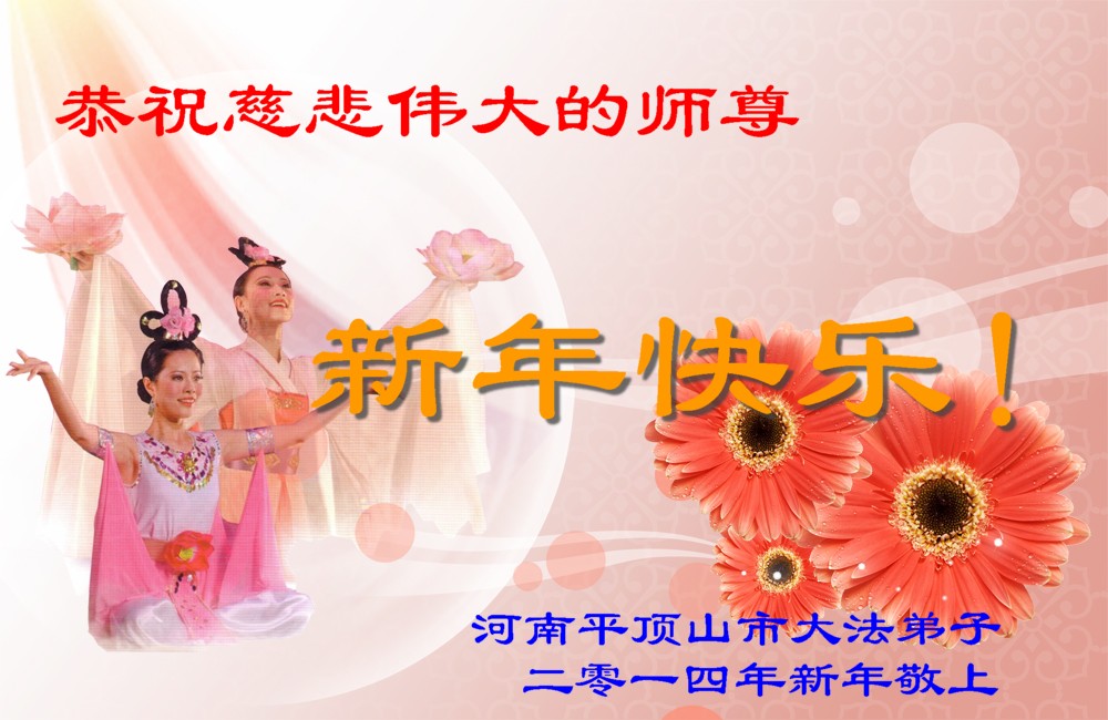 师尊新年好!弟子们想念您,谢谢您的慈悲救度!我们无法用语言来表达对您的敬意,只有在今后做的更好些,多救人,兑现我们的誓约,跟师尊回家。