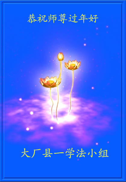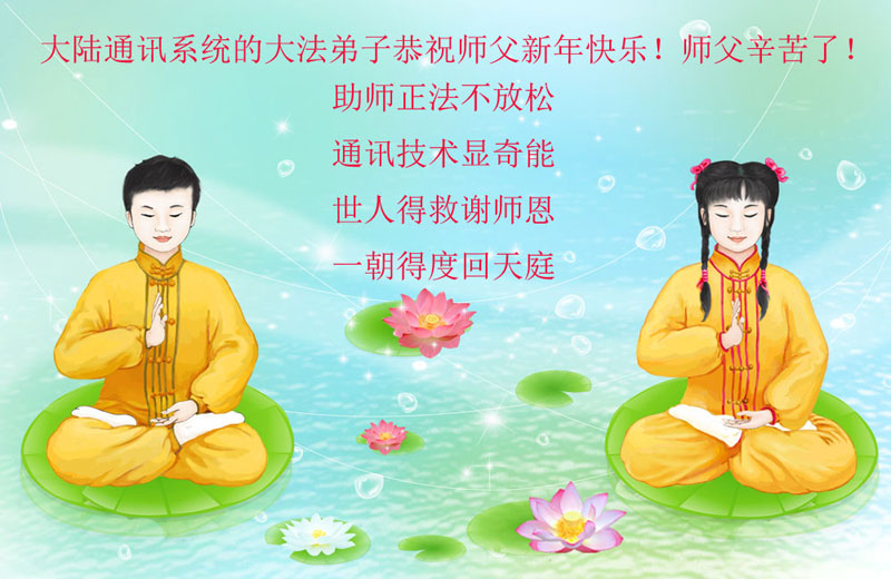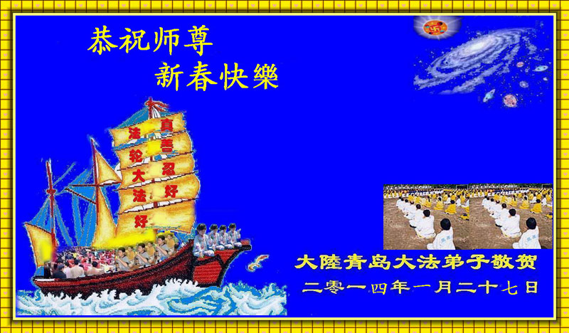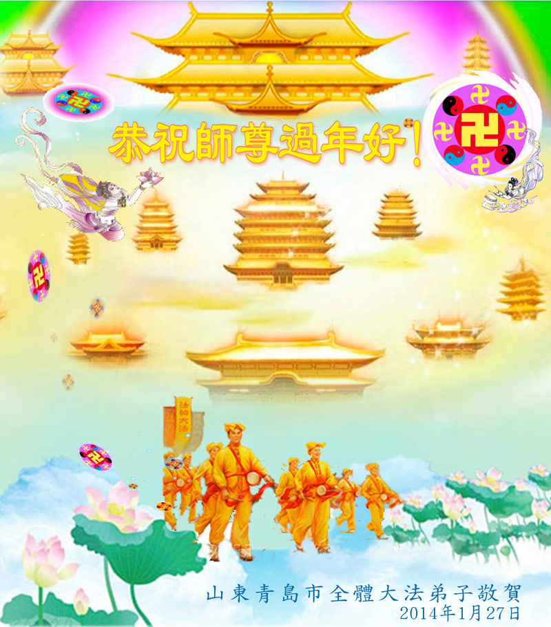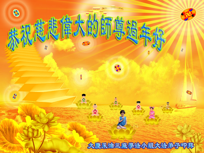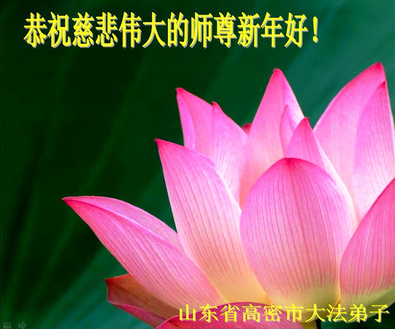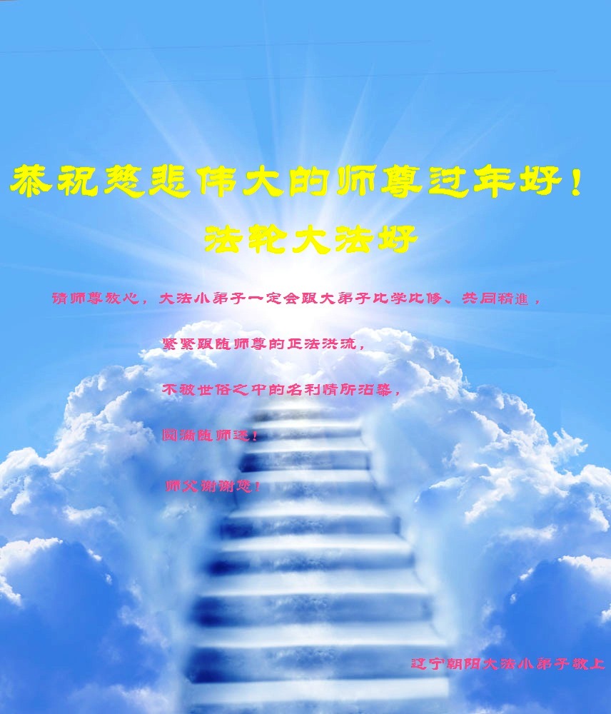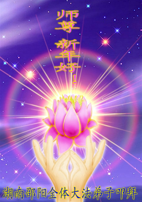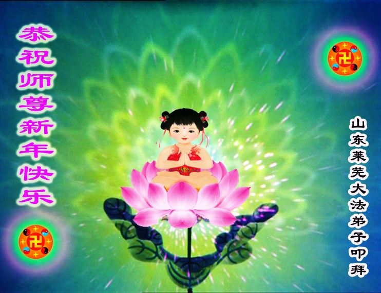 师父,过去的日子里,弟子一直在走旧势力安排的路,没能真正的在大法中修、按照师父说的去做,因而给大法抹了黑,让世人担惊受怕,决心全盘否定旧势力的安排,走出旧我,走出私,真正的做到助师正法、救度众生。在此也代表青岛地区宣传系统大法弟子恭祝师尊新年快乐!