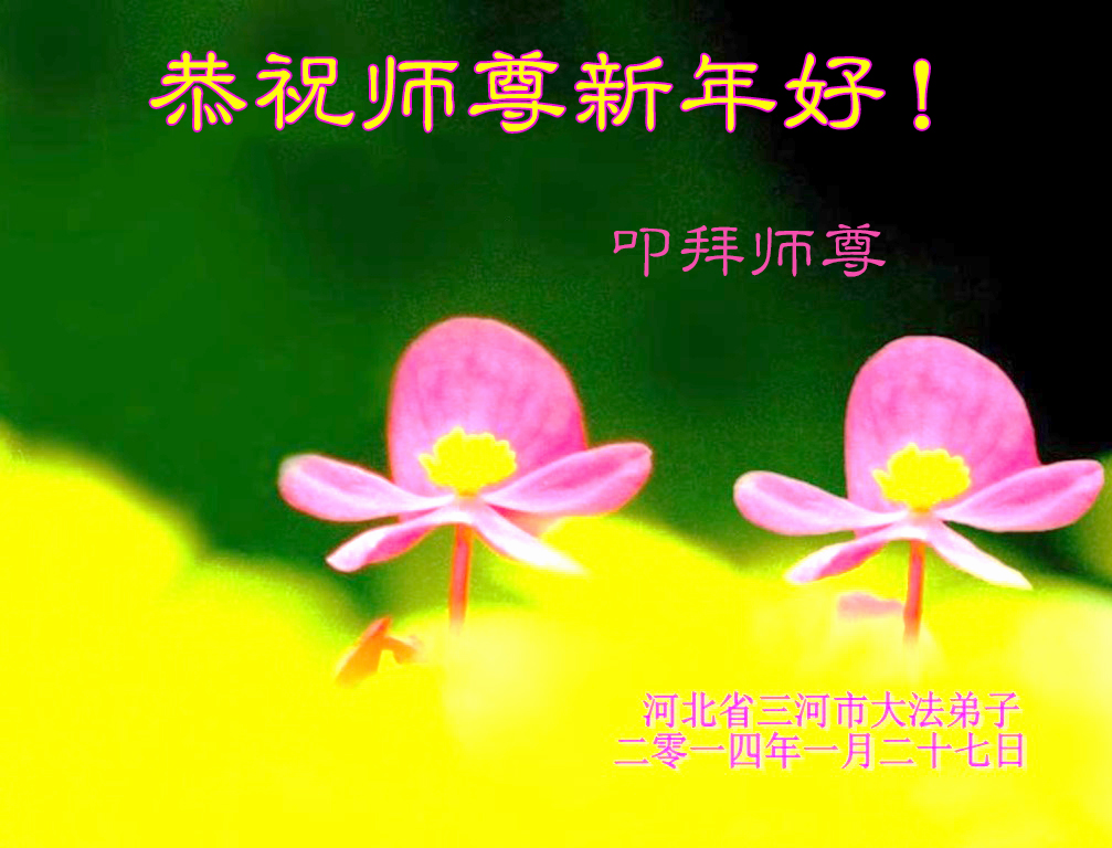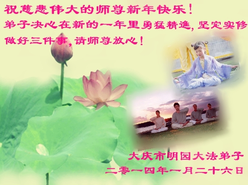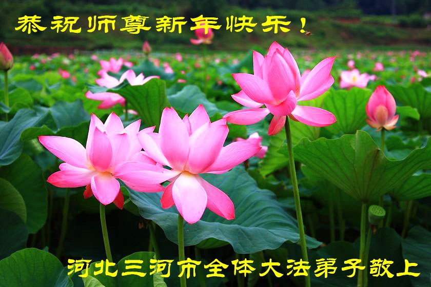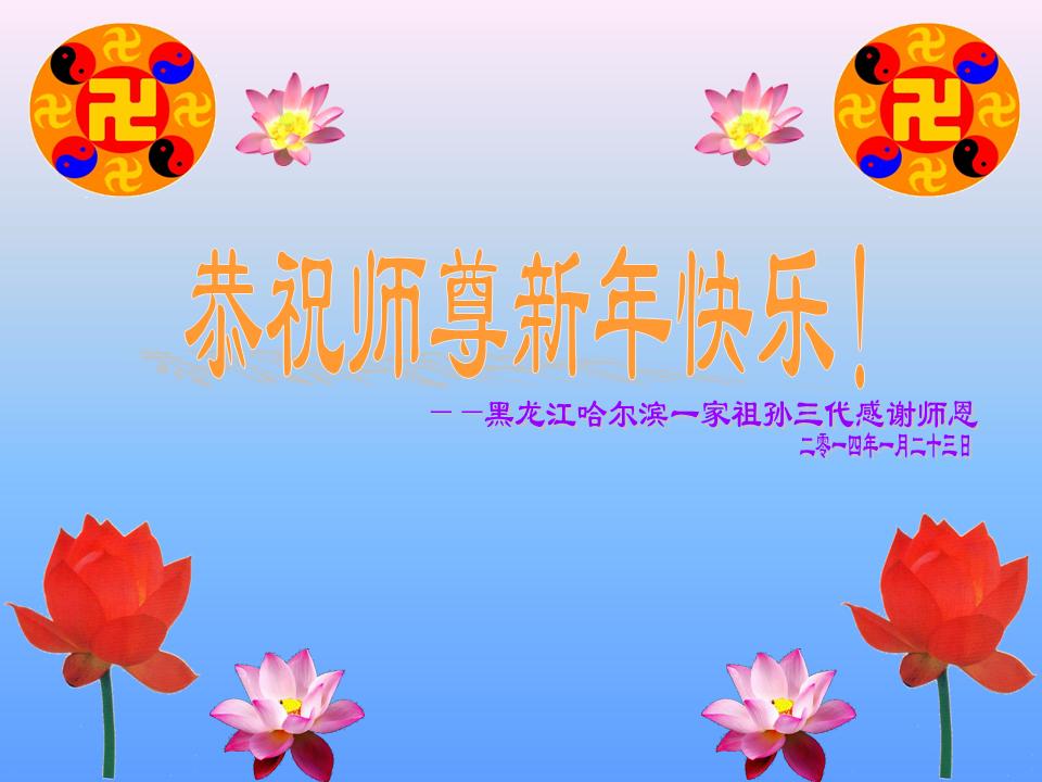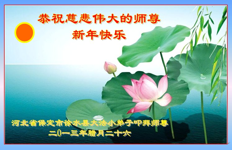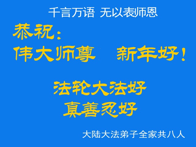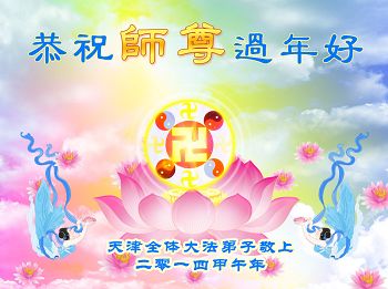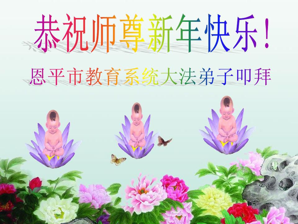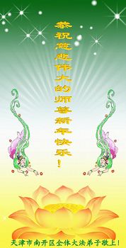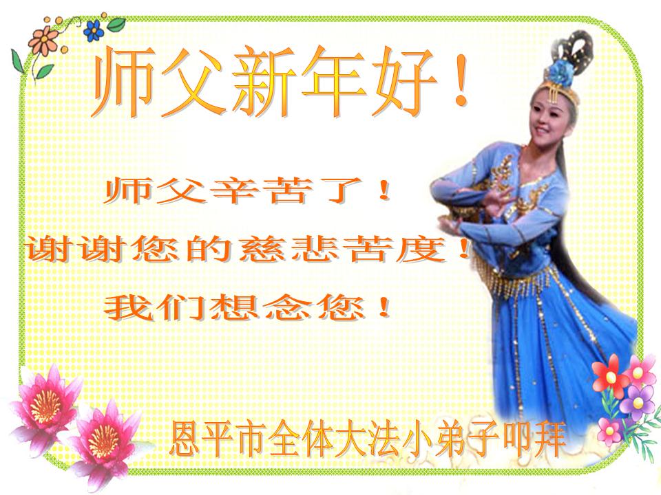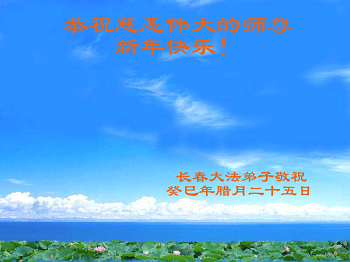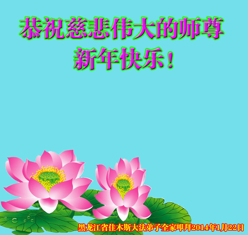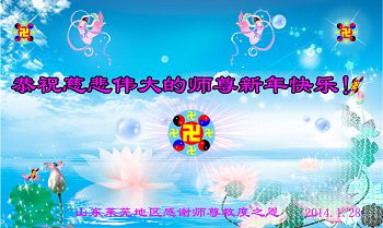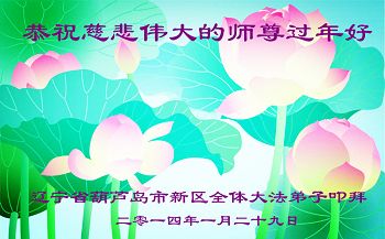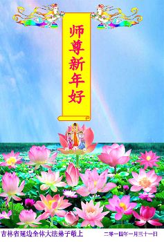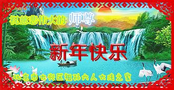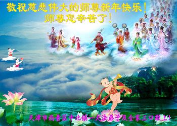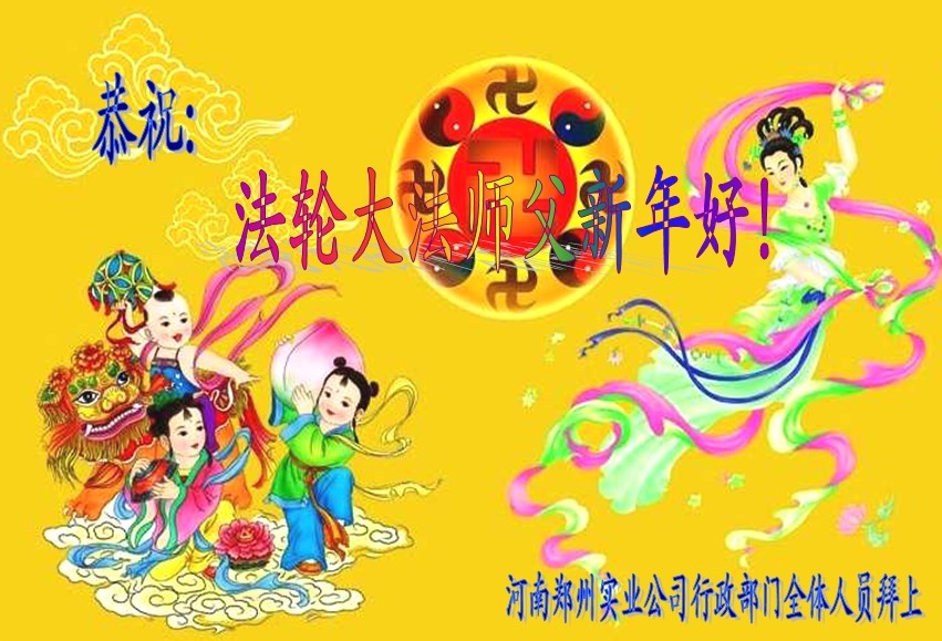 北戴河一企业总经理携全体员工恭祝慈悲伟大的李大师新年快乐:“我们明白了真相之后,在工作中尽量能够做到为别人着想,企业的业绩蒸蒸日上,经济效益出奇的好,我们知道是李大师对我们的恩泽,知道是大法慈悲与我们。我们会一如既往向世人证实法轮功是真正伟大的正法。”