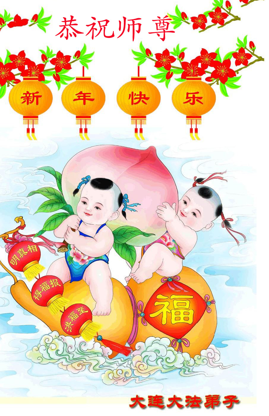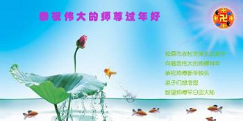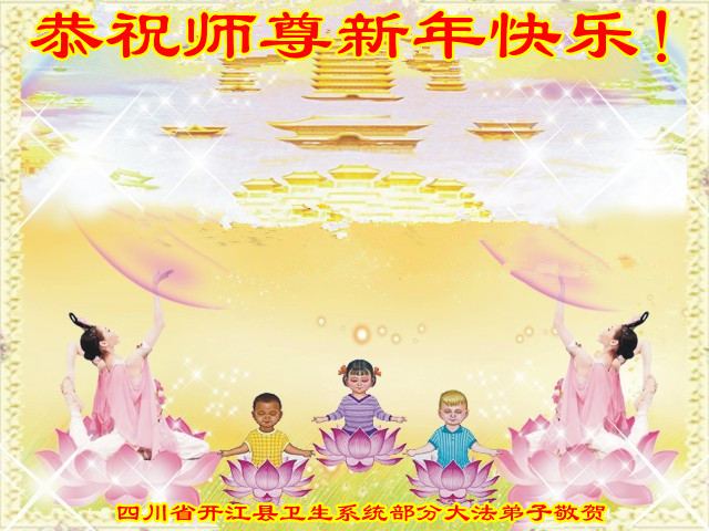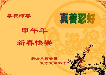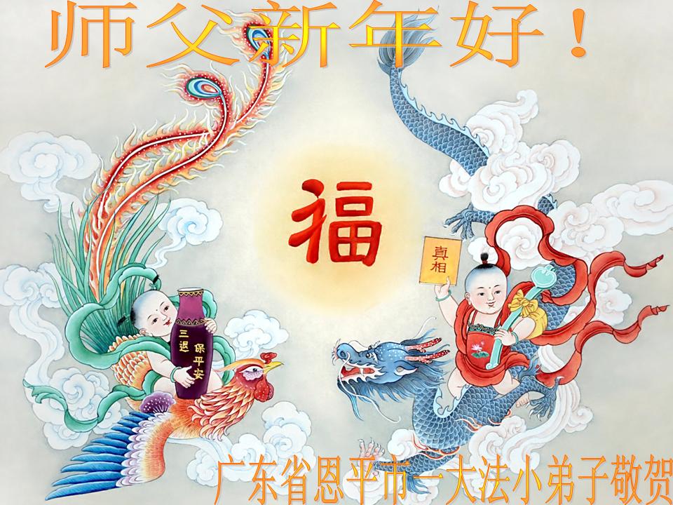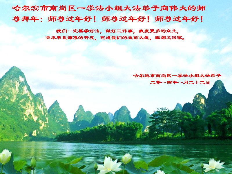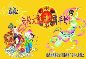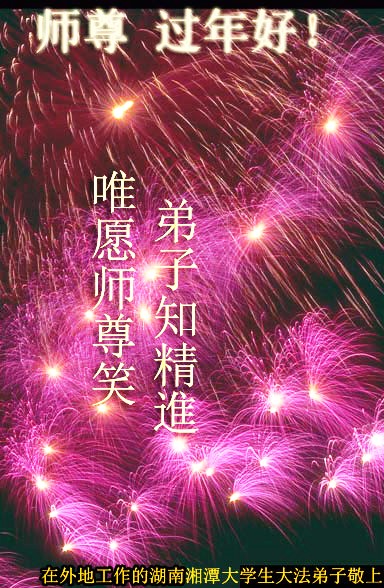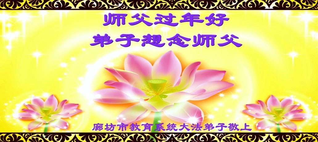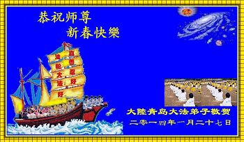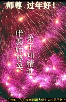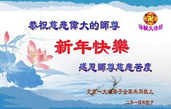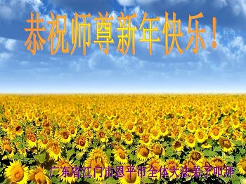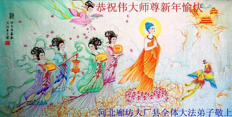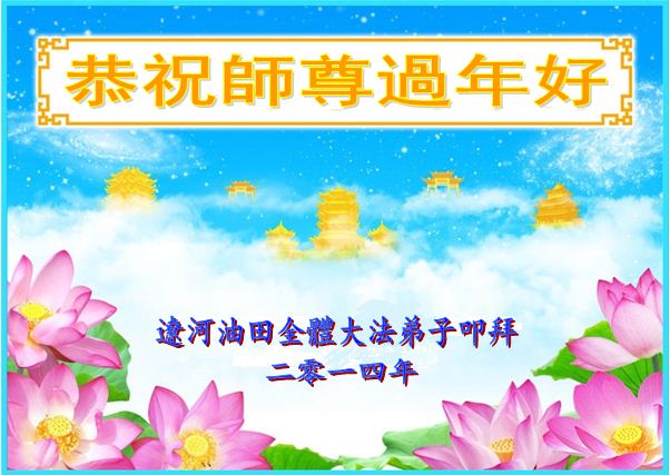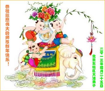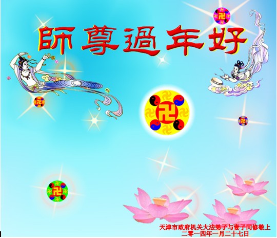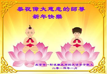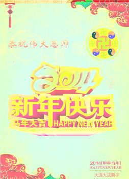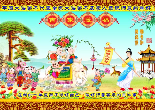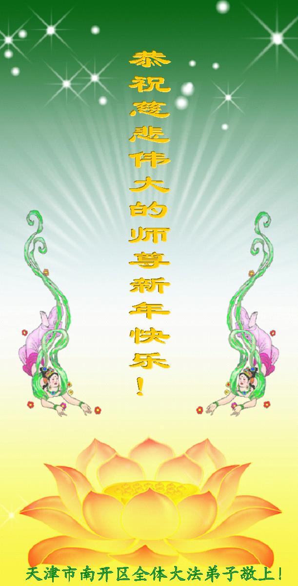 北戴河一企业总经理携全体员工恭祝慈悲伟大的李大师新年快乐:“我们明白了真相之后,在工作中尽量能够做到为别人着想,企业的业绩蒸蒸日上,经济效益出奇的好,我们知道是李大师对我们的恩泽,知道是大法慈悲与我们。我们会一如既往向世人证实法轮功是真正伟大的正法。”