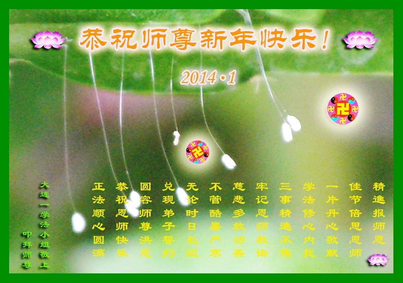 <英文版: http://en.minghui.org/html/articles/2014/2/5/145232.html>美国芝加哥、新泽西、伊利诺州、俄勒冈等地大法弟子恭祝师尊新年好