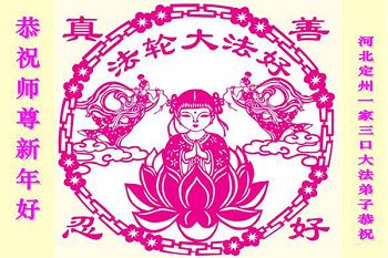 河北保定一位八旬老人祝李大师新年快乐,并感谢李大师的保护:“我曾受多种病痛折磨,诚念‘法轮大法好,真善忍好’,病痛消除。现在我满屋贴的都是法轮大法的年画、图片、年历。愿大法早日平反、昭雪,愿李大师早日回国。”