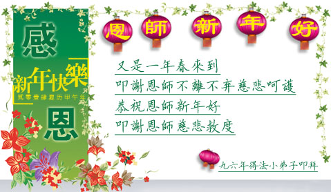 随着法轮大法真相的广传,人们越来越珍惜李洪志先生洪传的真、善、忍佛法,感念他为对人类所做的一切,向法轮大法李洪志师父表达诚敬和感恩正渐成新的贺岁传统。