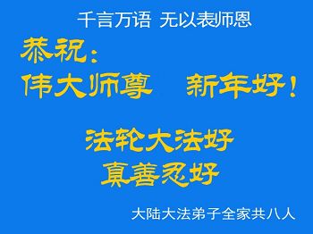 “我们还能在家中与自己的妻儿老小一起过年,可是他们中还有人在蹲监坐牢,饱受共产党的酷刑折磨。他们个个象参天的大树,为我们这个时代的人们遮风挡雨……这些人就是李洪志大师教出来的弟子……我们盼望李洪志大师能早日回国,拯民于倒悬,救民于水火,解脱中国大陆那些饱受中共恶党摧残迫害的民众。”