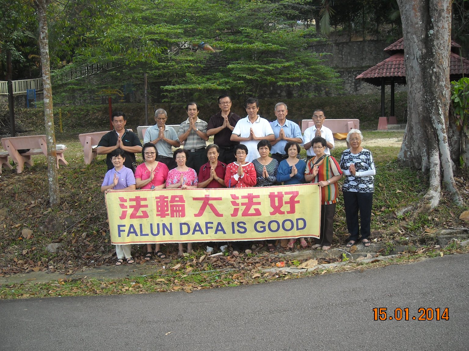 四川达州花红乡一位七旬农民全家十六口恭祝李大师新年快乐,感念救命之恩:“二零一二年我和亲戚到外甥女家吃酒,外甥女送我们真相护身符,叫我们诚心诚意念‘法轮大法好’、‘真善忍好’,会得福报。我很高兴的接受,可那亲戚说自己是党员、村委干部,不信神,不要护身符。不久我和亲戚去赶场,乘坐的摩托车与出租车相撞,摩托车驾驶员受重伤,亲戚抢救无效死亡,我年纪这么大,撞车那么大的冲击力,却轻轻落在地上,哪也没伤着,衣服裤子都没划破。人都说我命大福大,是家里烧了高香。我告诉他们,是李大师救了我的命。”