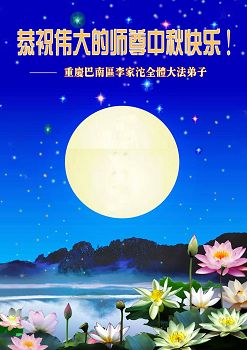 今逢中秋佳节之日,俩大法弟子和俩家人谨向慈悲伟大的李老师问好,叩谢!弟子一定学好法、修好自己、证实好法、多救众生。坚定正信,努力兑现自己史前的誓约。叩谢师尊的慈悲苦度!