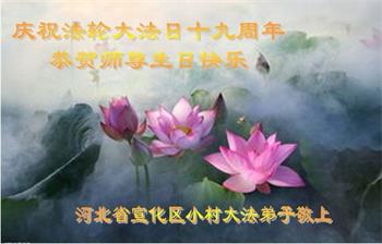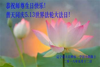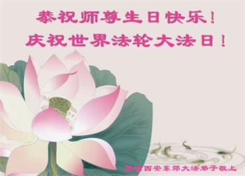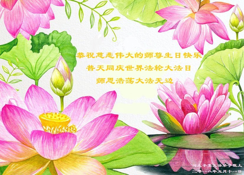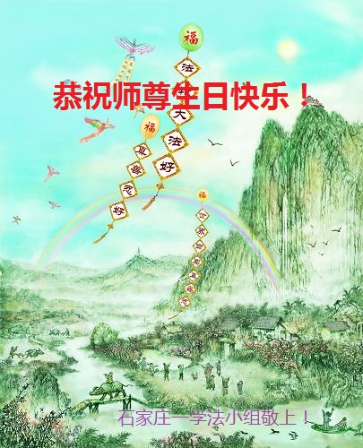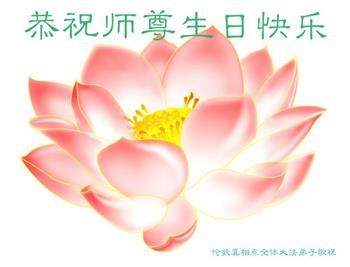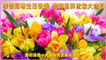 我们深谢恩师慈悲苦度!衷心恭祝师尊华诞快乐!在正法最后不多的时间里,我们一定会认真学好法,修好自己,从根本上改变常人的观念,正念正行,抓紧时间救度更多众生,完成正法时期大法弟子的历史使命,圆满跟随师尊回归家园。