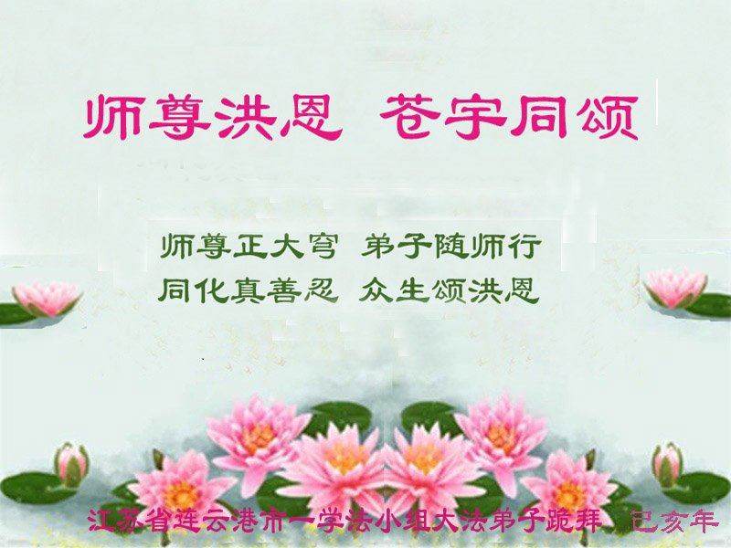 法轮大法自一九九二年传出,七年之内,修者上亿,祛病健身,道德回升。江泽民以小人之妒嫉,迫害法轮功,以谎言污蔑大法,欺骗世人。为了还原真相,自迫害之日起,大法弟子们不顾个人安危,以各种方式给世人讲大法真相,这与每个人的安危和未来切身相关。大法弟子讲真相迄今二十个年头,还在一如既往坚持。在中共的邪恶迫害中,中国大陆大法弟子们历经魔炼,在修炼中不断精進和成熟,表示新一年更精進,多救人。
