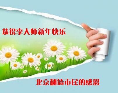 北京“翻墙”市民恭祝李大师新年快乐!在贺词中说:“那里有真善忍、有我不知道的真相,明慧网拨开了遮眼的云烟,使我不再迷茫,法轮大法好啊,使我看到了中国百姓的未来希望,我找到了大纪元网站,自己先退党团队,收到了证书,好象脱了一件狼皮,轻松愉快、幸福陪伴着我度过美好的时光。”