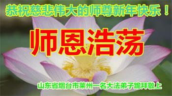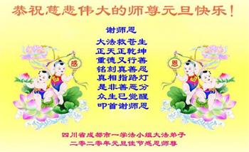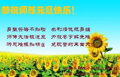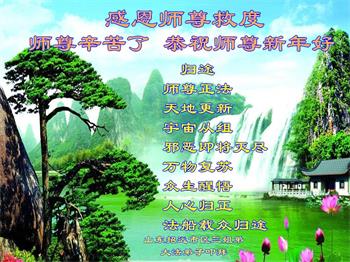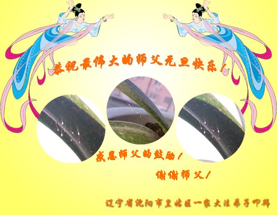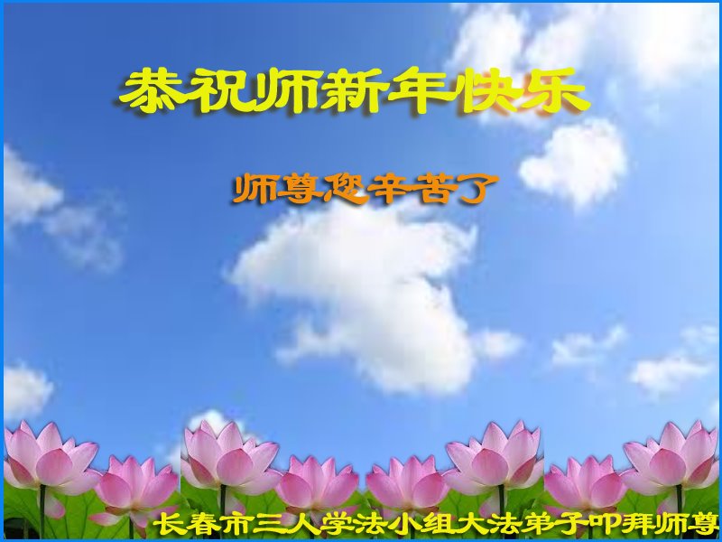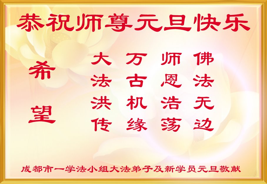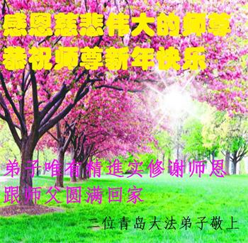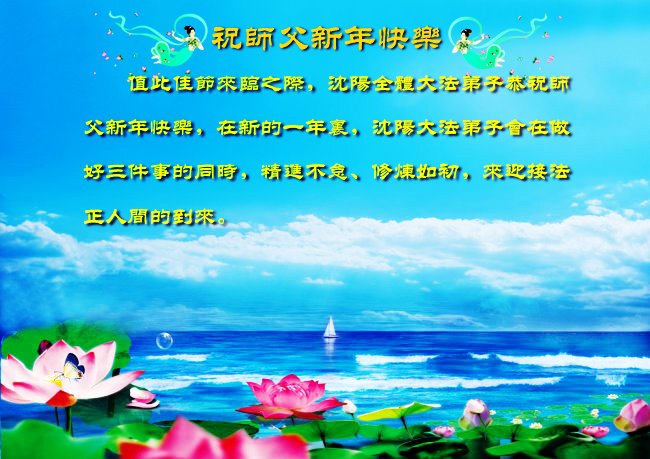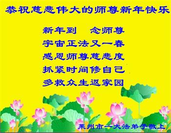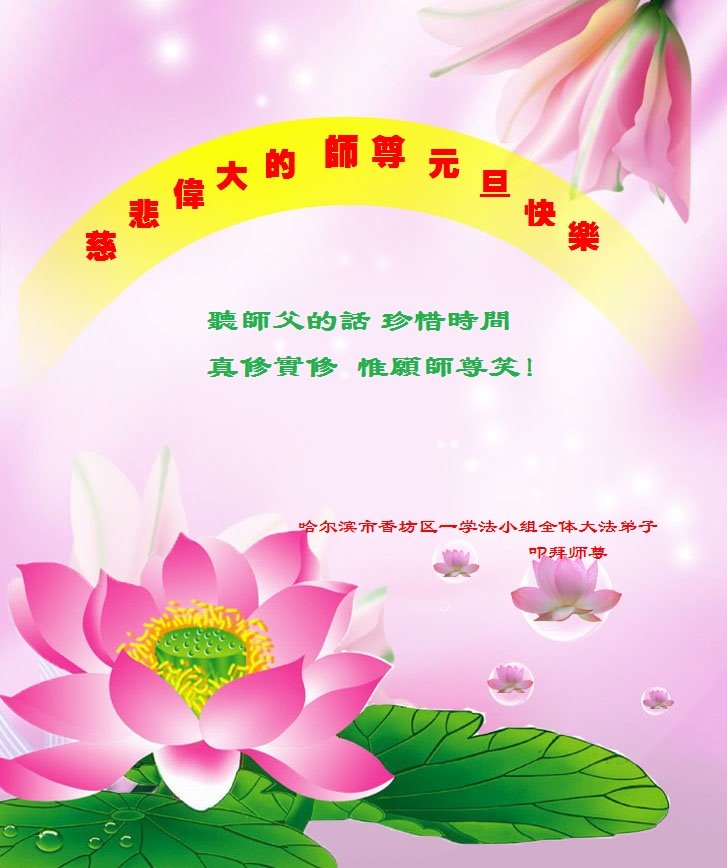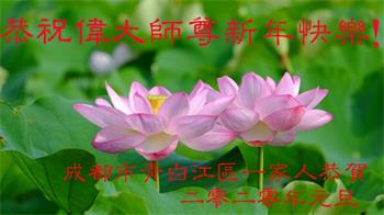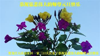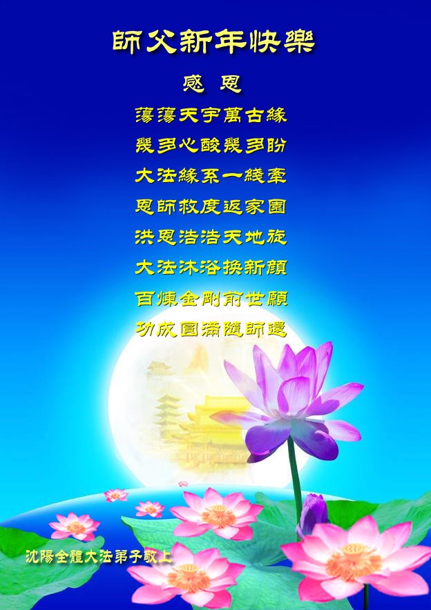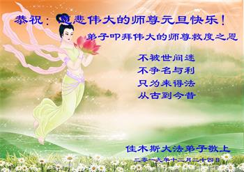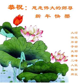 值此新年到来之际,我请大法弟子代我和我们全家人由衷的敬谢大法师父的恩德,祝愿大师新年快乐!