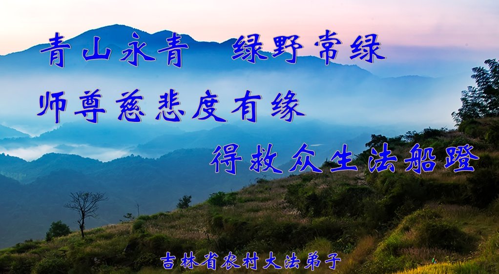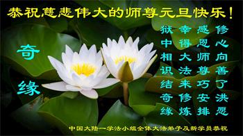 我们大陆大法弟子非常想念师尊,感谢师尊慈悲苦度,有多少以前的药罐子通过修大法变成了身体健康、精力充沛的人,有多少以前因中共的教育道德败坏、自私自利的人,通过修大法变成了一个道德高尚、无私无我先他后我的人,我们感谢师尊传给我们这万古不遇的宇宙高德大法,使我们的生命有了更深远的意义,在新年到来之际,我们大法弟子跪拜师尊:恭祝师尊元旦快乐!谢谢师尊慈悲苦度,在师尊用巨大的付出延续来的时间里做好三件事,让师尊多一些欣慰少一些操劳,师尊您辛苦了。