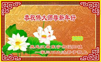 山东威海农村一母子大法弟子及家人恭祝师父二零二零年新年好!谢谢师父的慈悲救度!