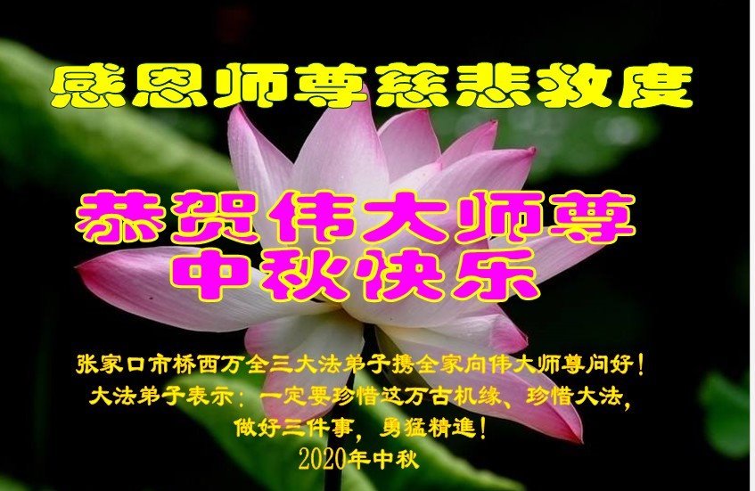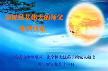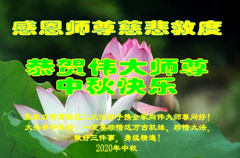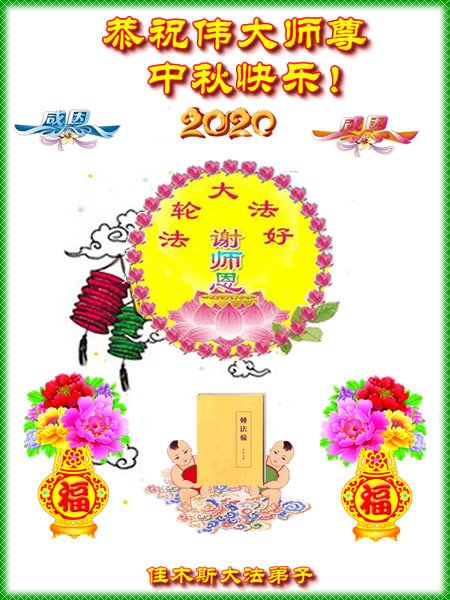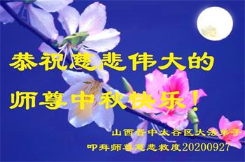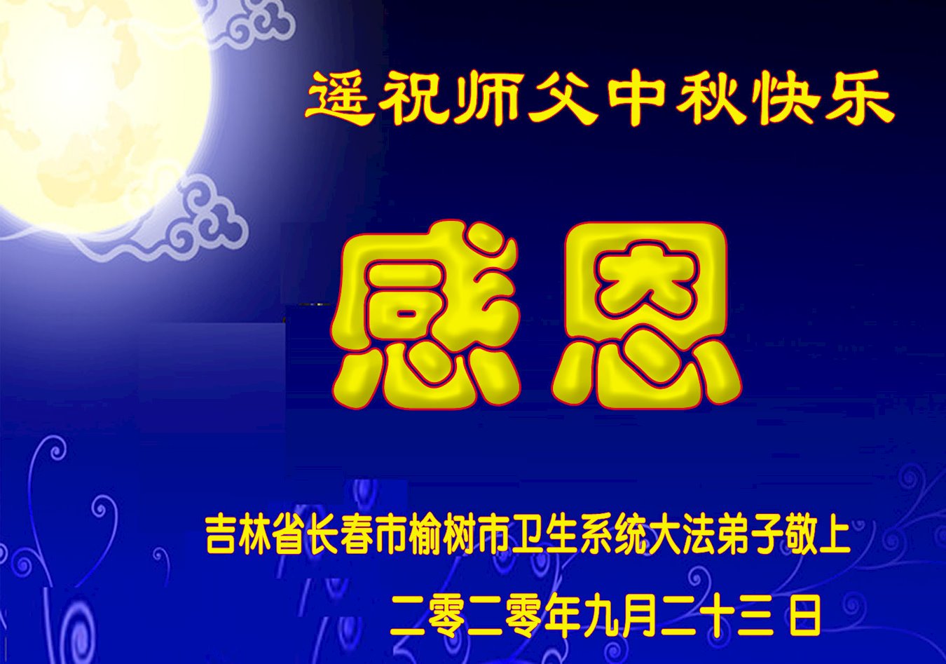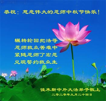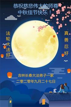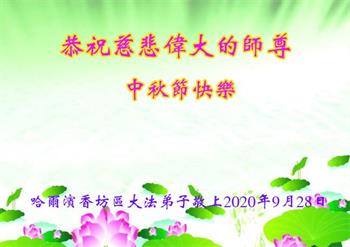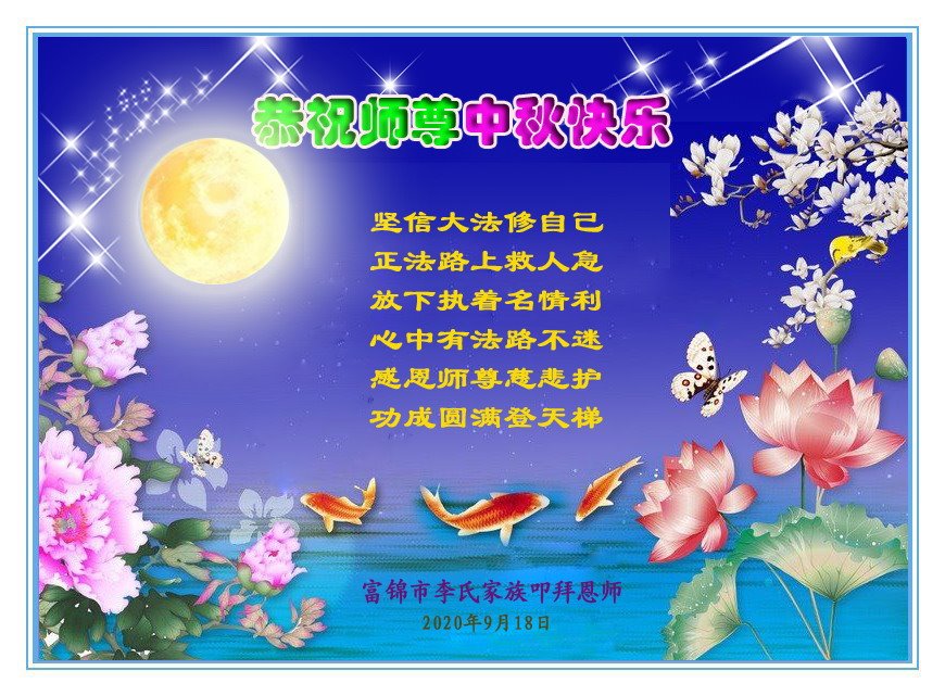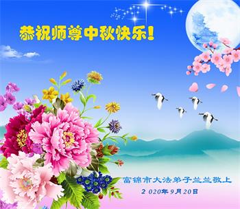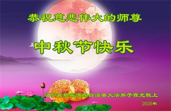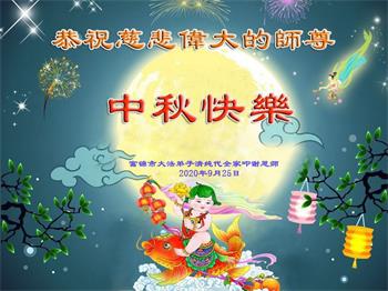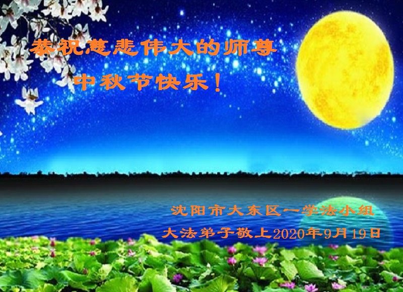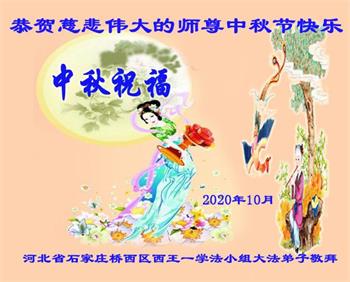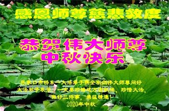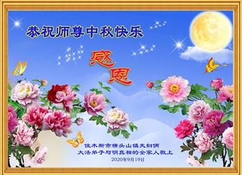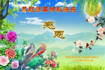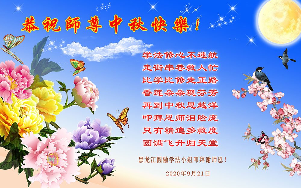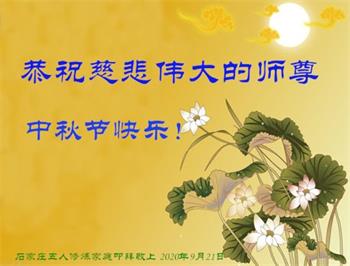 【明慧网二零二零年九月三十日】(明慧网记者综合报道)法轮大法是佛法修炼,大法弟子们把师尊教导的真、善、忍标准溶入日常的生活、工作、修炼中,在各行各业中展现法轮大法的美好。2020年中秋佳节来临,来自中国大陆各行业的大法弟子恭祝慈悲伟大的师尊中秋节快乐!