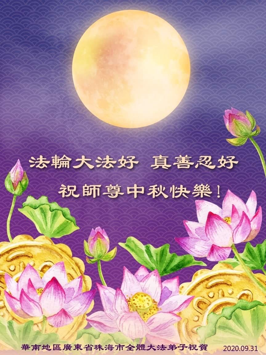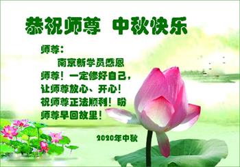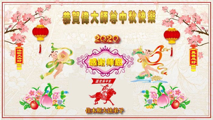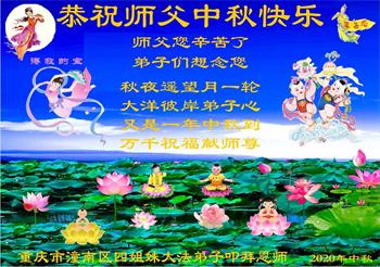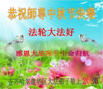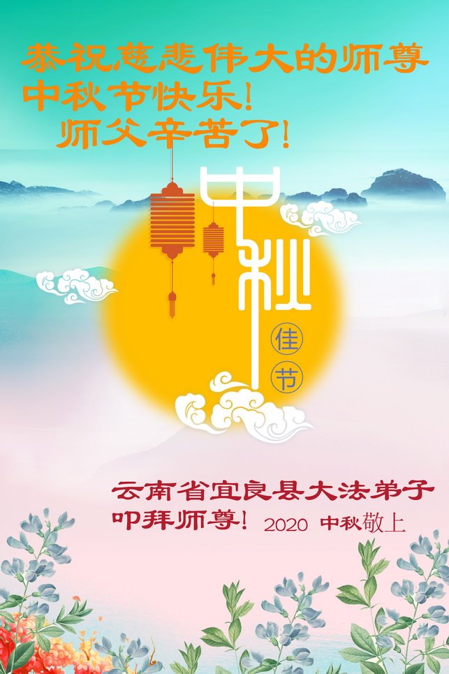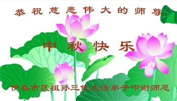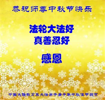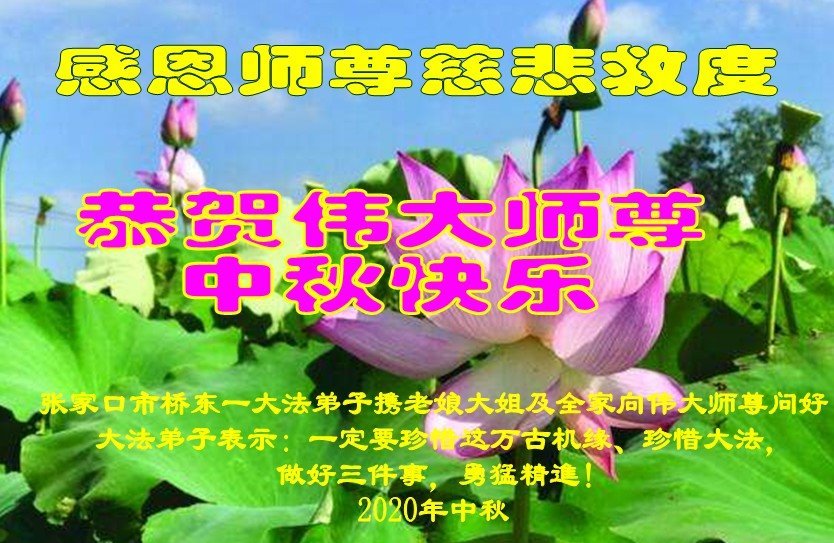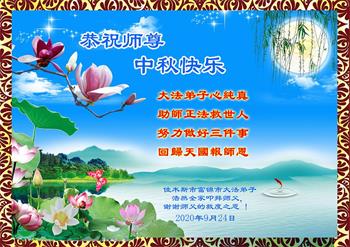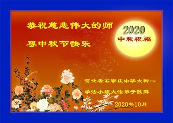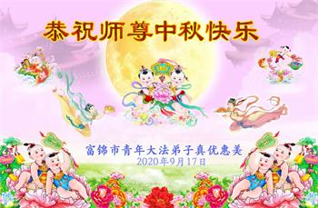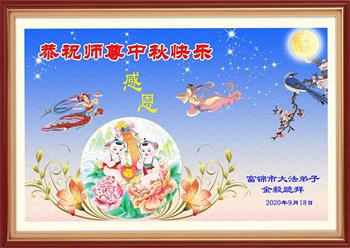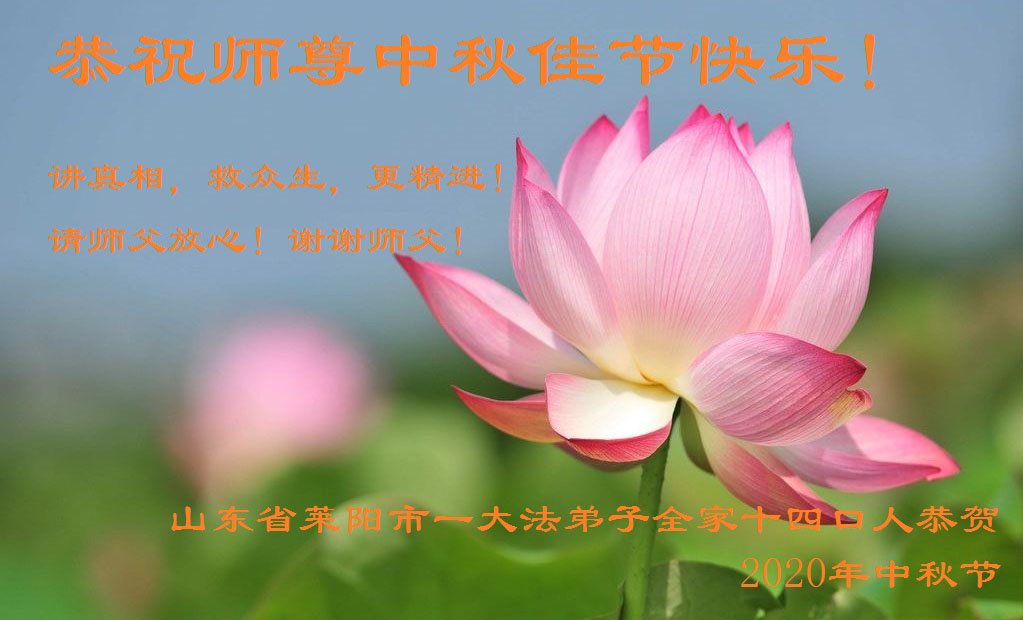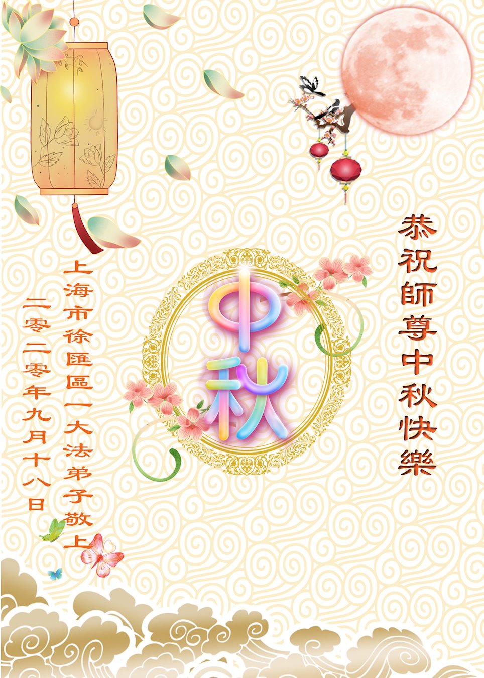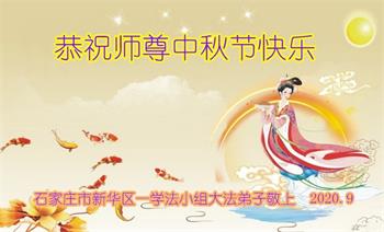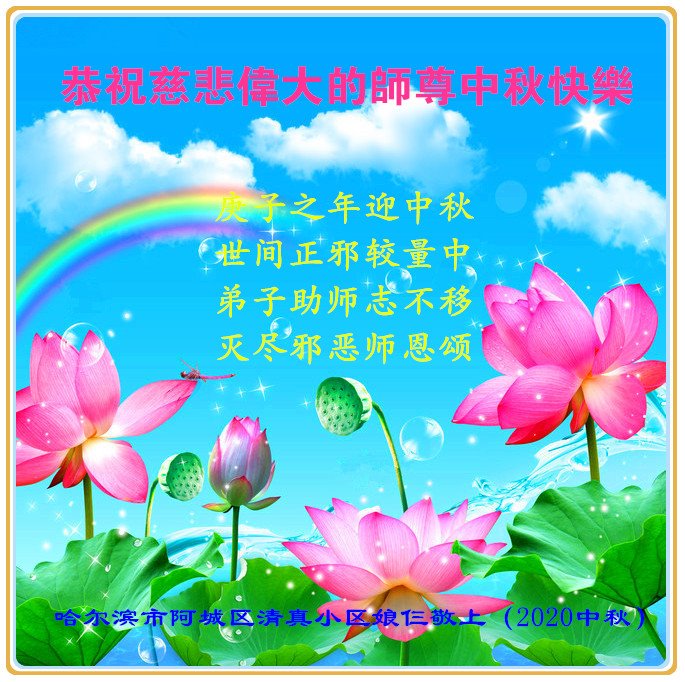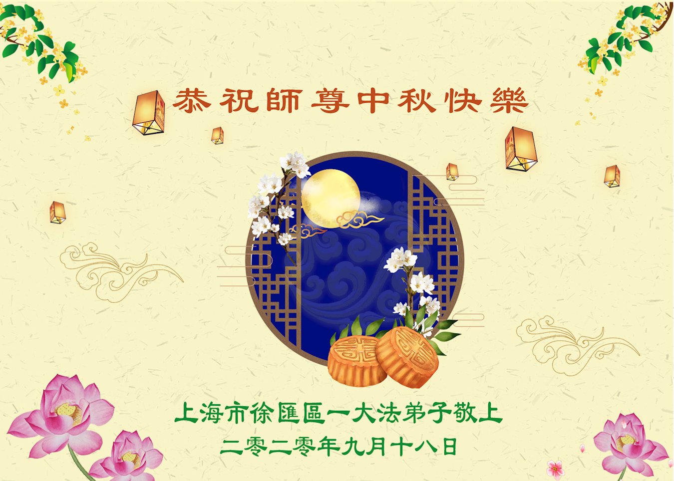 【明慧网二零二零年九月三十日】(明慧网记者综合报道)法轮大法是佛法修炼,大法弟子们把师尊教导的真、善、忍标准溶入日常的生活、工作、修炼中,在各行各业中展现法轮大法的美好。2020年中秋佳节来临,来自中国大陆各行业的大法弟子恭祝慈悲伟大的师尊中秋节快乐!
