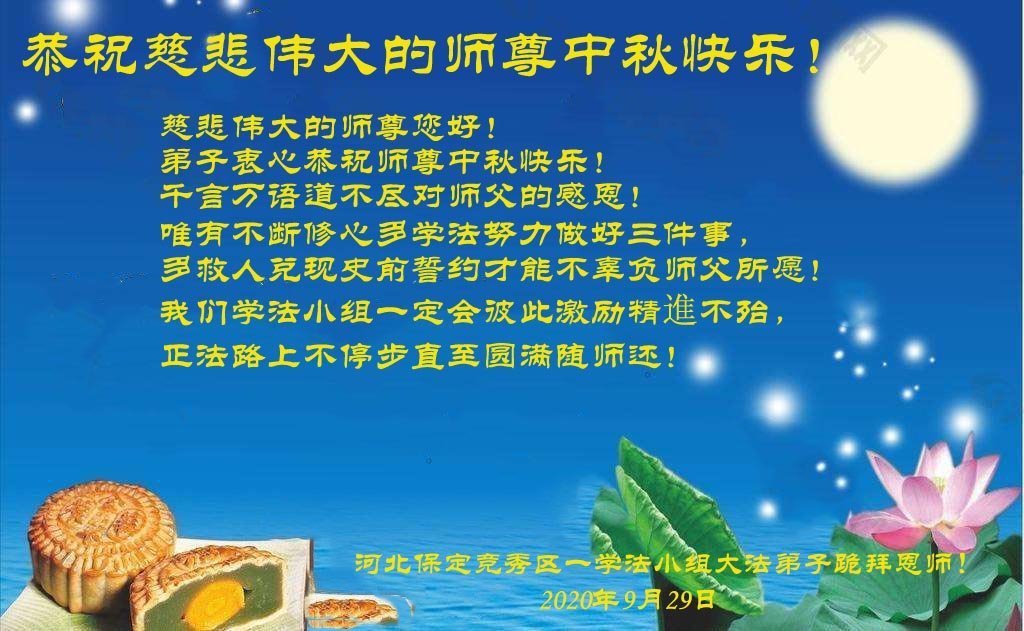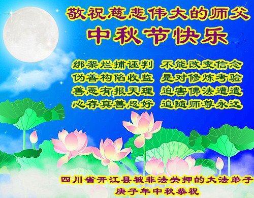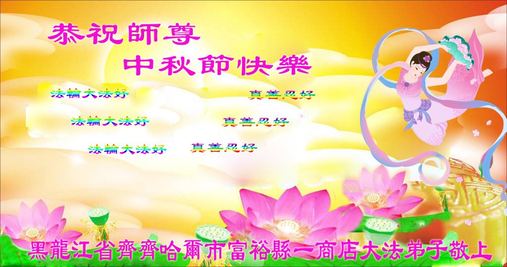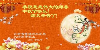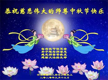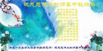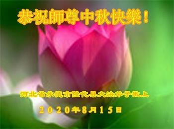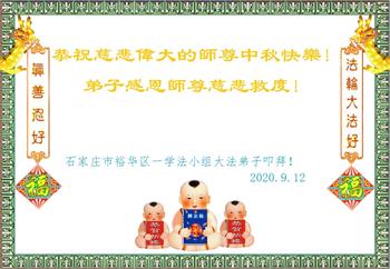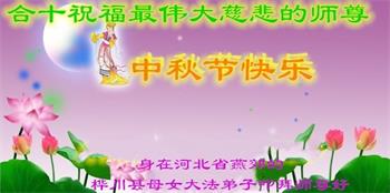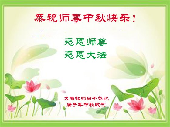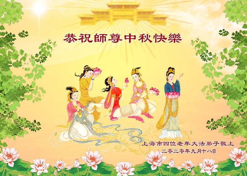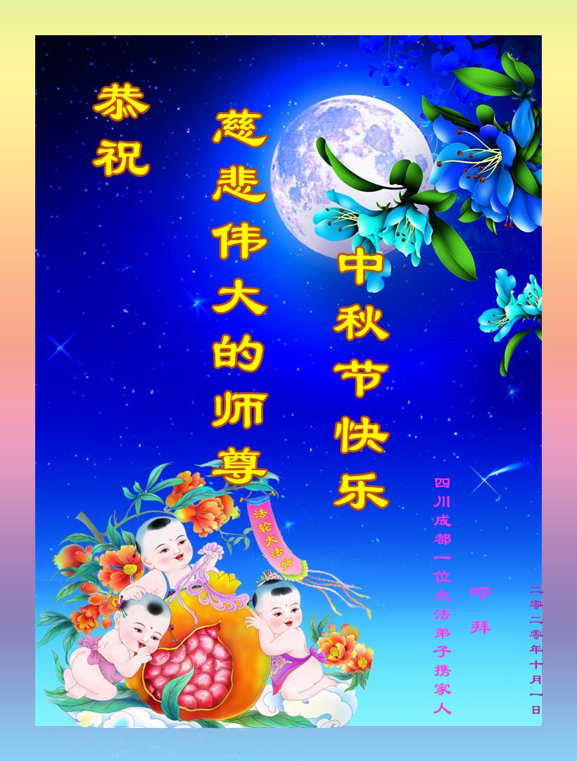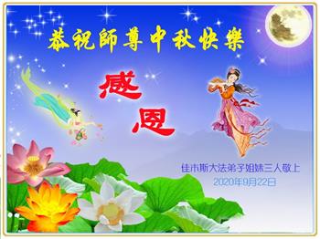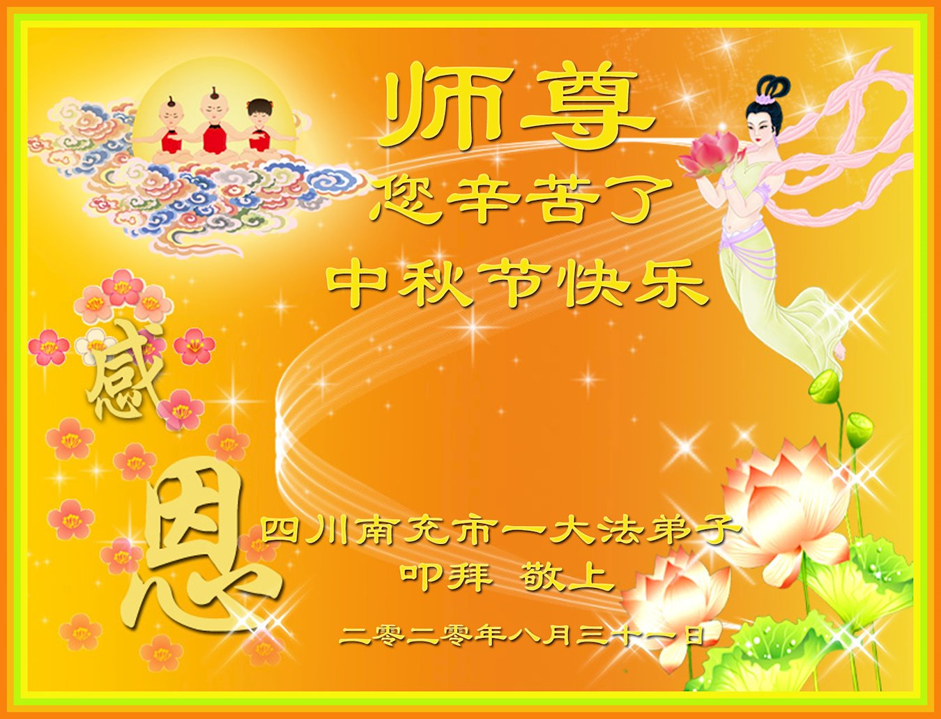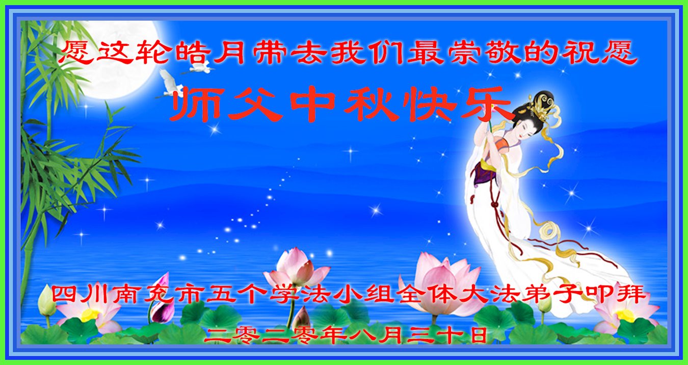 【明慧网二零二零年九月三十日】(明慧网记者综合报道)法轮大法是佛法修炼,大法弟子们把师尊教导的真、善、忍标准溶入日常的生活、工作、修炼中,在各行各业中展现法轮大法的美好。2020年中秋佳节来临,来自中国大陆各行业的大法弟子恭祝慈悲伟大的师尊中秋节快乐!