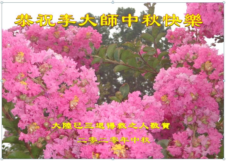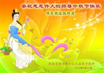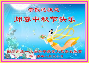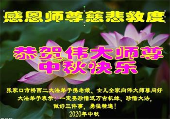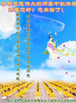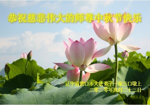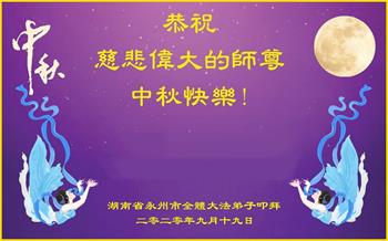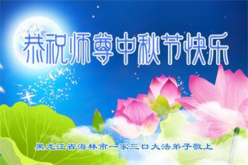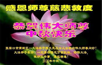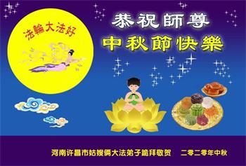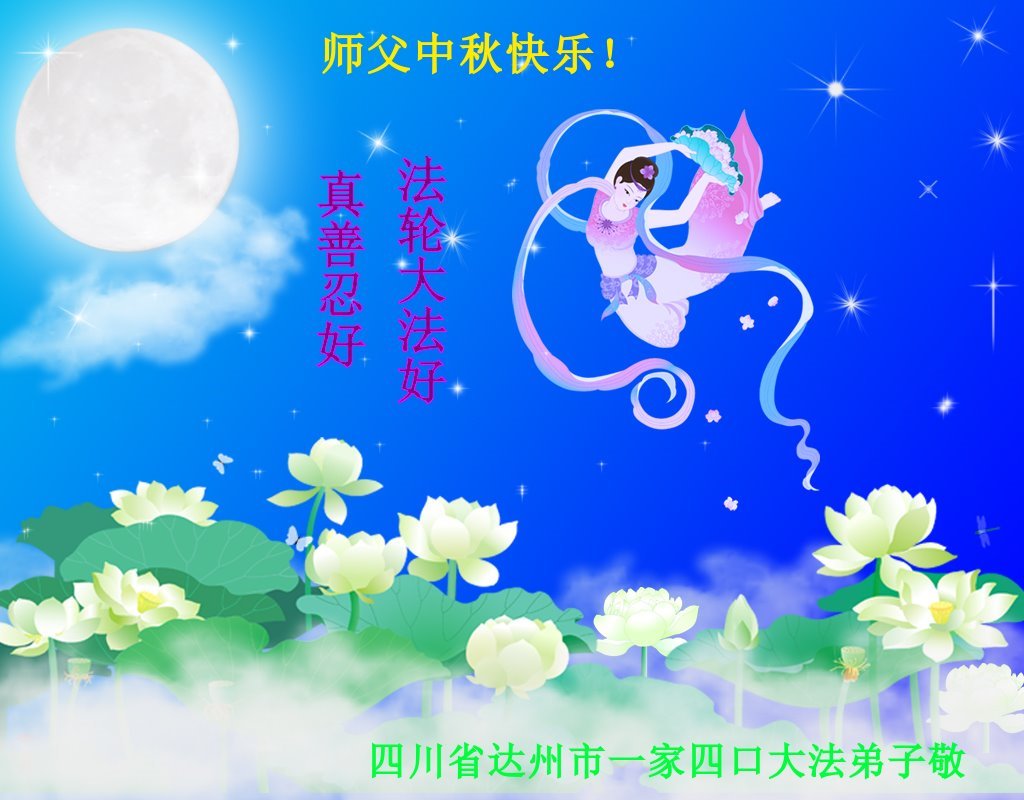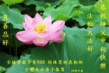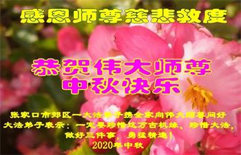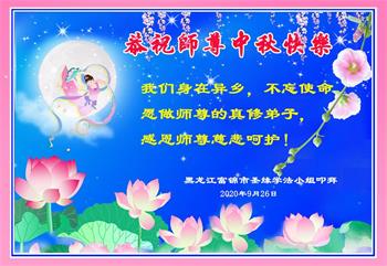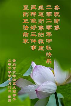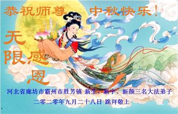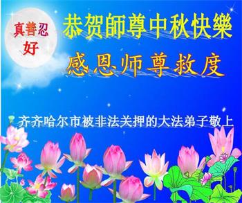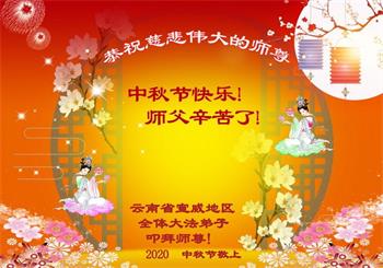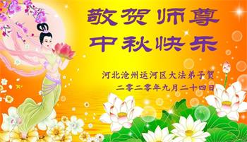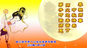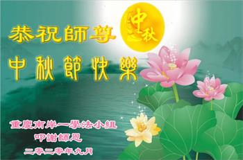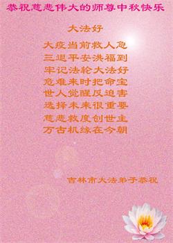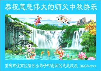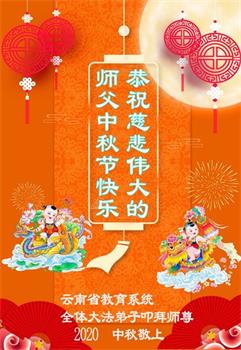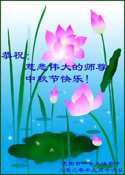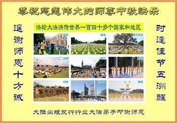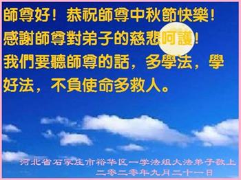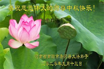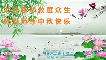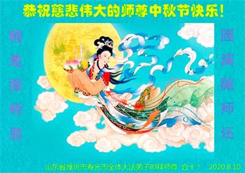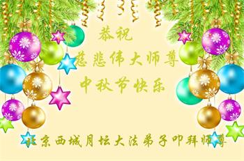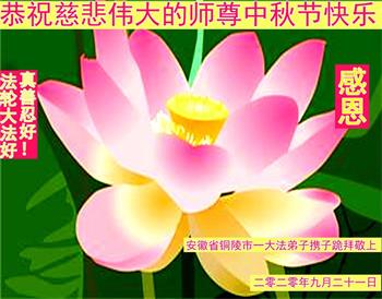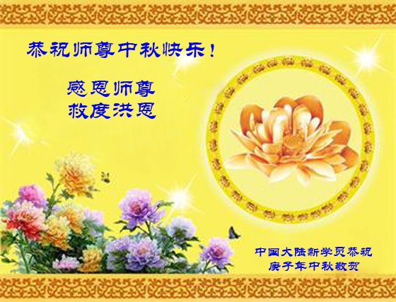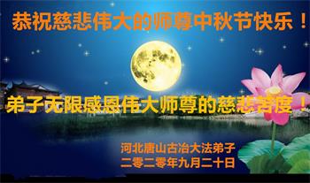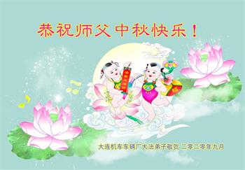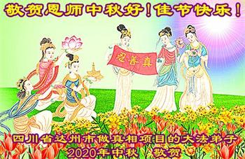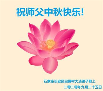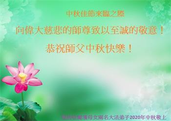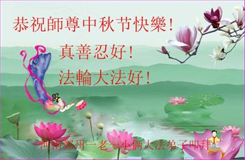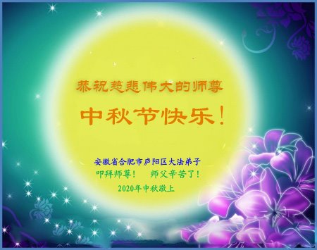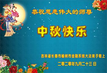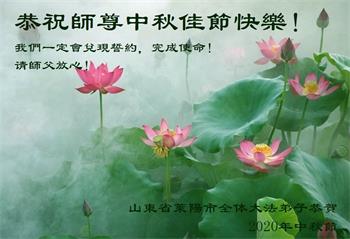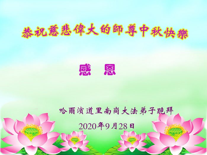 【明慧网二零二零年九月三十日】(明慧网记者综合报道)法轮大法是佛法修炼,大法弟子们把师尊教导的真、善、忍标准溶入日常的生活、工作、修炼中,在各行各业中展现法轮大法的美好。2020年中秋佳节来临,来自中国大陆各行业的大法弟子恭祝慈悲伟大的师尊中秋节快乐!