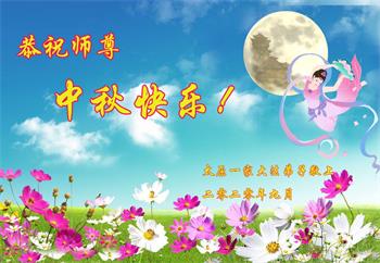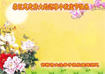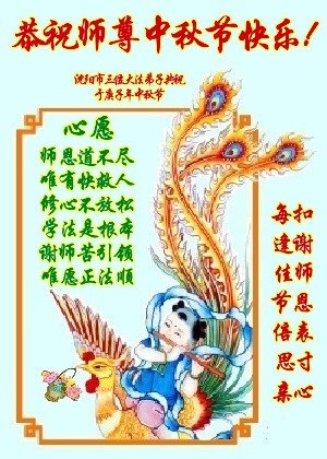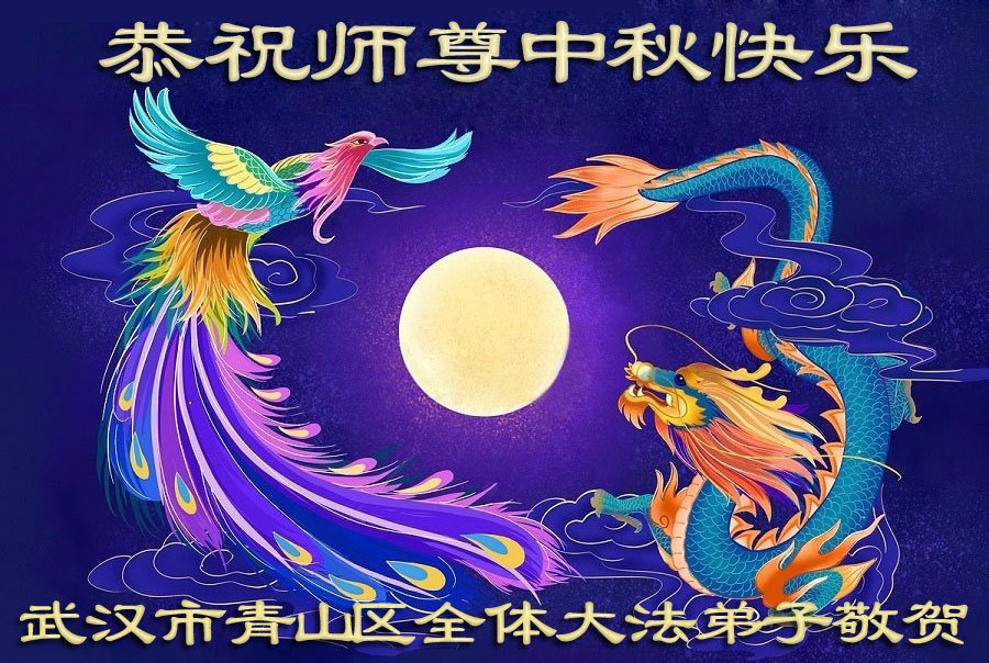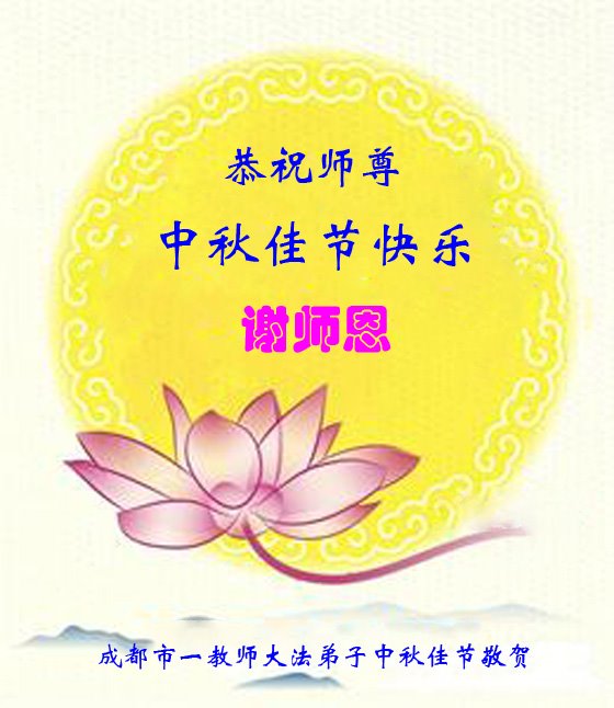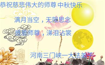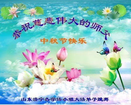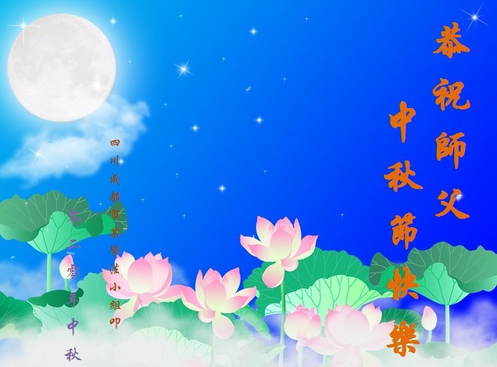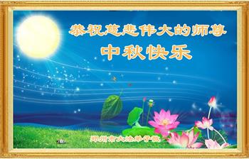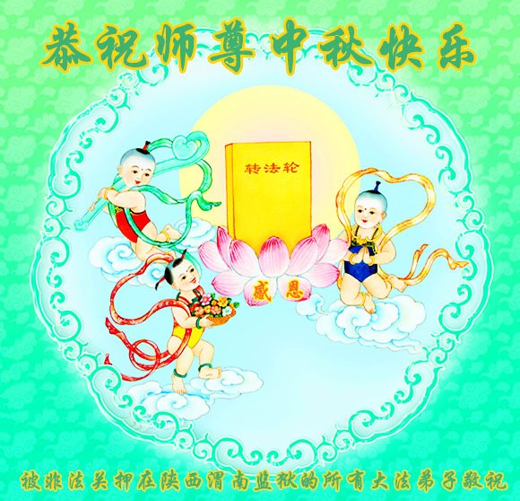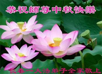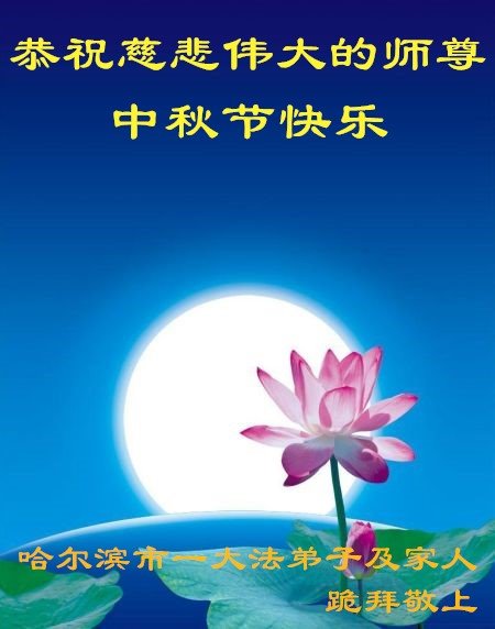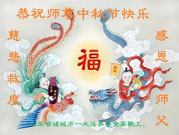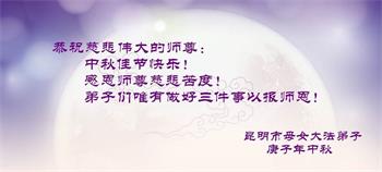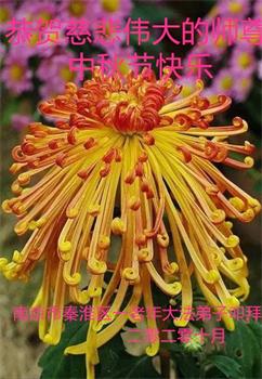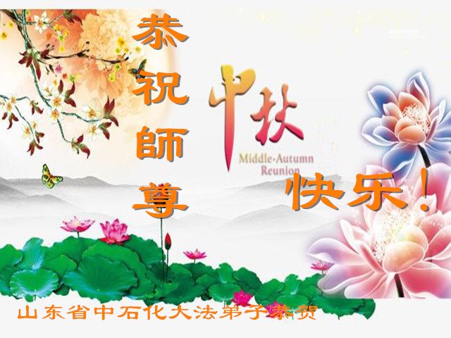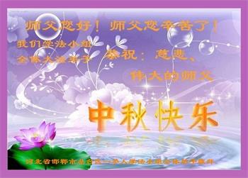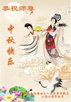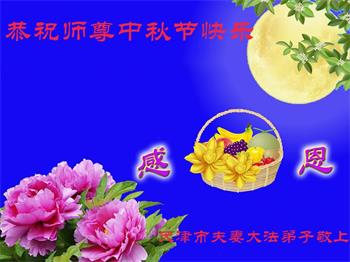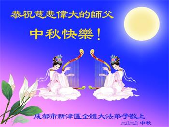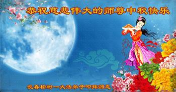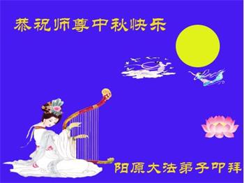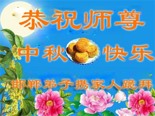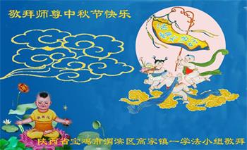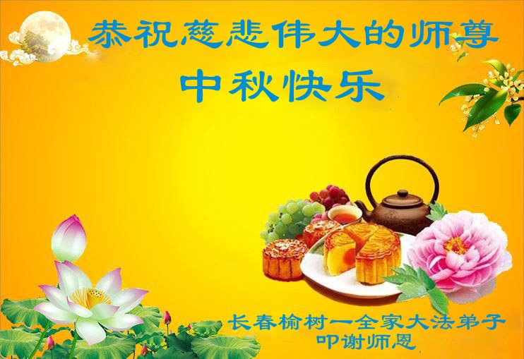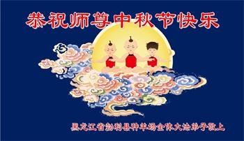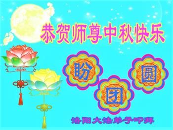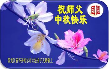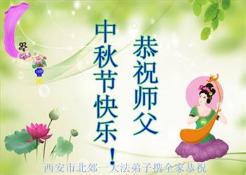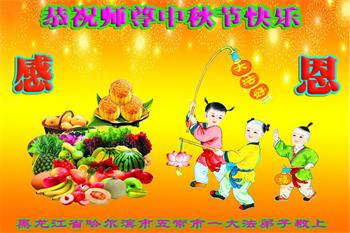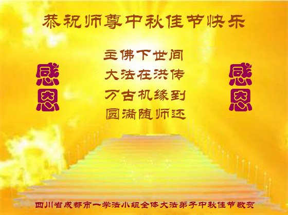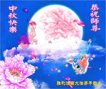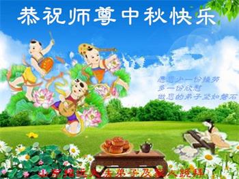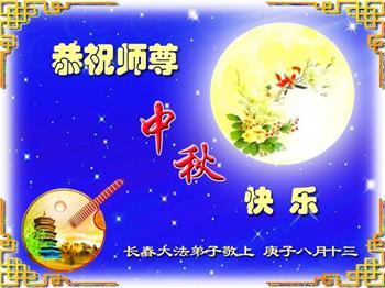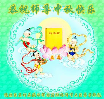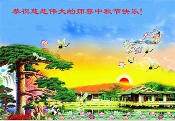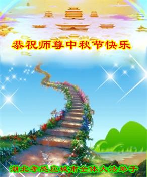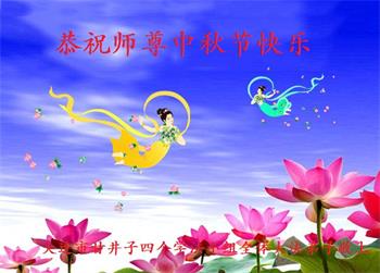 慈悲伟大的师尊您好!中秋节快乐!中铁第十一工程局的全体大法弟子远在中国大陆在中秋节前夕,弟子们向您献上无限的敬仰和感激之心!弟子们修炼二十多年了,我们一定继续坚持实修,抓紧这最后的、可贵的、亘古难遇的宇宙更新的大好时机,一如既往的、精進的做好师尊要求的“三件事”,净心多学法、净心多发正念,去掉弟子们各自的各种执着心,从而慈悲的讲清真相,多多的救下世上还存有善念的世人。