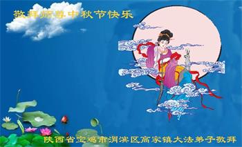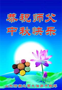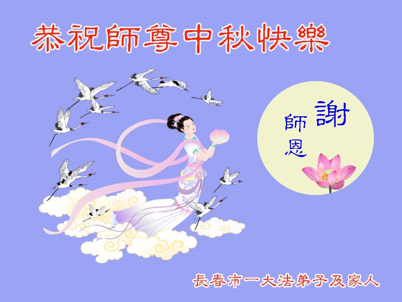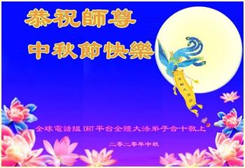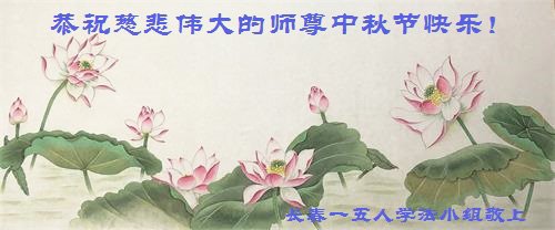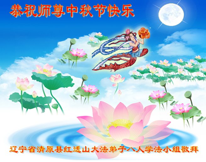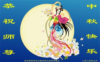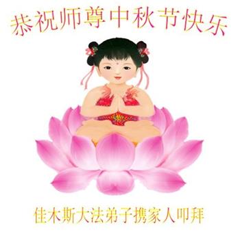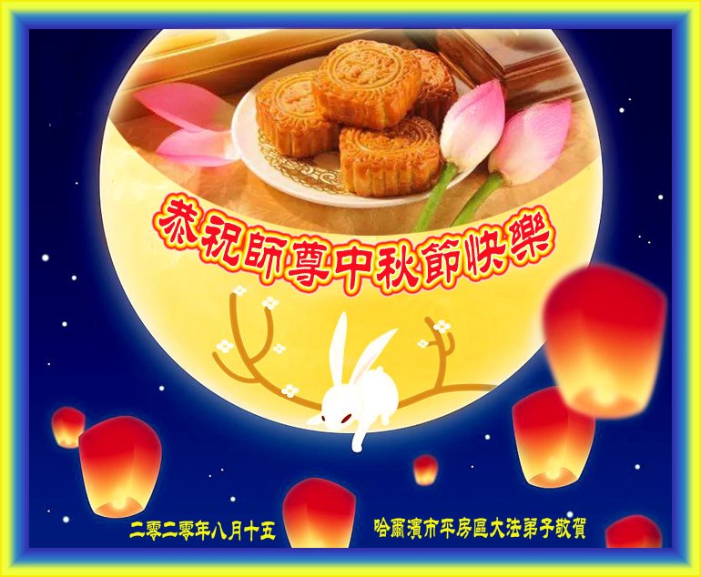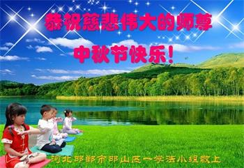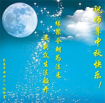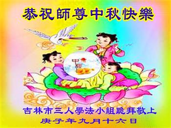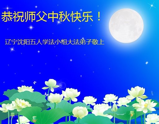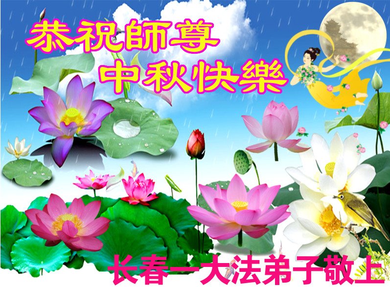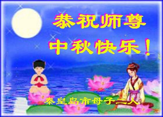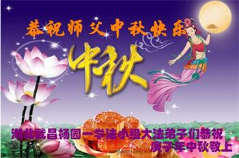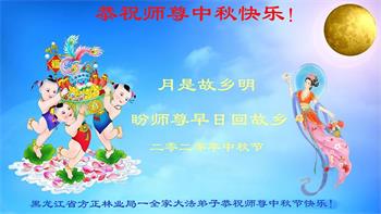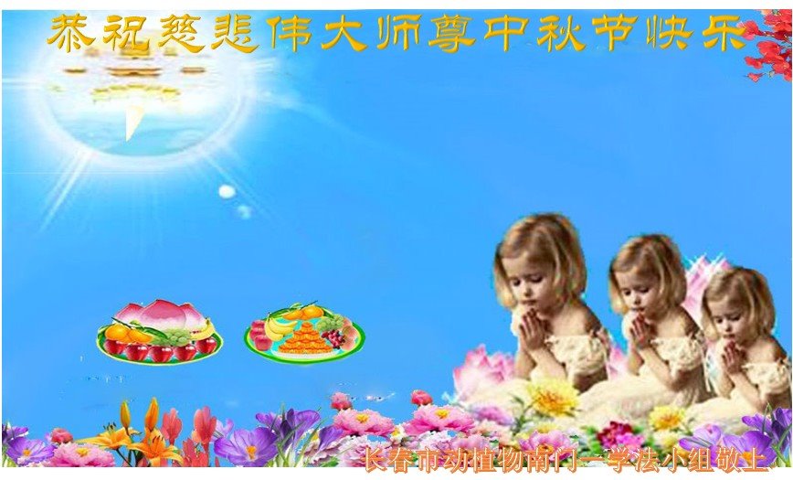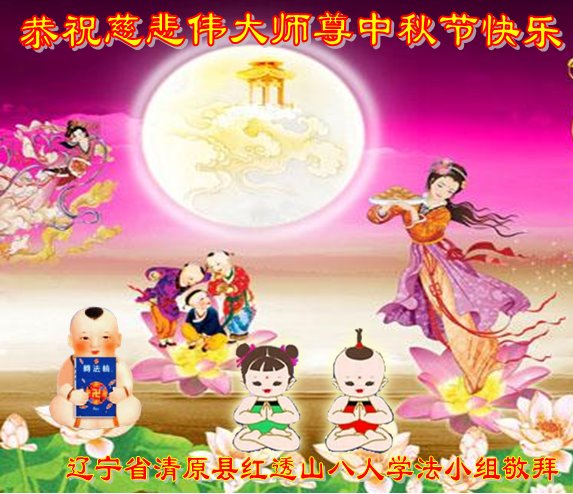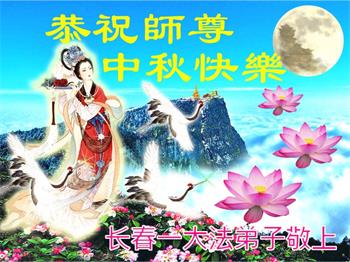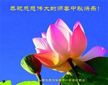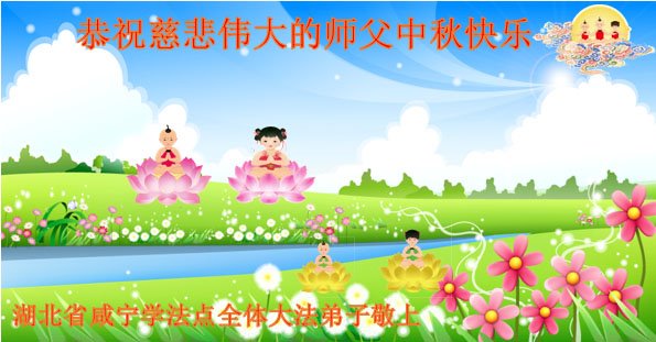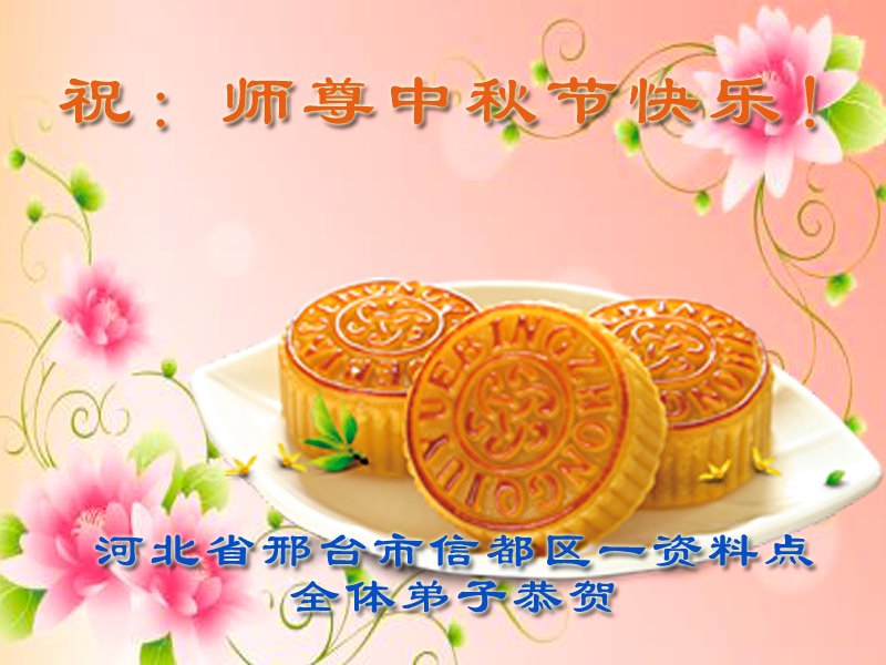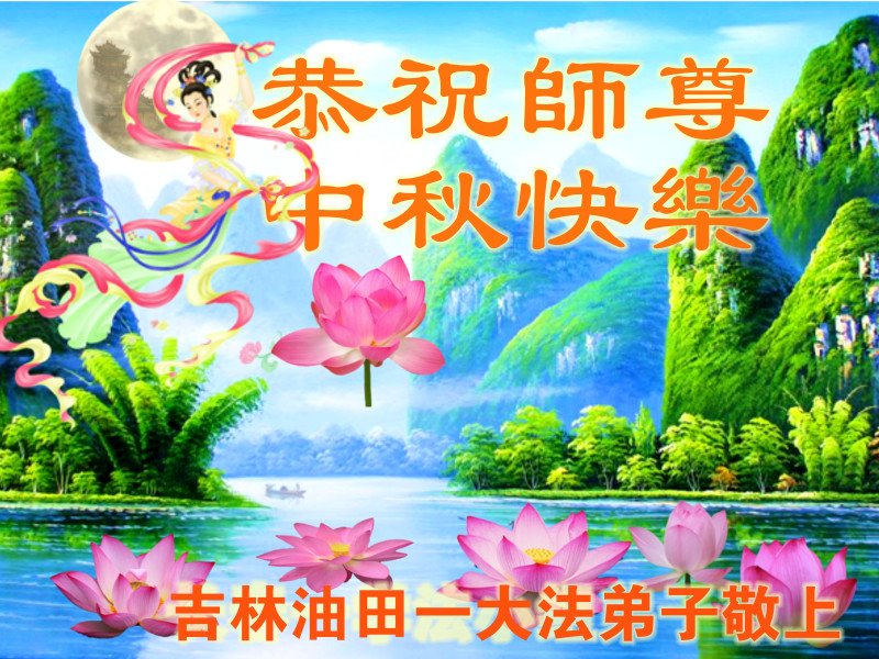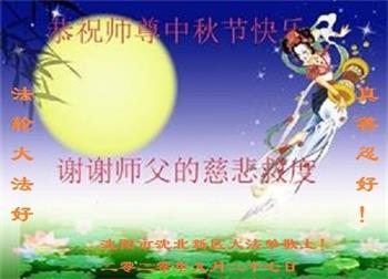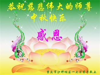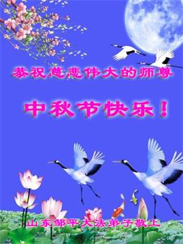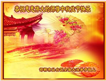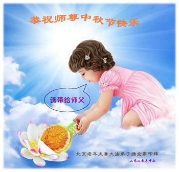 慈悲伟大的师尊您好!中秋节快乐!中铁第十一工程局的全体大法弟子远在中国大陆在中秋节前夕,弟子们向您献上无限的敬仰和感激之心!弟子们修炼二十多年了,我们一定继续坚持实修,抓紧这最后的、可贵的、亘古难遇的宇宙更新的大好时机,一如既往的、精進的做好师尊要求的“三件事”,净心多学法、净心多发正念,去掉弟子们各自的各种执着心,从而慈悲的讲清真相,多多的救下世上还存有善念的世人。