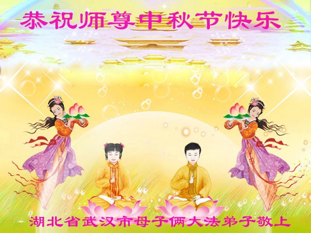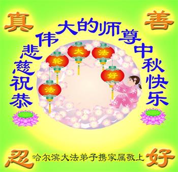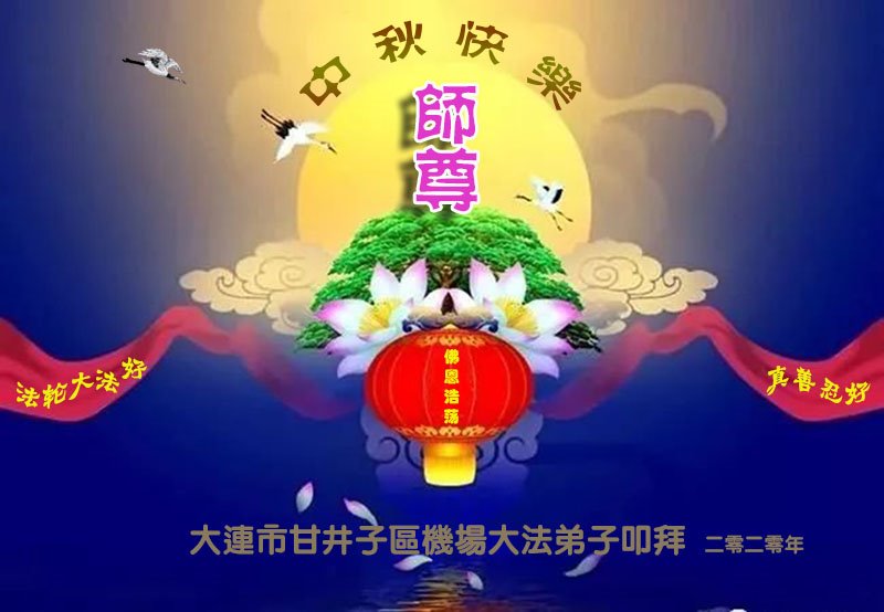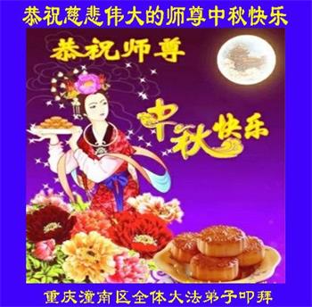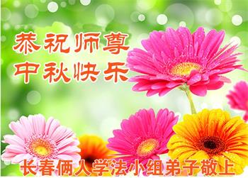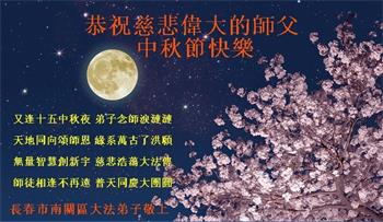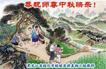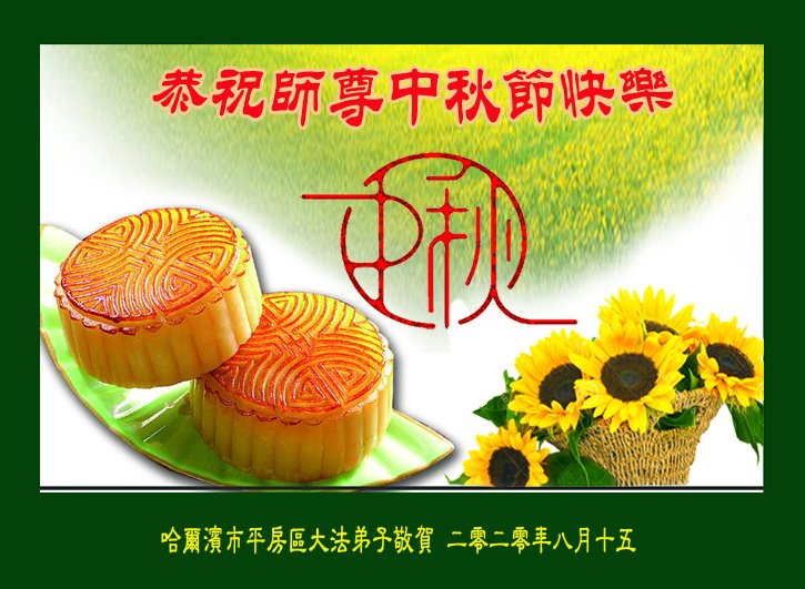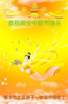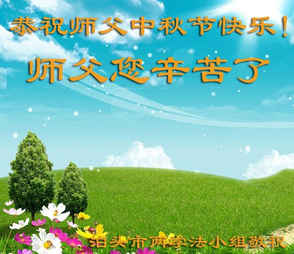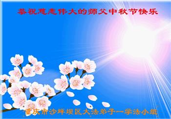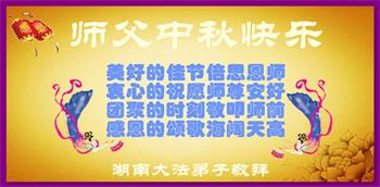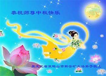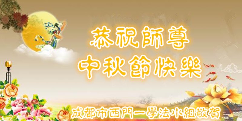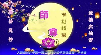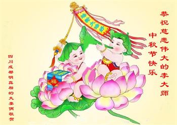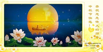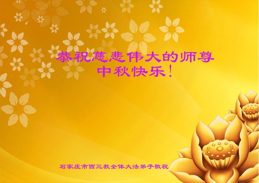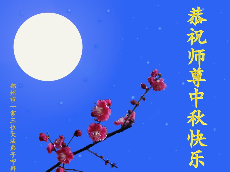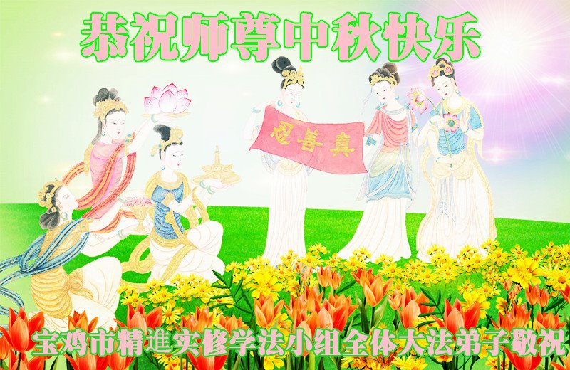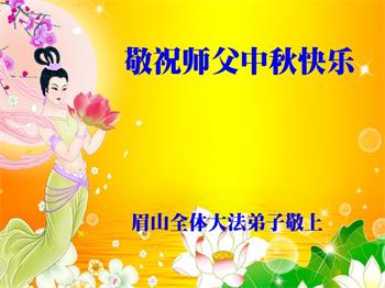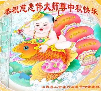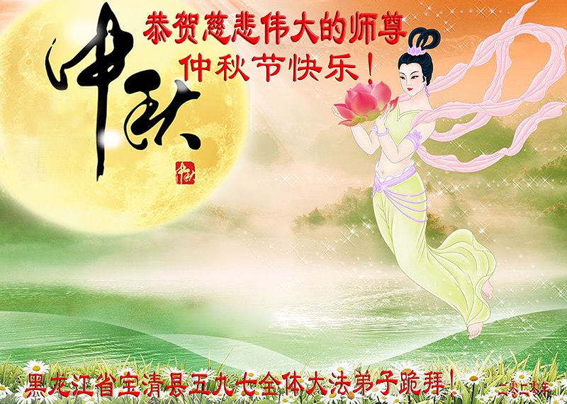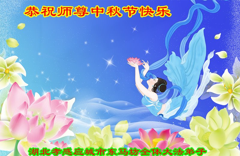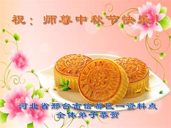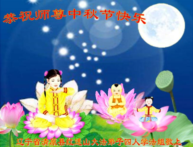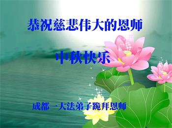 慈悲伟大的师尊您好!中秋节快乐!中铁第十一工程局的全体大法弟子远在中国大陆在中秋节前夕,弟子们向您献上无限的敬仰和感激之心!弟子们修炼二十多年了,我们一定继续坚持实修,抓紧这最后的、可贵的、亘古难遇的宇宙更新的大好时机,一如既往的、精進的做好师尊要求的“三件事”,净心多学法、净心多发正念,去掉弟子们各自的各种执着心,从而慈悲的讲清真相,多多的救下世上还存有善念的世人。