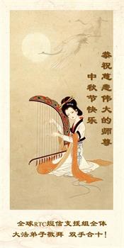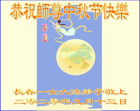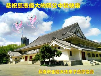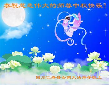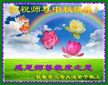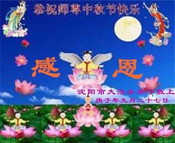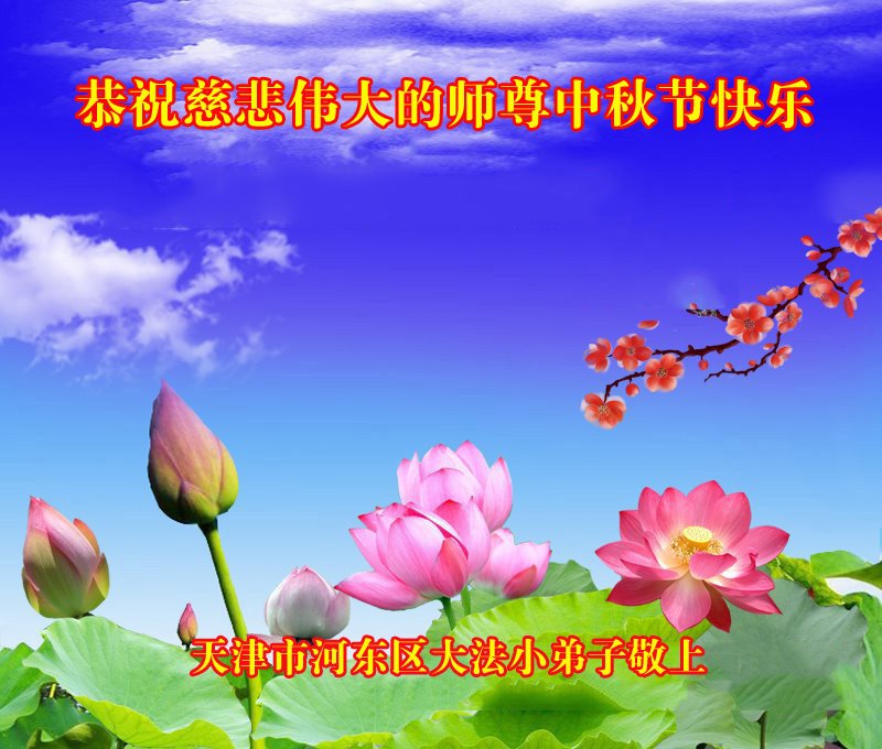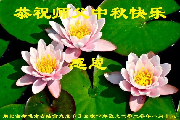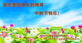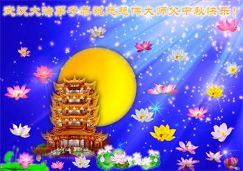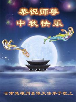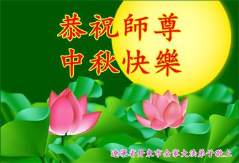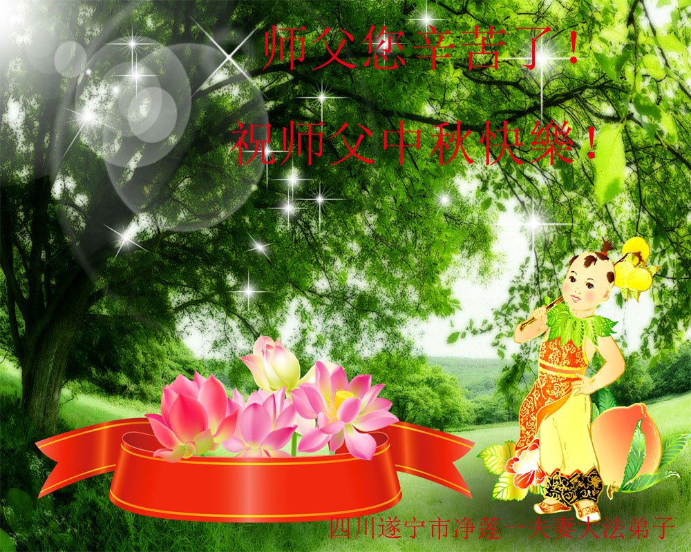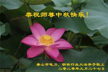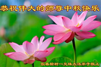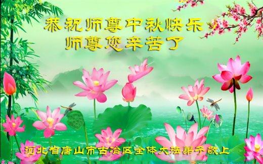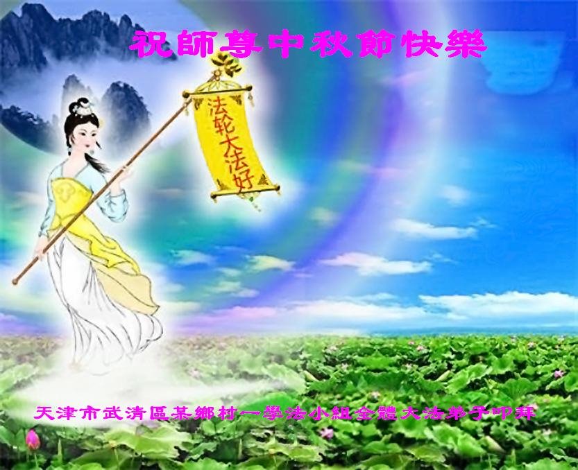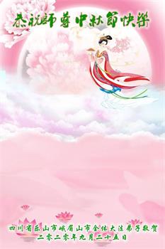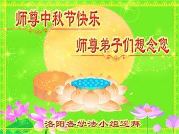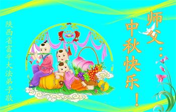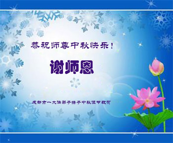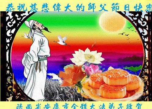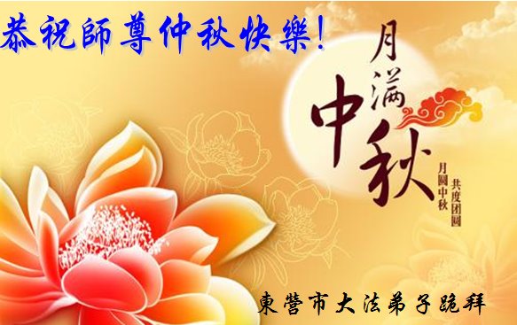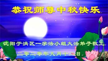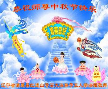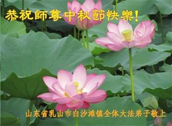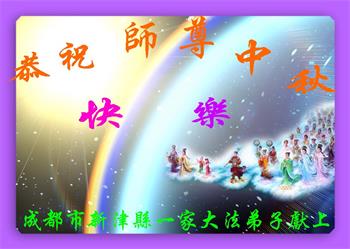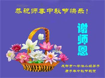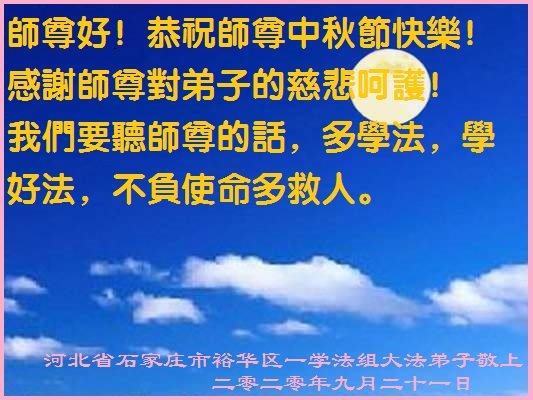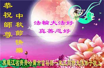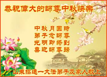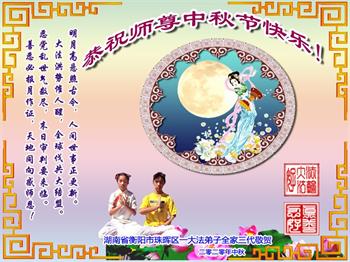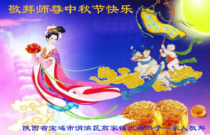 慈悲伟大的师尊您好!中秋节快乐!中铁第十一工程局的全体大法弟子远在中国大陆在中秋节前夕,弟子们向您献上无限的敬仰和感激之心!弟子们修炼二十多年了,我们一定继续坚持实修,抓紧这最后的、可贵的、亘古难遇的宇宙更新的大好时机,一如既往的、精進的做好师尊要求的“三件事”,净心多学法、净心多发正念,去掉弟子们各自的各种执着心,从而慈悲的讲清真相,多多的救下世上还存有善念的世人。