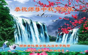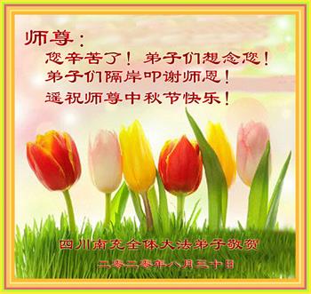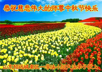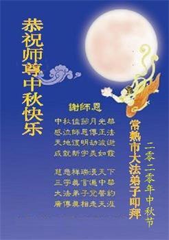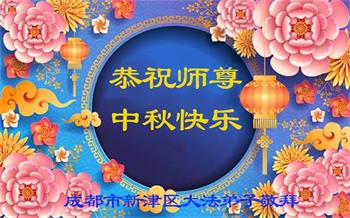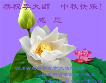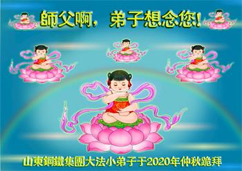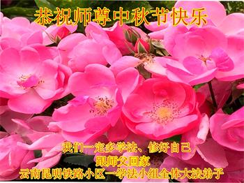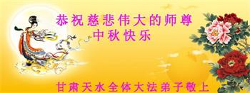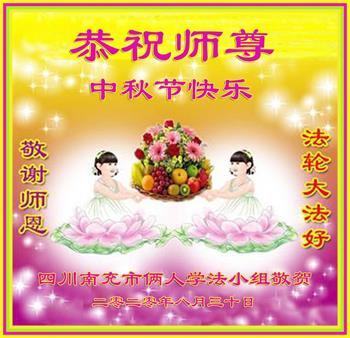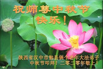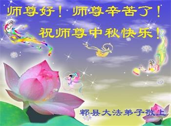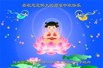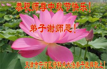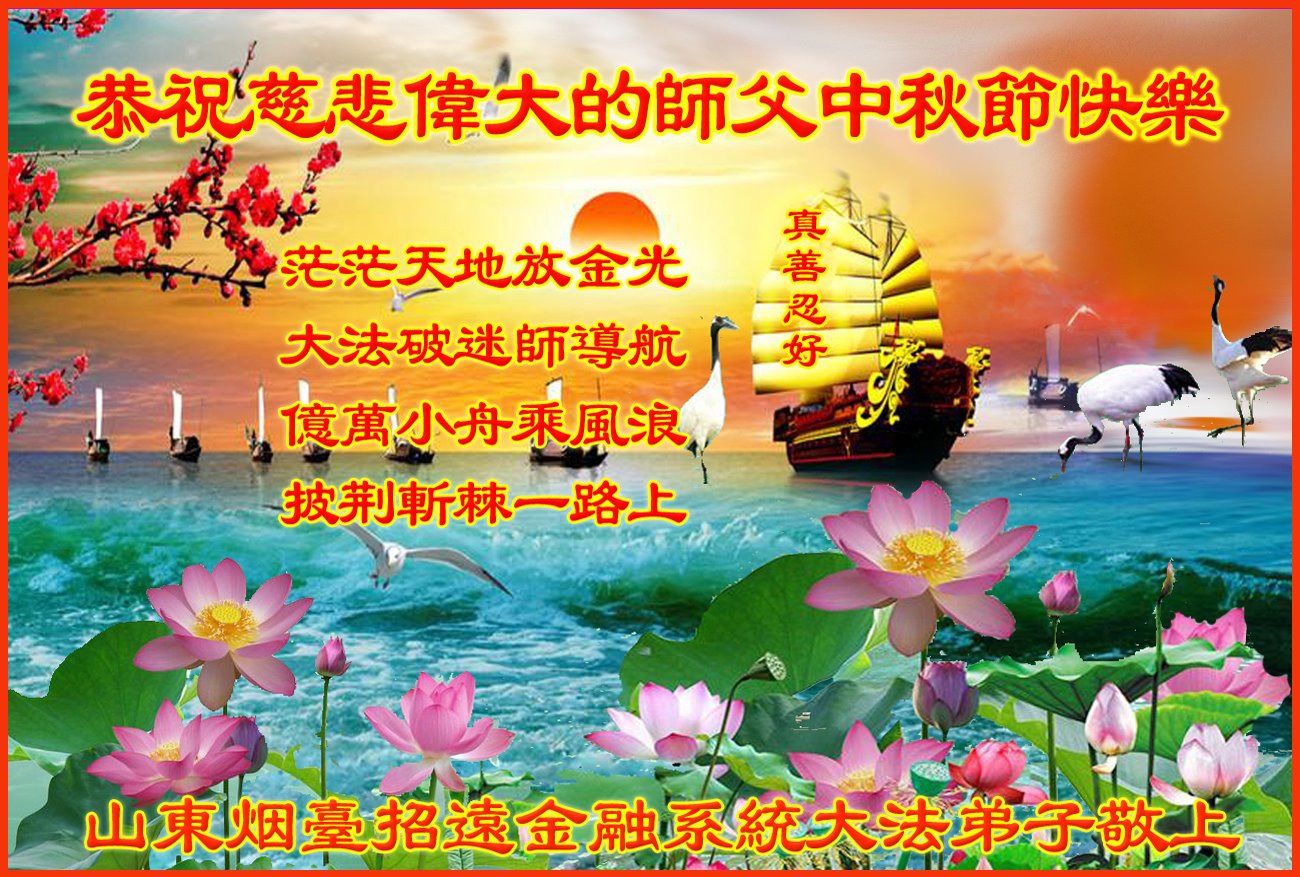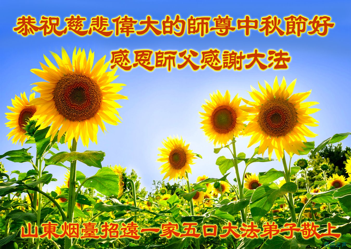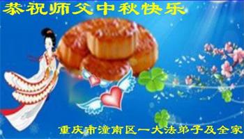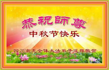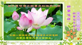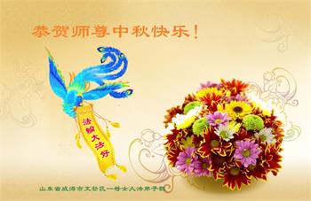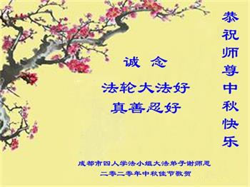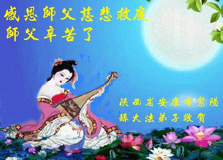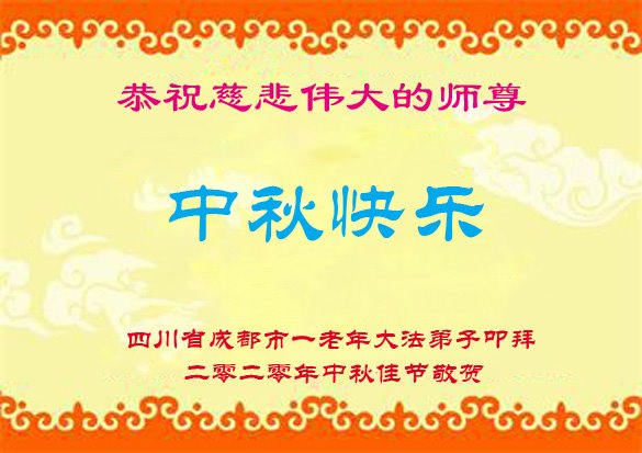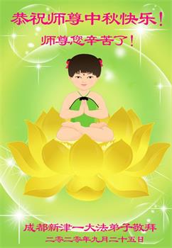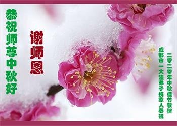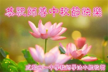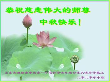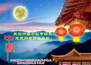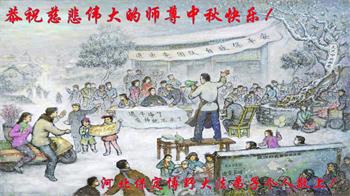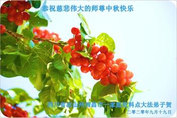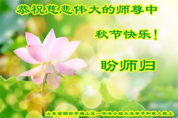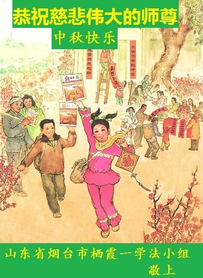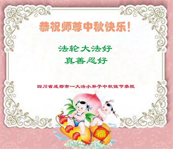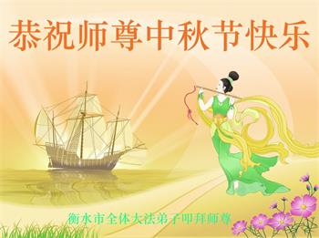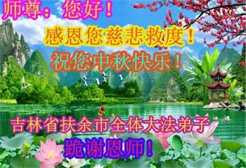 慈悲伟大的师尊您好!中秋节快乐!中铁第十一工程局的全体大法弟子远在中国大陆在中秋节前夕,弟子们向您献上无限的敬仰和感激之心!弟子们修炼二十多年了,我们一定继续坚持实修,抓紧这最后的、可贵的、亘古难遇的宇宙更新的大好时机,一如既往的、精進的做好师尊要求的“三件事”,净心多学法、净心多发正念,去掉弟子们各自的各种执着心,从而慈悲的讲清真相,多多的救下世上还存有善念的世人。