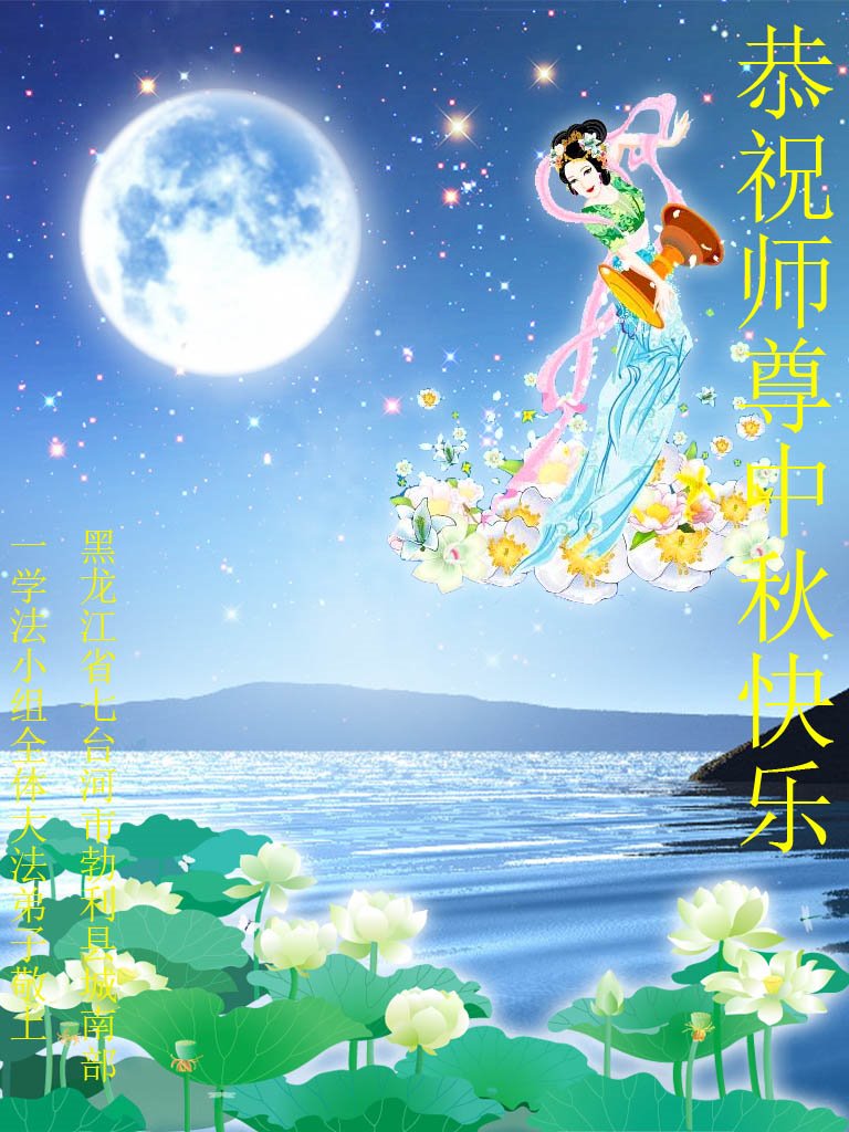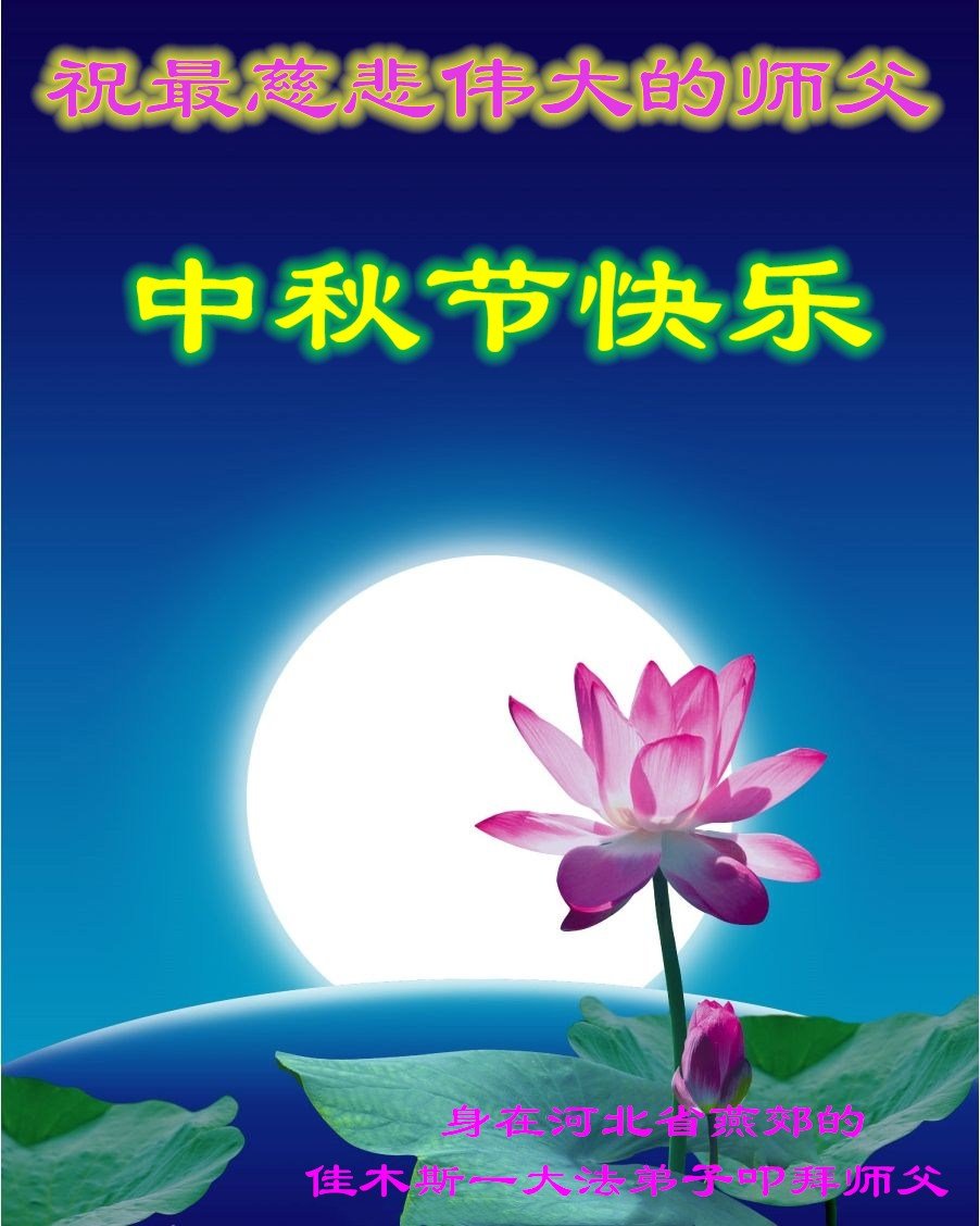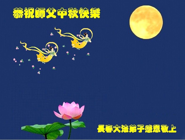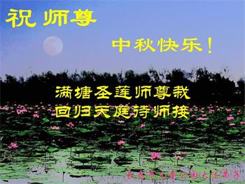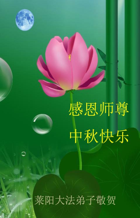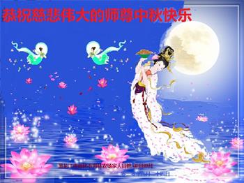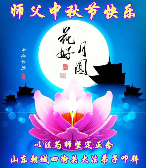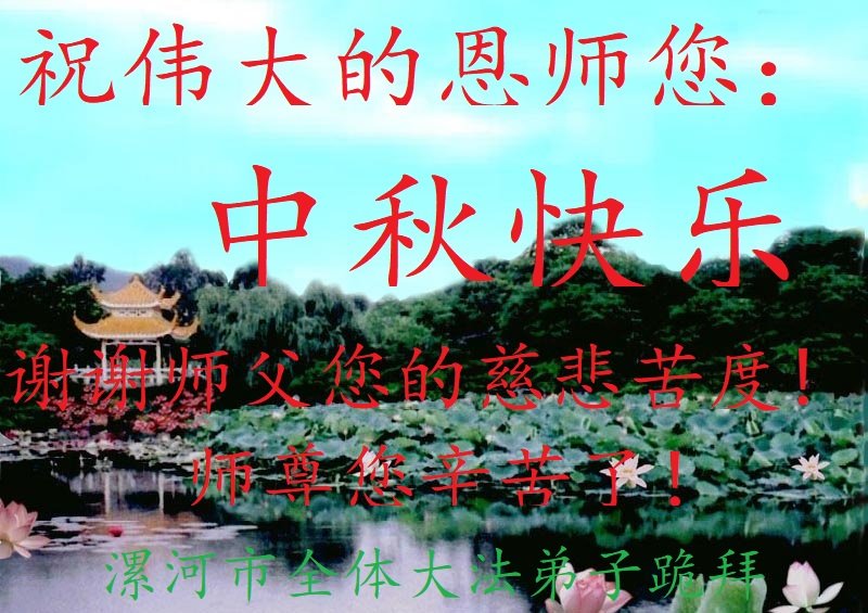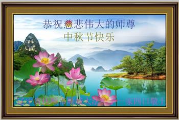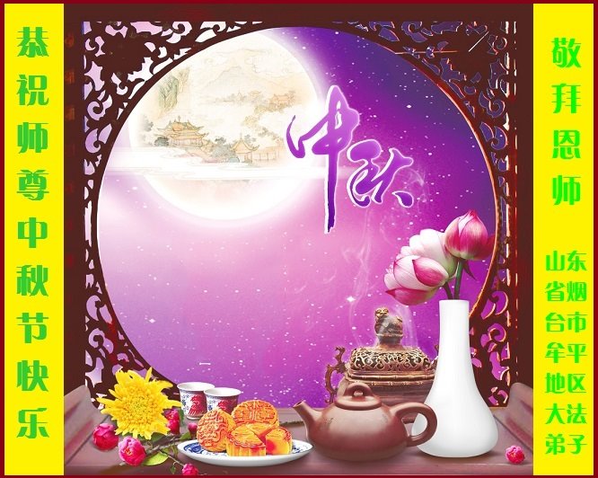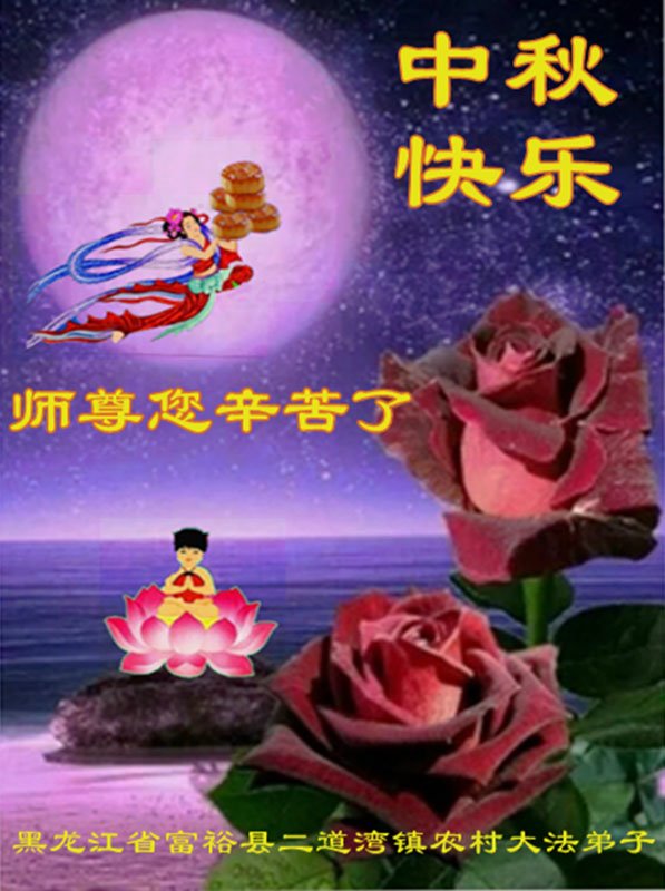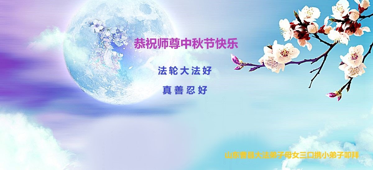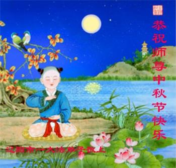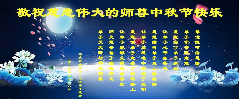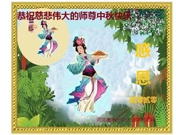 值此中秋佳节来临之际,弟子恭祝慈悲伟大的师尊中秋节快乐!在剩下的宝贵时间里,弟子一定牢记史前助师正法的神圣使命,走正走好修炼路,把大法救度的福音送到千家万户,让更多的众生得到大法的救度,愿师尊少一些操劳,多一份欣慰,惟愿师尊笑!