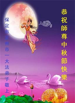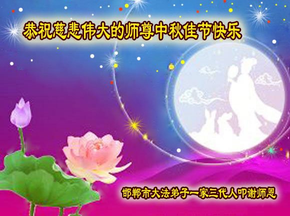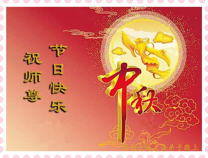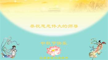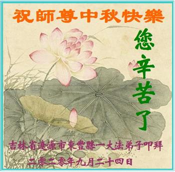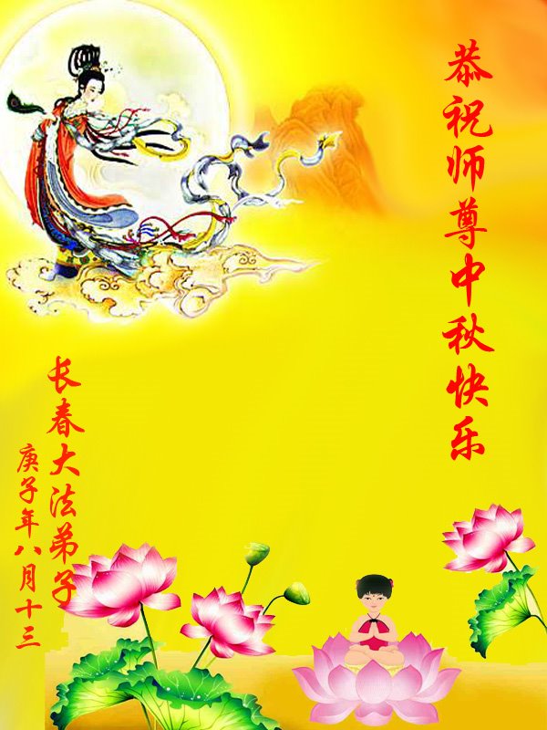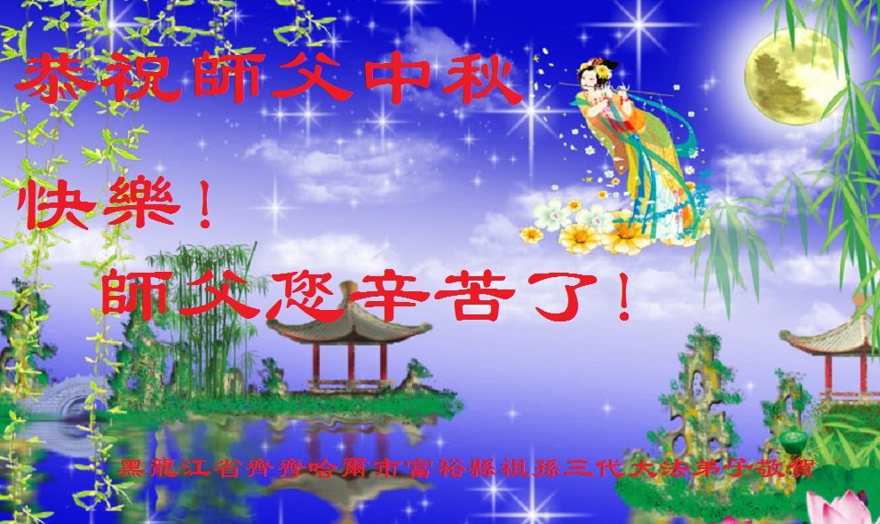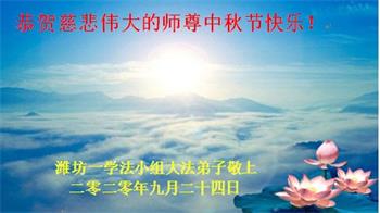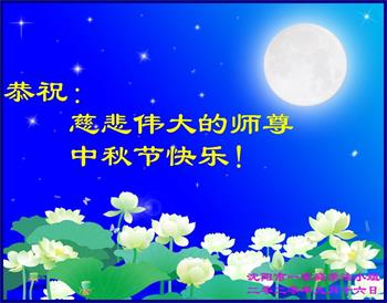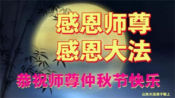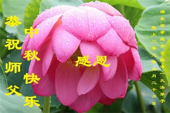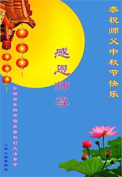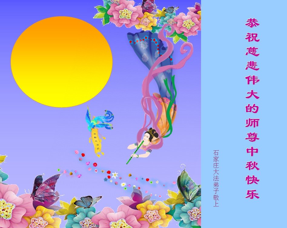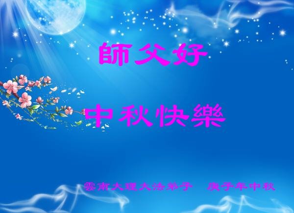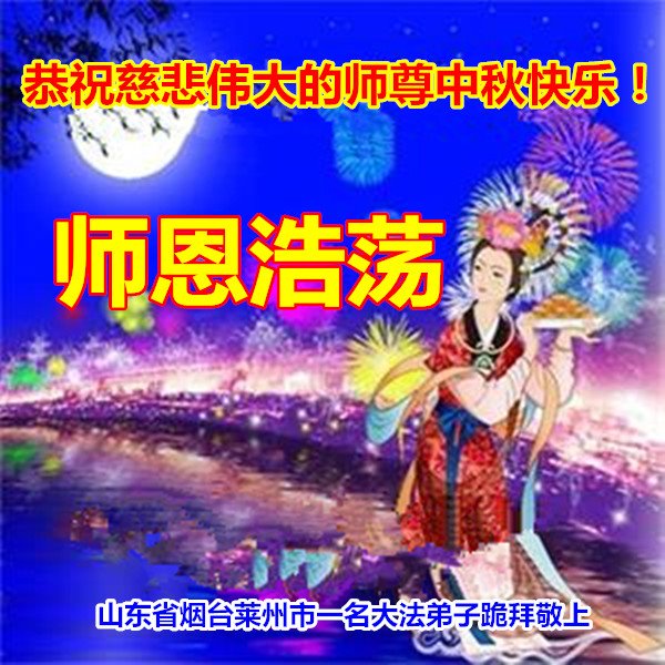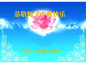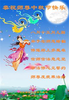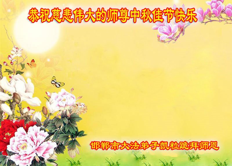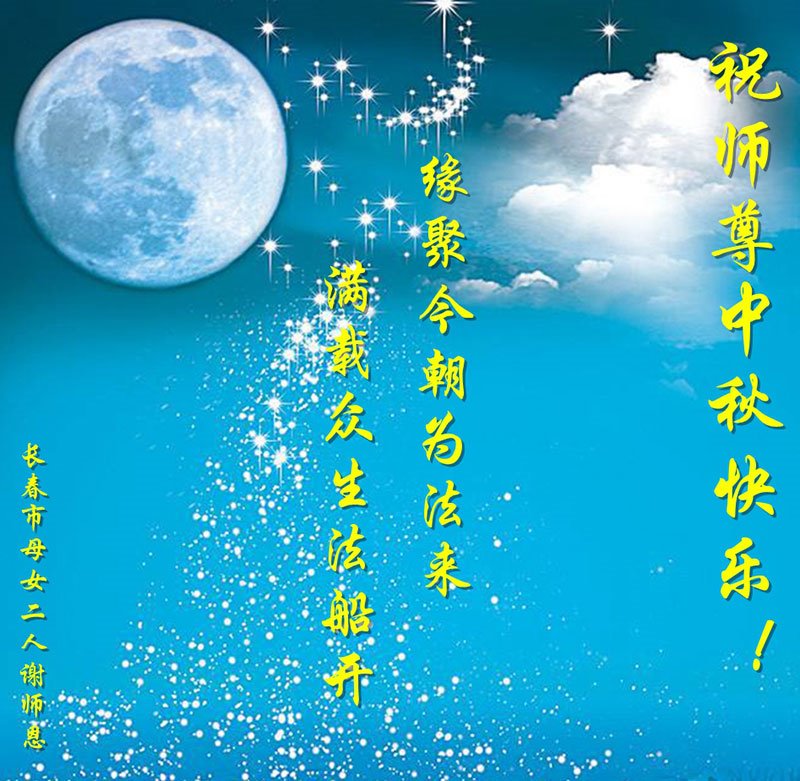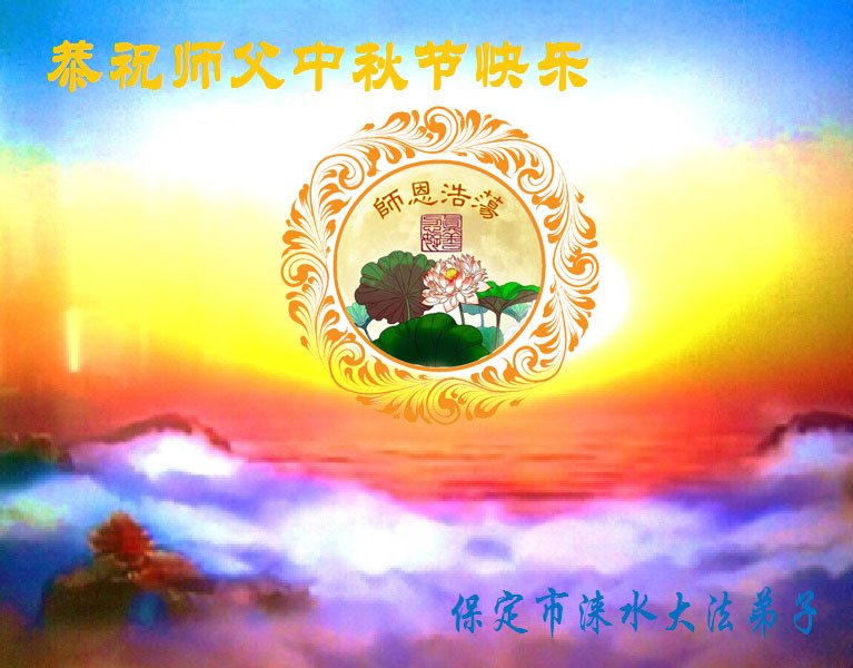 值此中秋佳节来临之际,弟子恭祝慈悲伟大的师尊中秋节快乐!在剩下的宝贵时间里,弟子一定牢记史前助师正法的神圣使命,走正走好修炼路,把大法救度的福音送到千家万户,让更多的众生得到大法的救度,愿师尊少一些操劳,多一份欣慰,惟愿师尊笑!