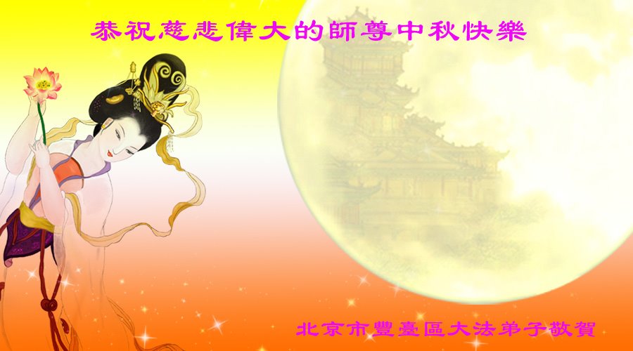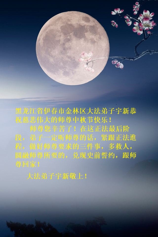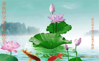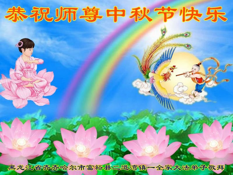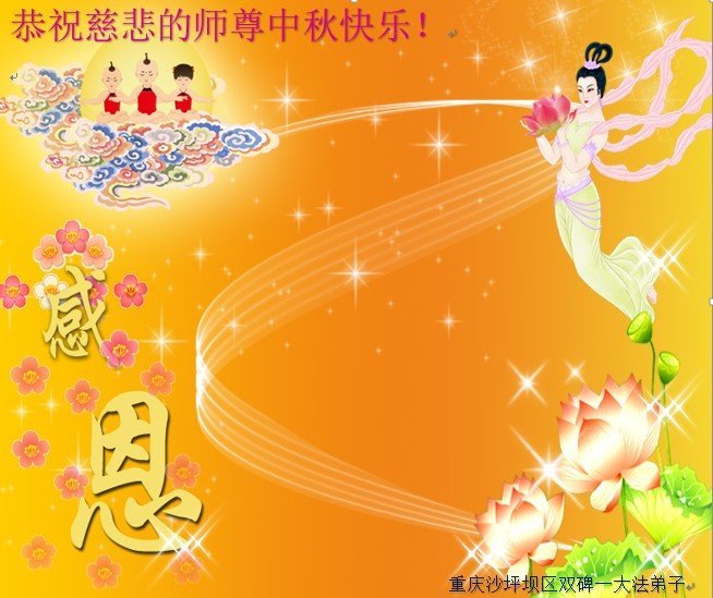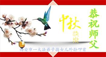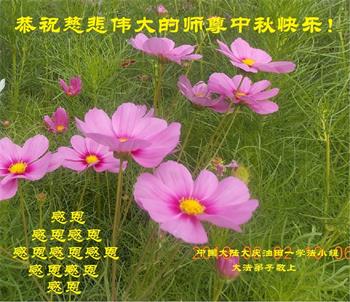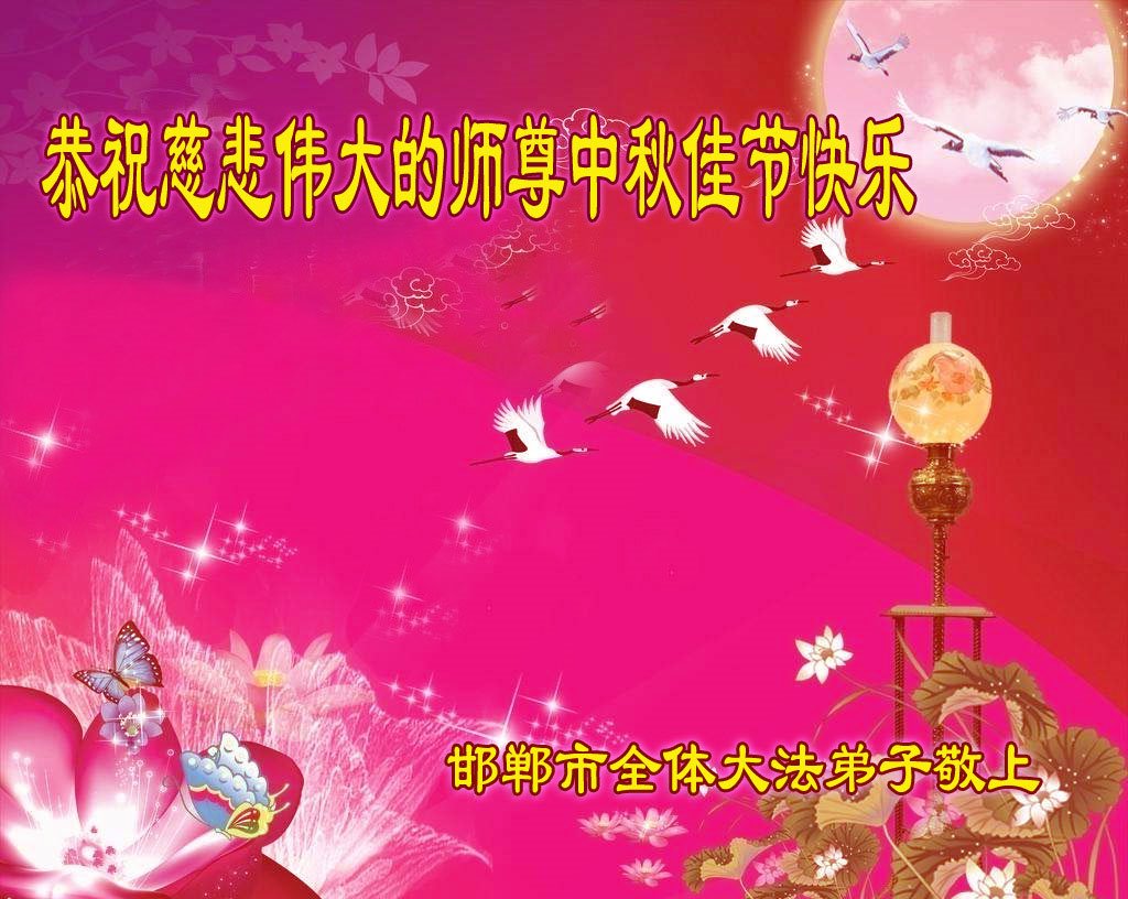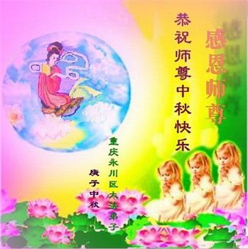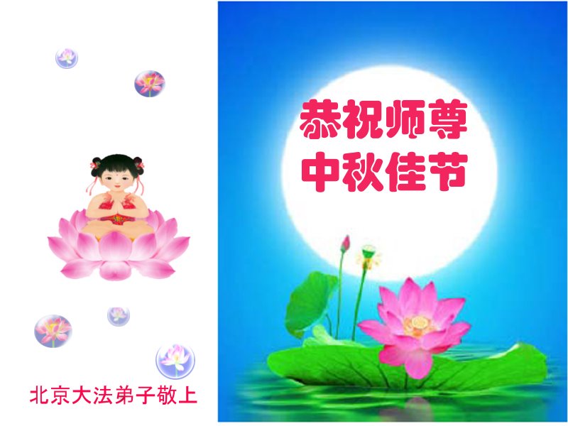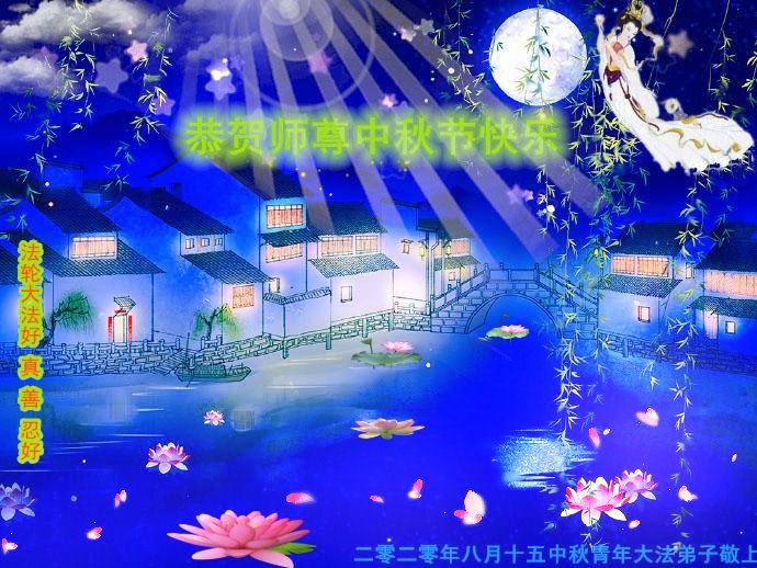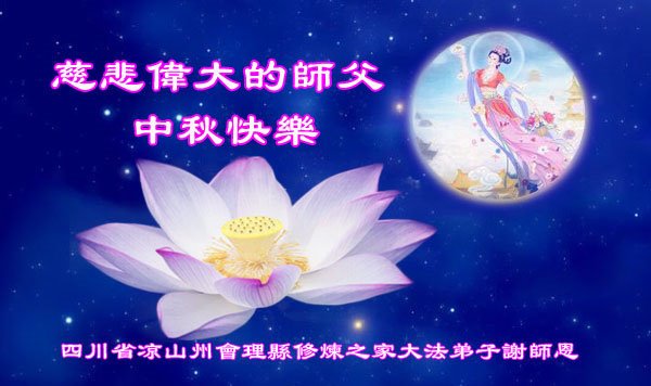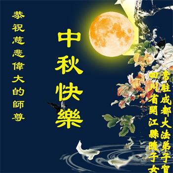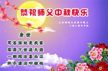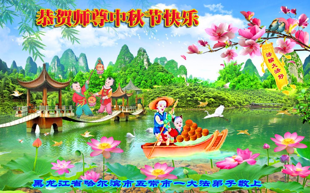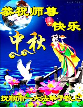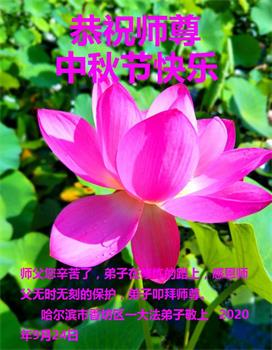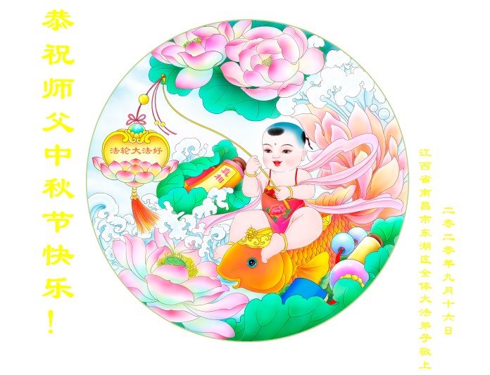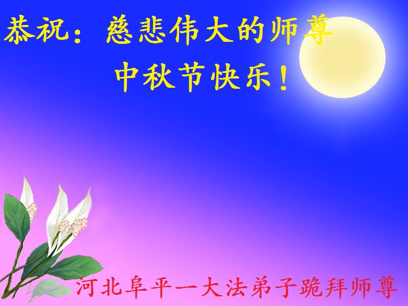 值此中秋佳节来临之际,弟子恭祝慈悲伟大的师尊中秋节快乐!在剩下的宝贵时间里,弟子一定牢记史前助师正法的神圣使命,走正走好修炼路,把大法救度的福音送到千家万户,让更多的众生得到大法的救度,愿师尊少一些操劳,多一份欣慰,惟愿师尊笑!