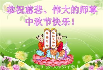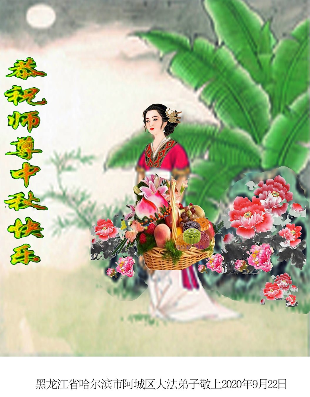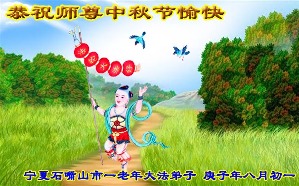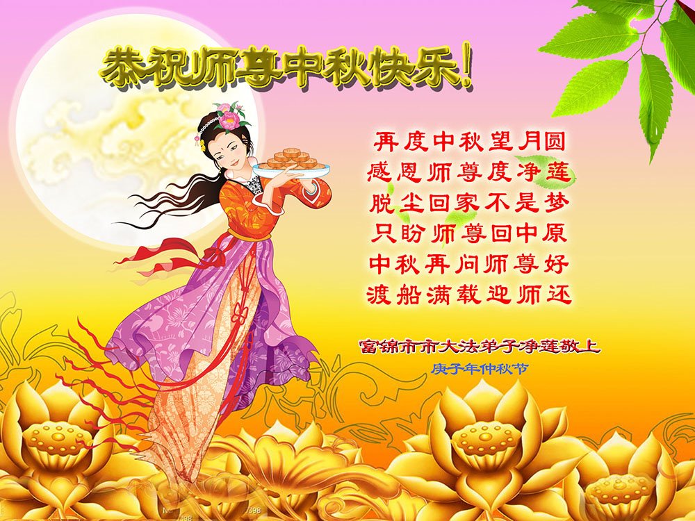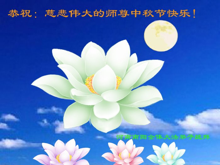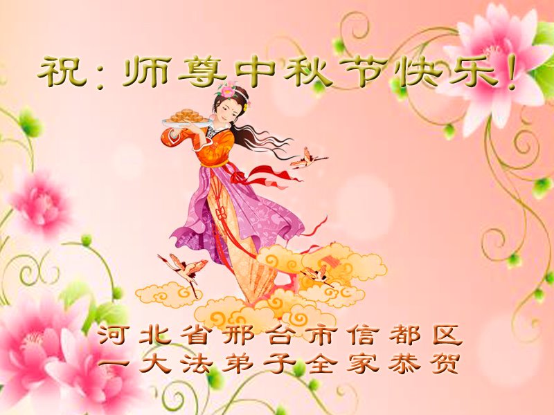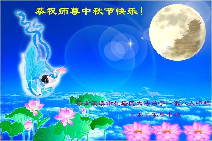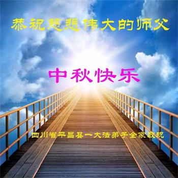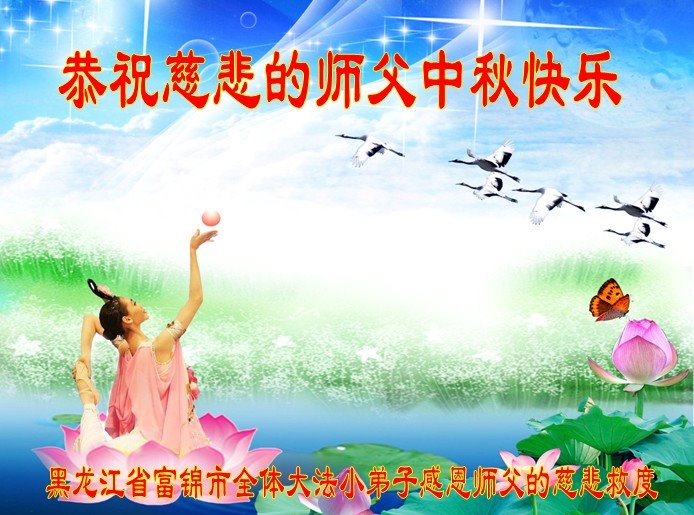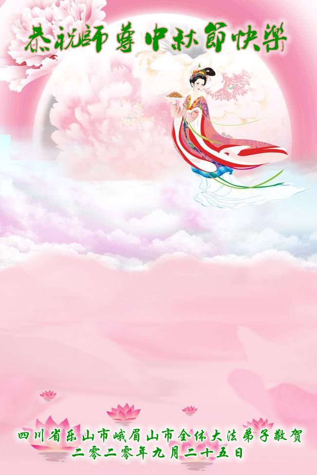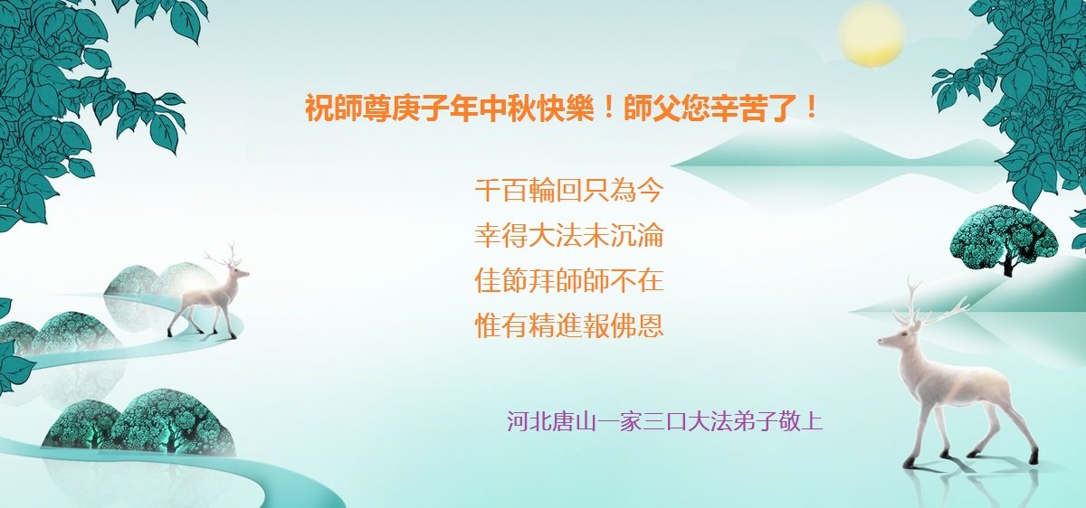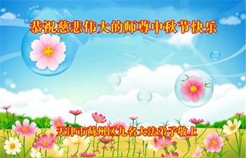 值此中秋佳节来临之际,弟子恭祝慈悲伟大的师尊中秋节快乐!在剩下的宝贵时间里,弟子一定牢记史前助师正法的神圣使命,走正走好修炼路,把大法救度的福音送到千家万户,让更多的众生得到大法的救度,愿师尊少一些操劳,多一份欣慰,惟愿师尊笑!