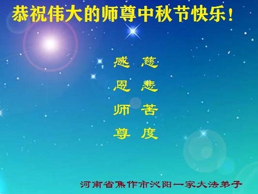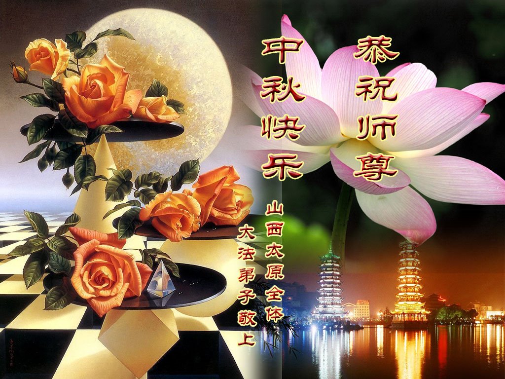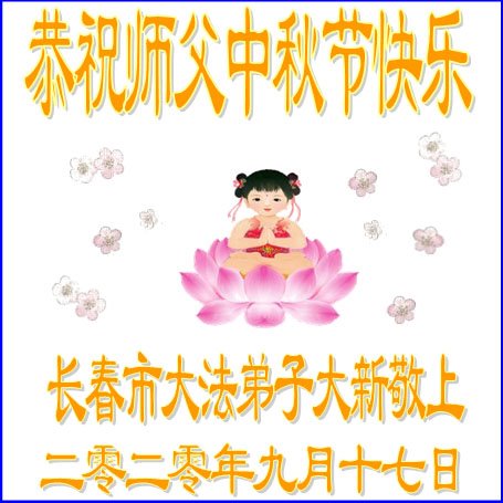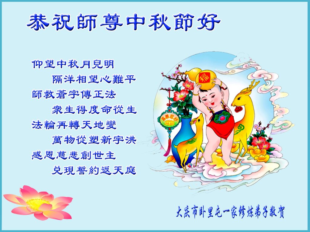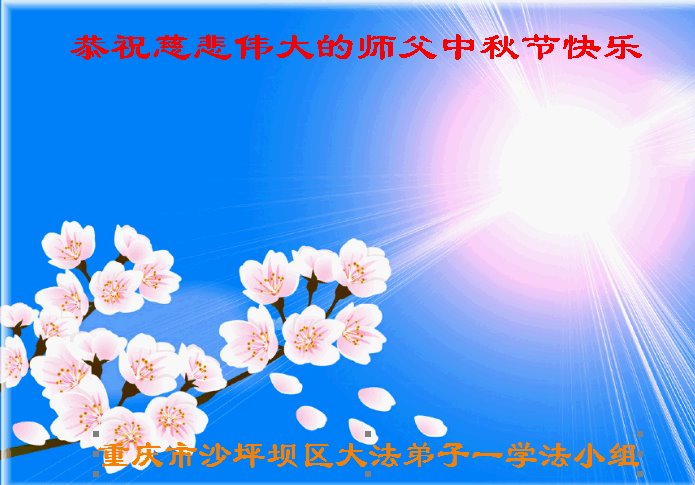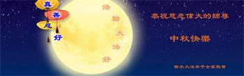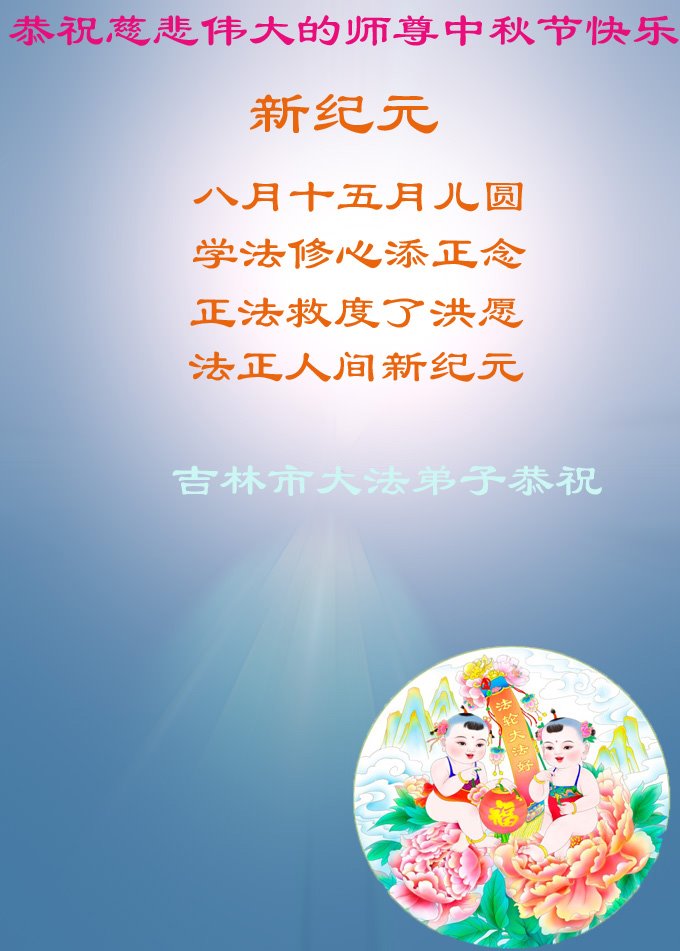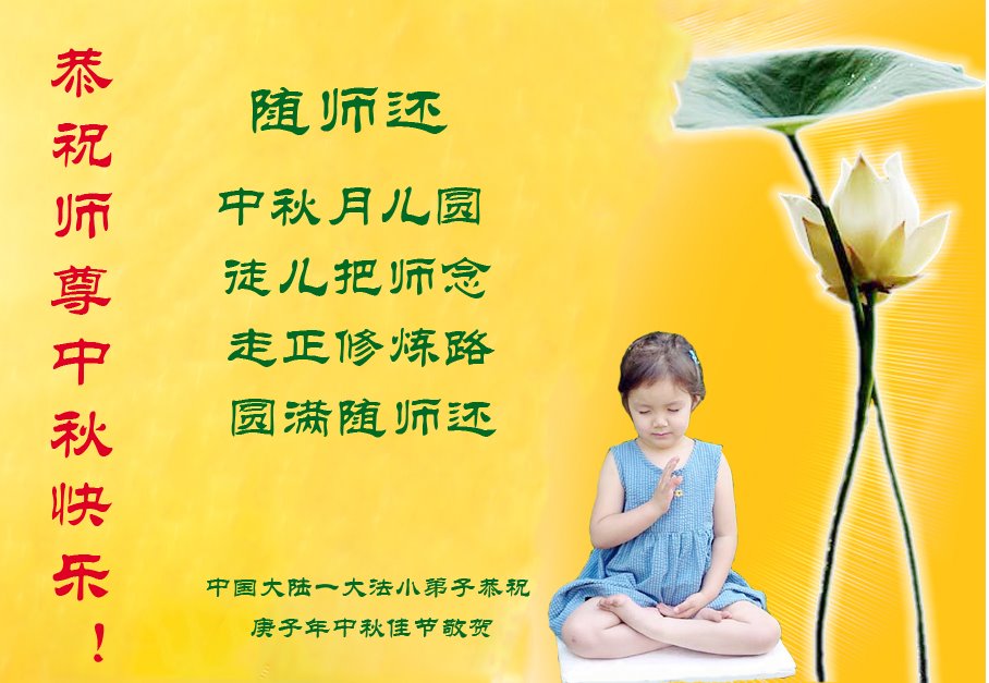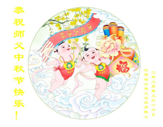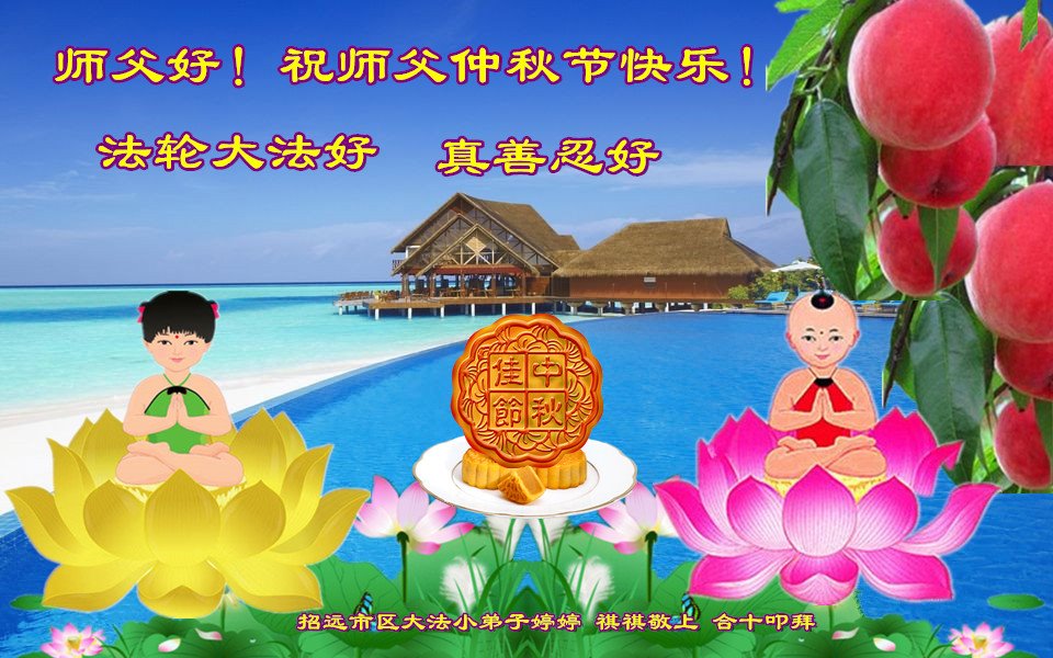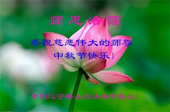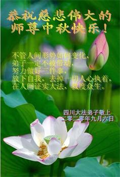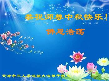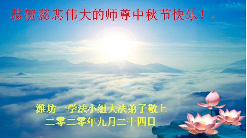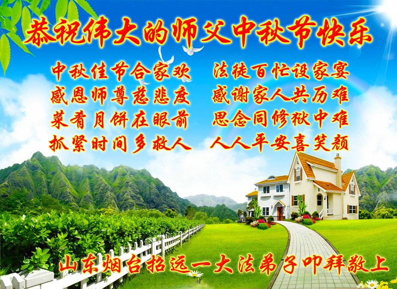 值此中秋佳节来临之际,弟子恭祝慈悲伟大的师尊中秋节快乐!在剩下的宝贵时间里,弟子一定牢记史前助师正法的神圣使命,走正走好修炼路,把大法救度的福音送到千家万户,让更多的众生得到大法的救度,愿师尊少一些操劳,多一份欣慰,惟愿师尊笑!