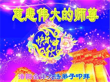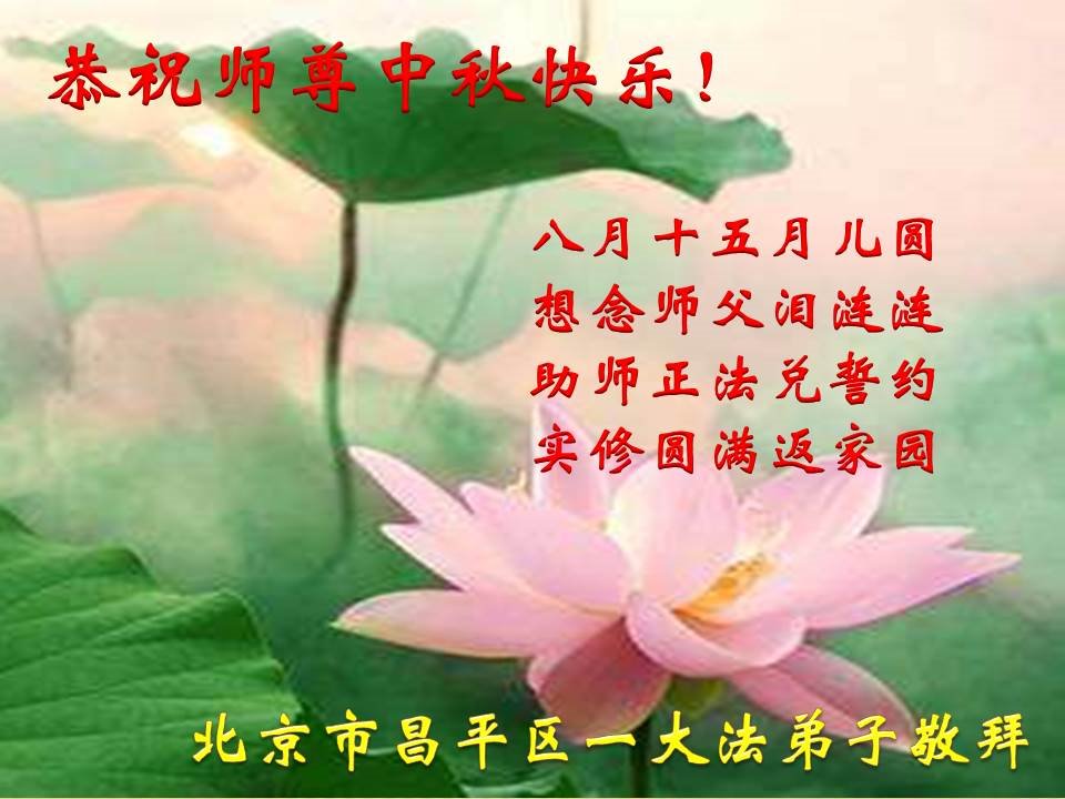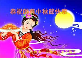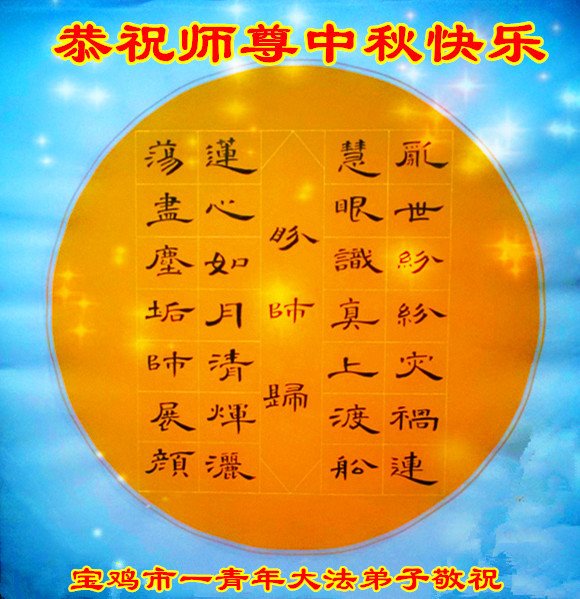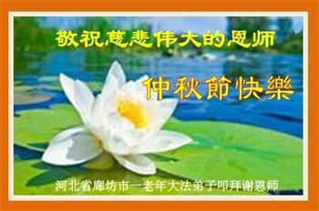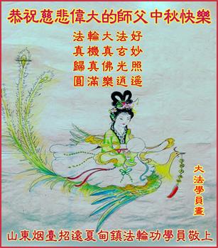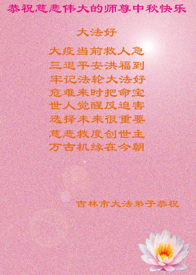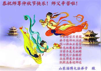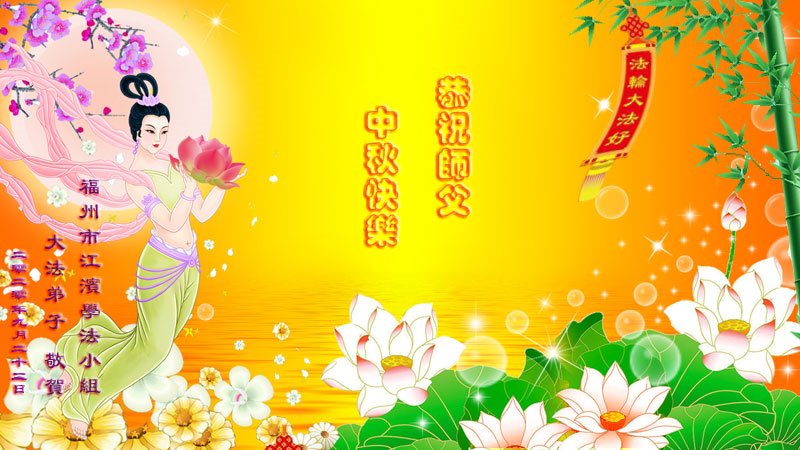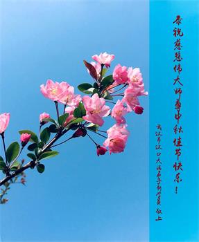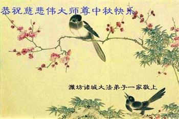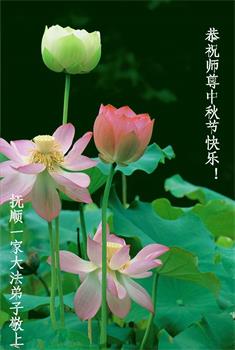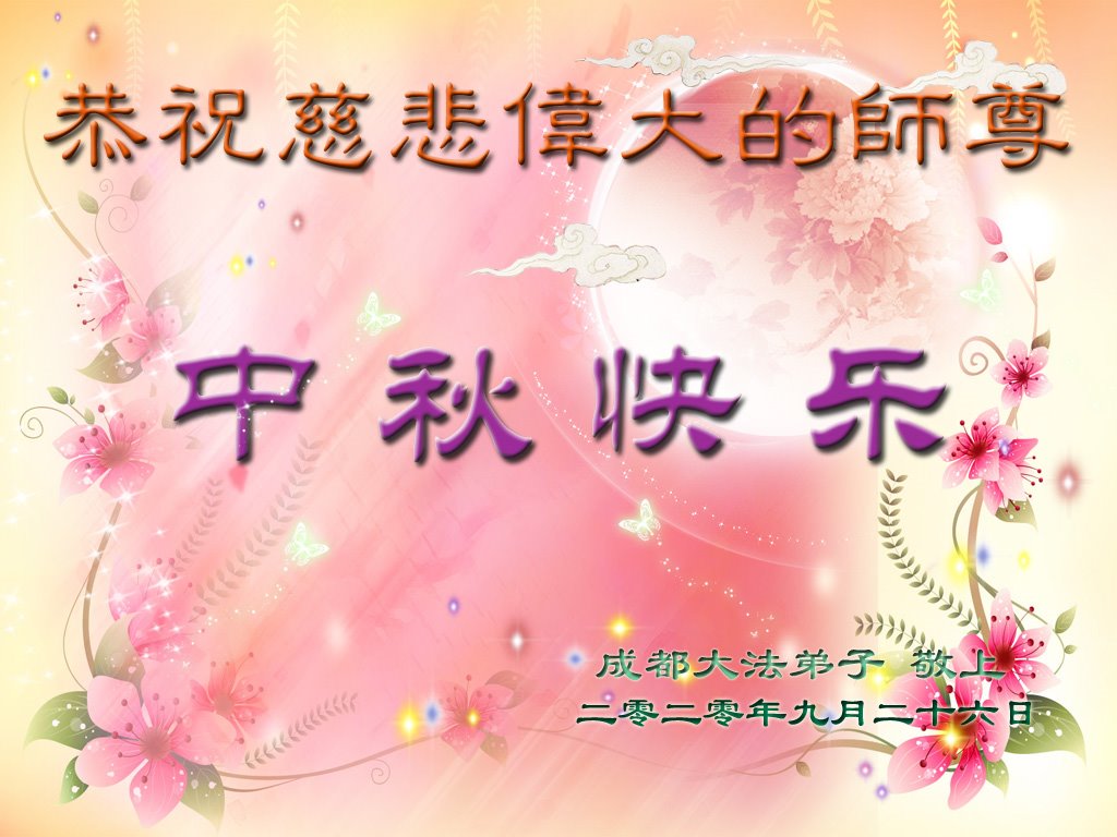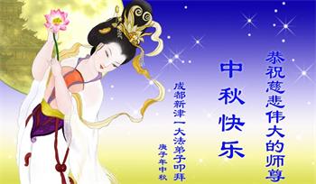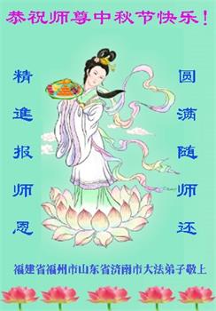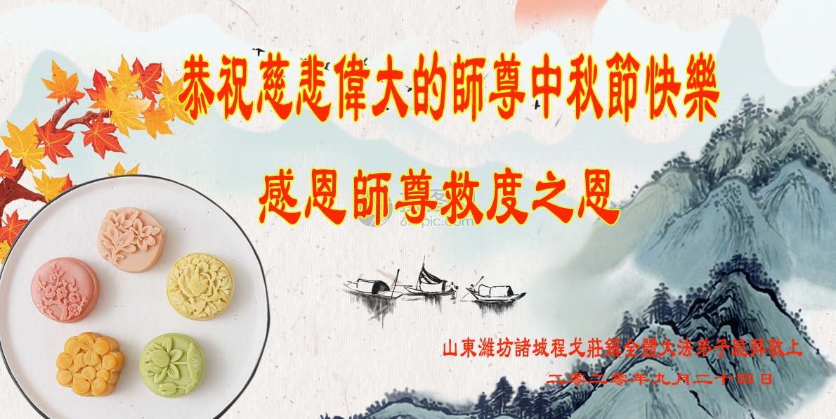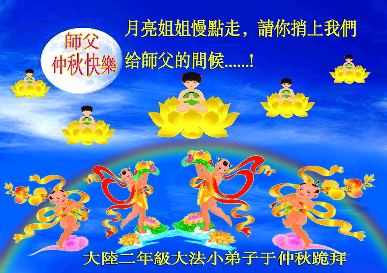 值此中秋佳节来临之际,弟子恭祝慈悲伟大的师尊中秋节快乐!在剩下的宝贵时间里,弟子一定牢记史前助师正法的神圣使命,走正走好修炼路,把大法救度的福音送到千家万户,让更多的众生得到大法的救度,愿师尊少一些操劳,多一份欣慰,惟愿师尊笑!