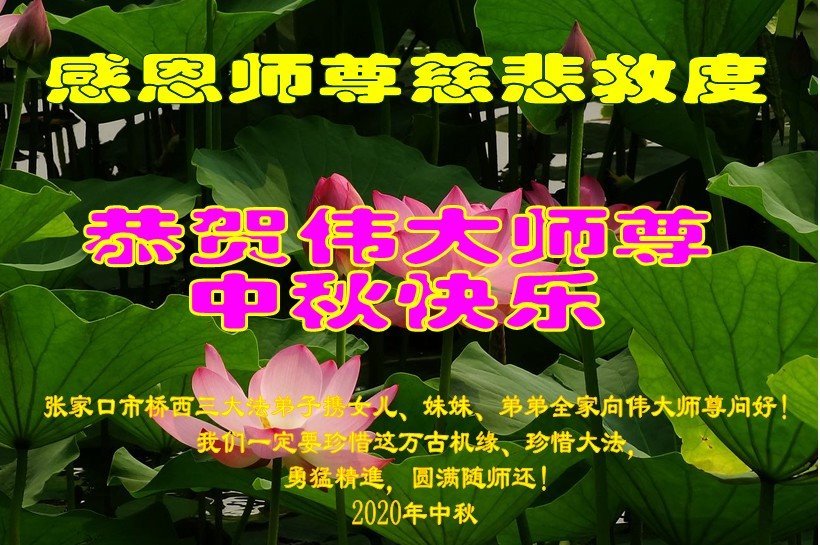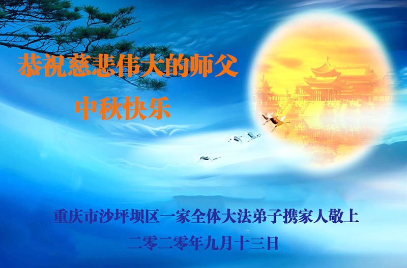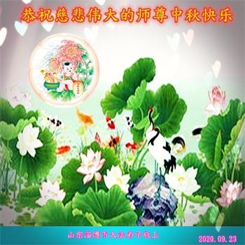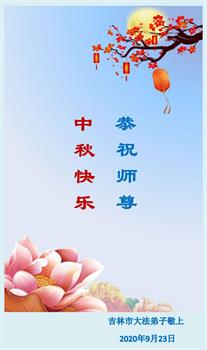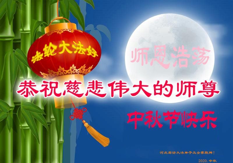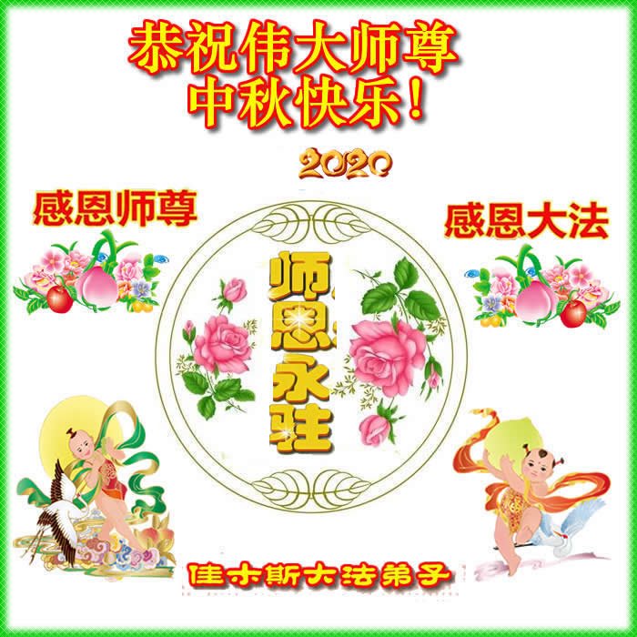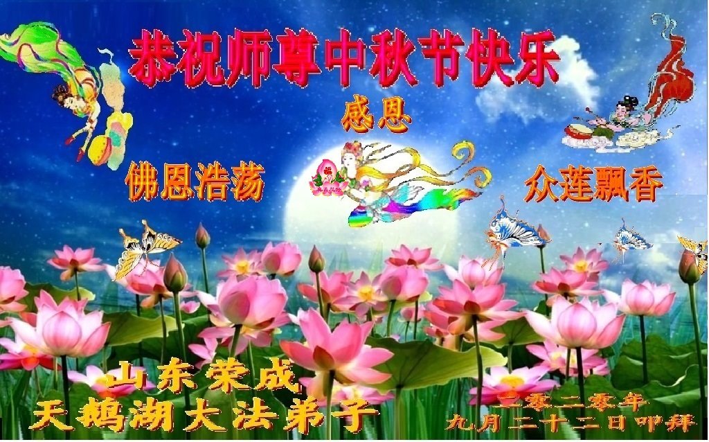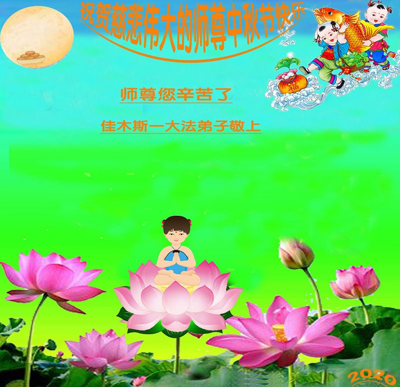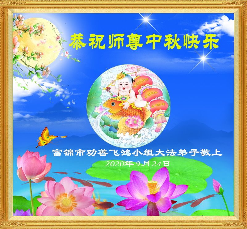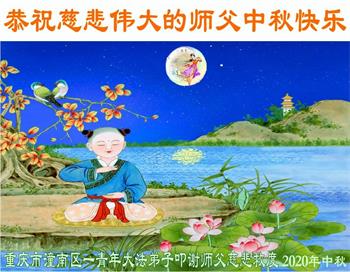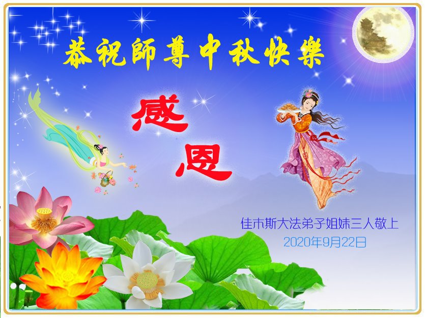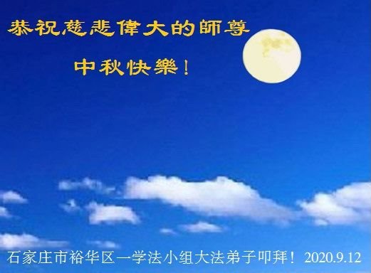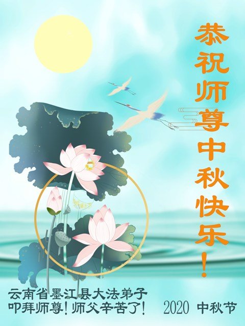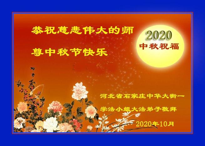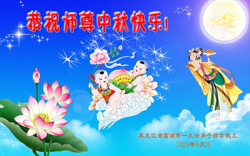 在2020年中秋节即将到来之际,我们夫妻大法弟子恭祝师尊中秋节快乐!我们是北京的一对教师大法弟子。1999年邪党迫害大法之后,我们坚定修炼,都失去了正式工作,但在师父的保护下,我们创办了文化公司,到农村、大学、小学、幼儿园等弘扬传统文化,10年间使几十所学校的师生受益。我们也有了稳定的工作,2020年还住進了翻盖的新房,得到了邻居的赞扬,这都是意想不到的事情,这是恩师的赐予,我们夫妻感谢师父慈悲苦度!