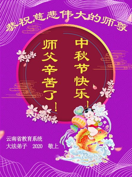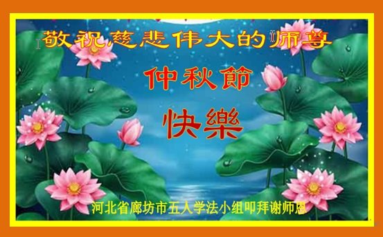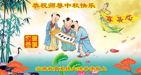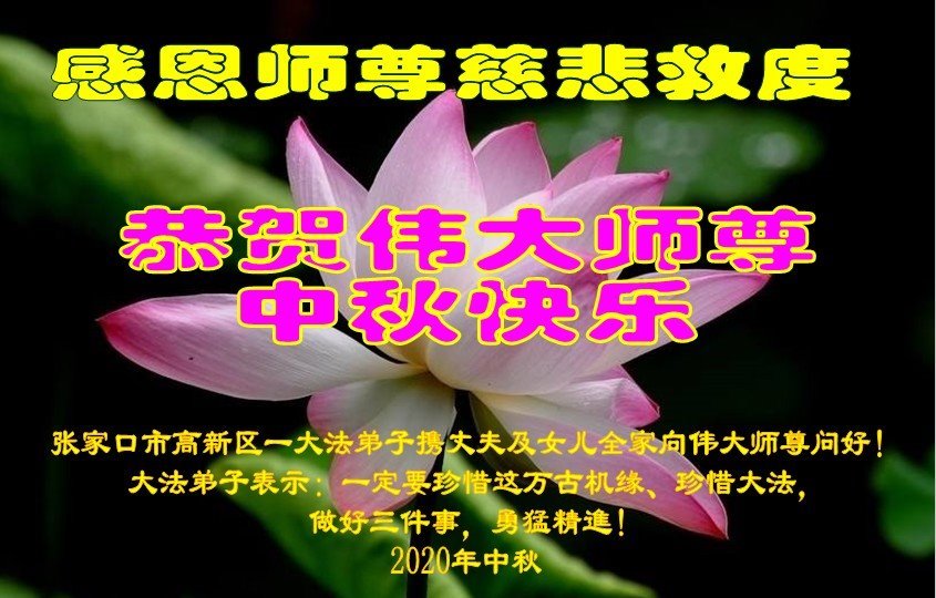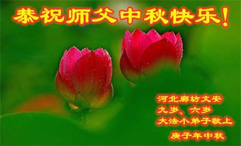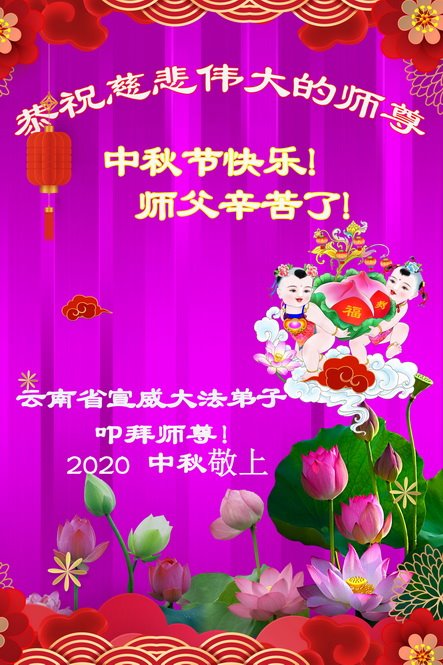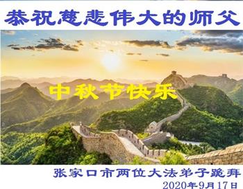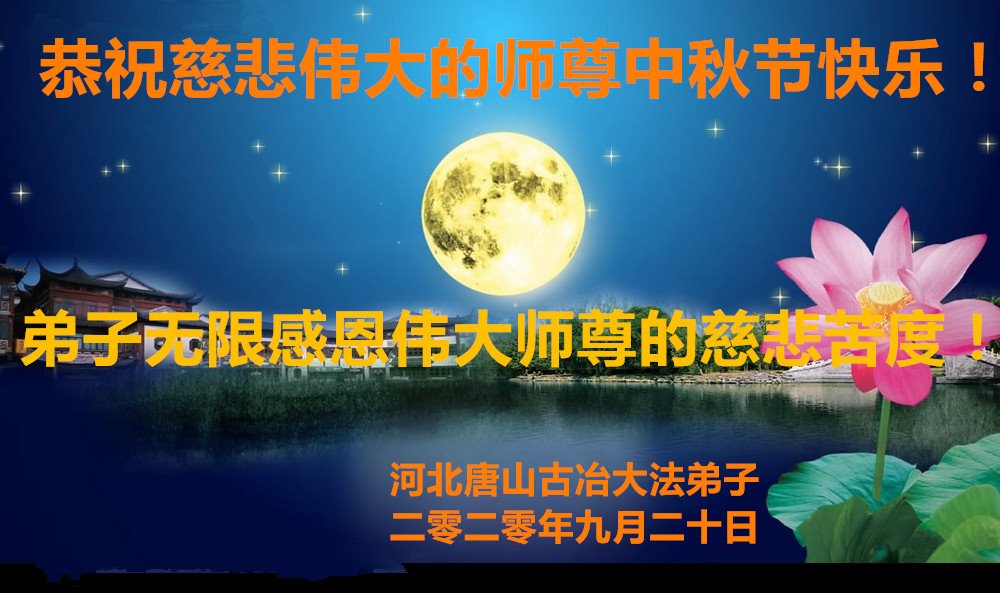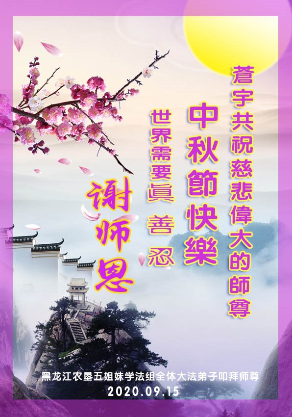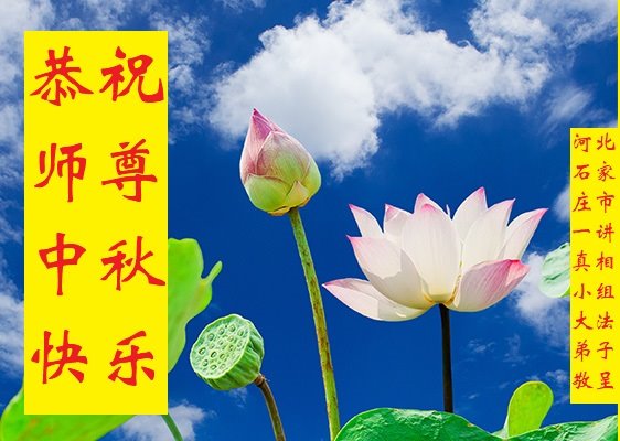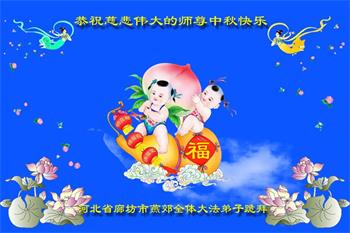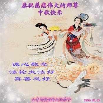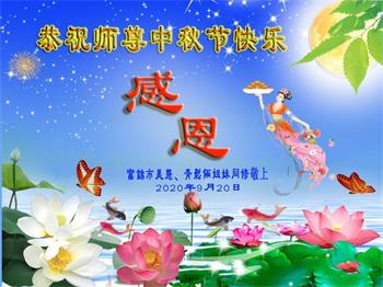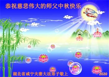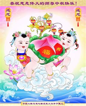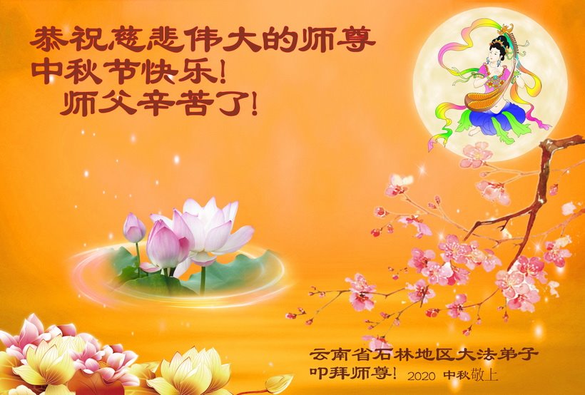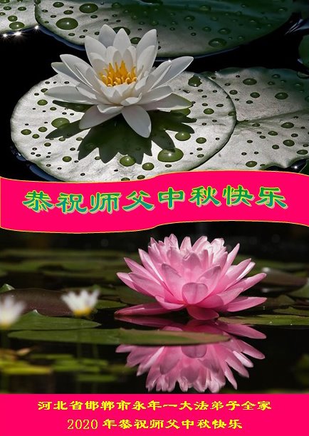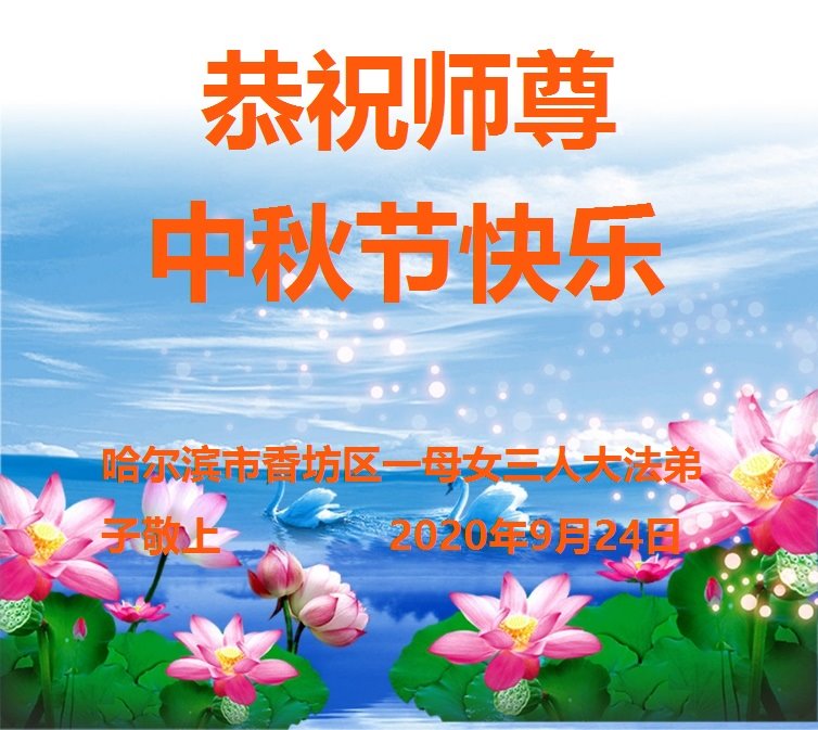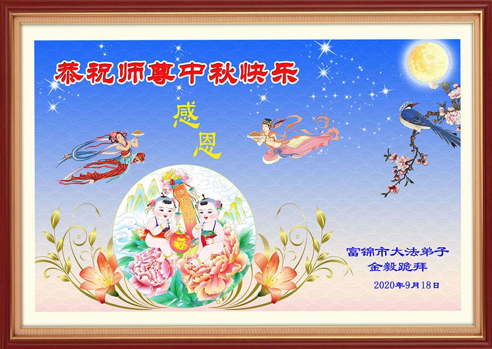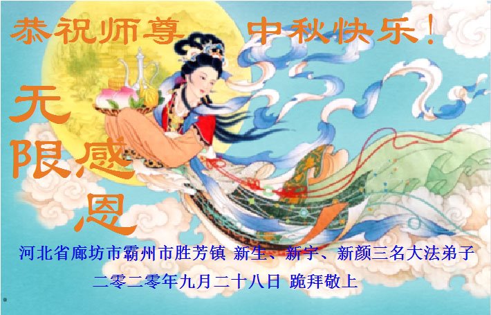 在2020年中秋节即将到来之际,我们夫妻大法弟子恭祝师尊中秋节快乐!我们是北京的一对教师大法弟子。1999年邪党迫害大法之后,我们坚定修炼,都失去了正式工作,但在师父的保护下,我们创办了文化公司,到农村、大学、小学、幼儿园等弘扬传统文化,10年间使几十所学校的师生受益。我们也有了稳定的工作,2020年还住進了翻盖的新房,得到了邻居的赞扬,这都是意想不到的事情,这是恩师的赐予,我们夫妻感谢师父慈悲苦度!