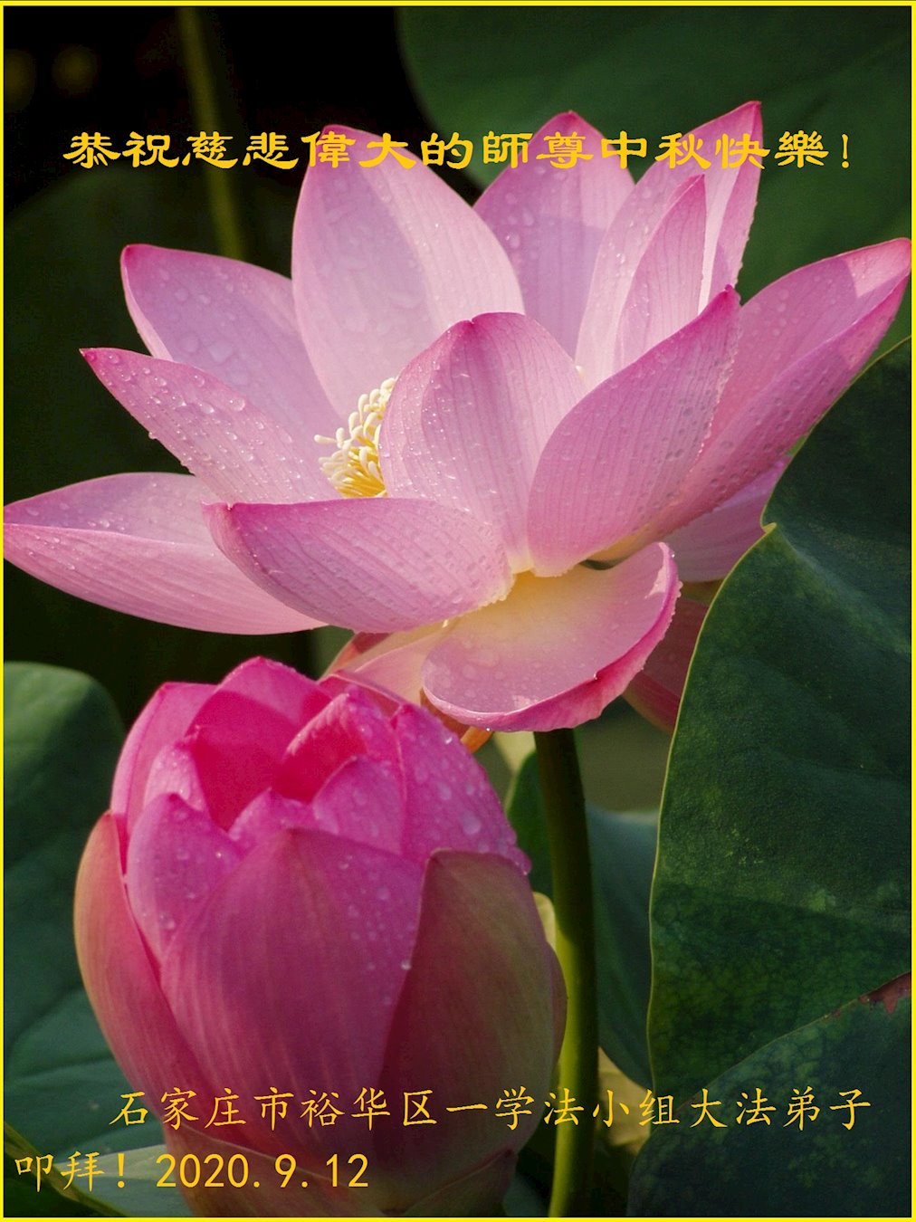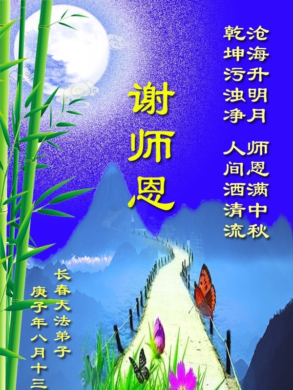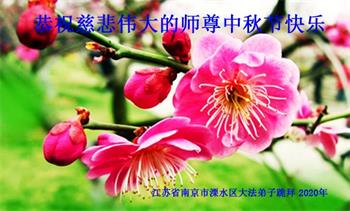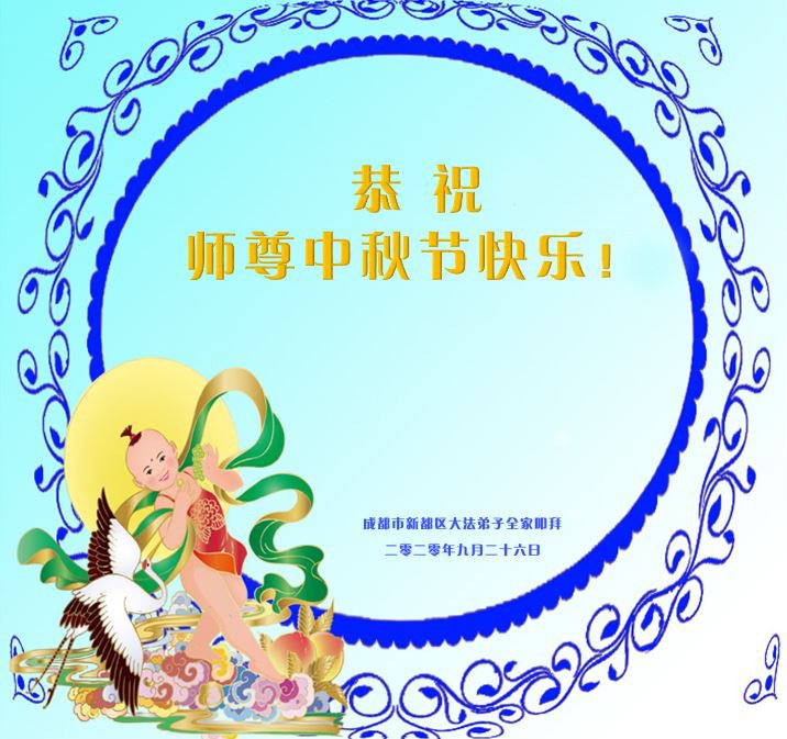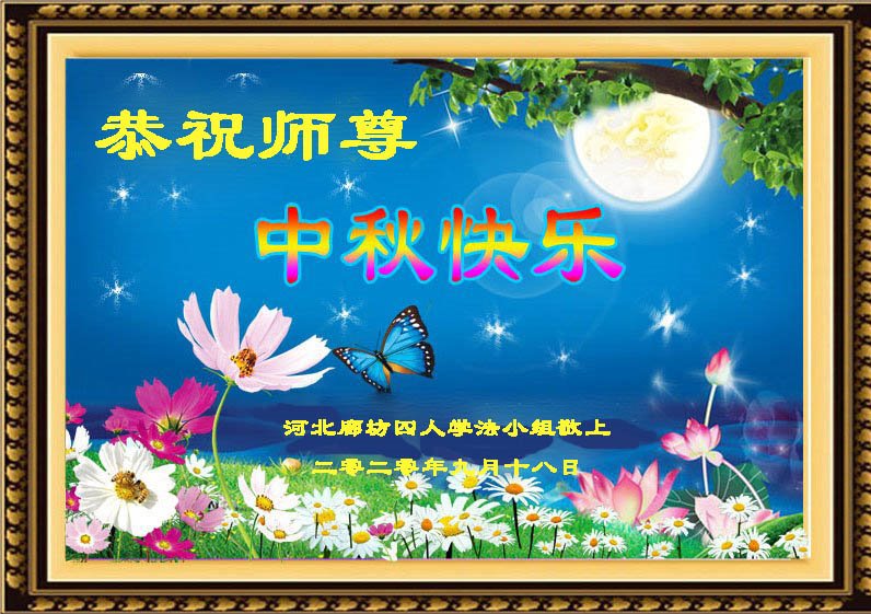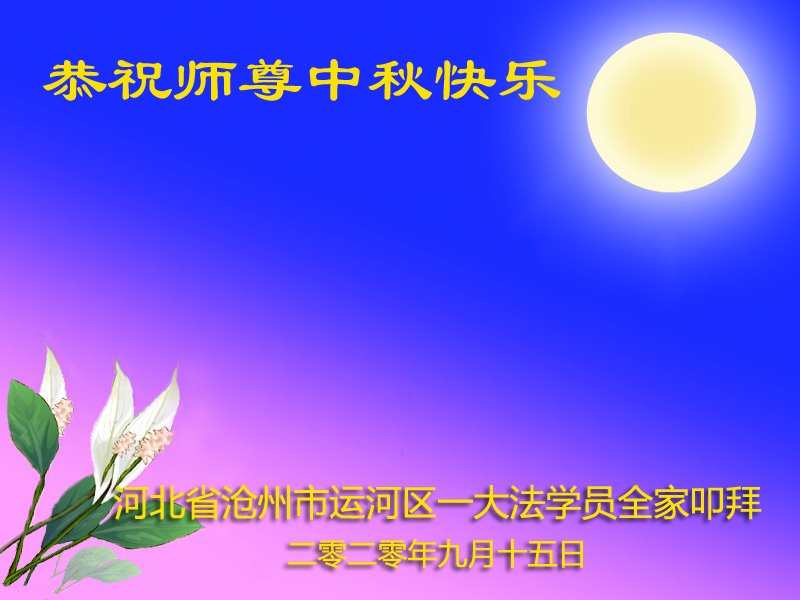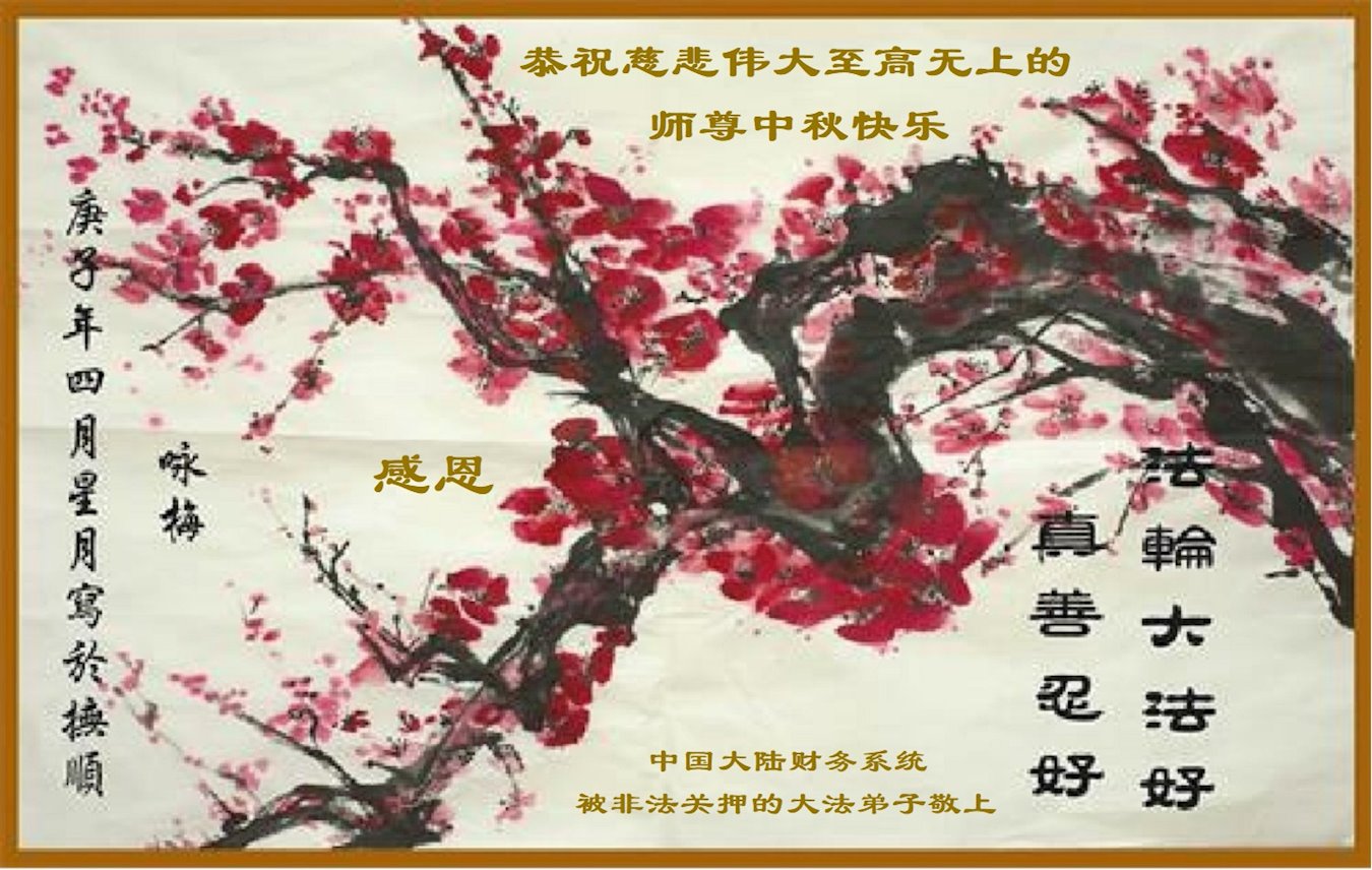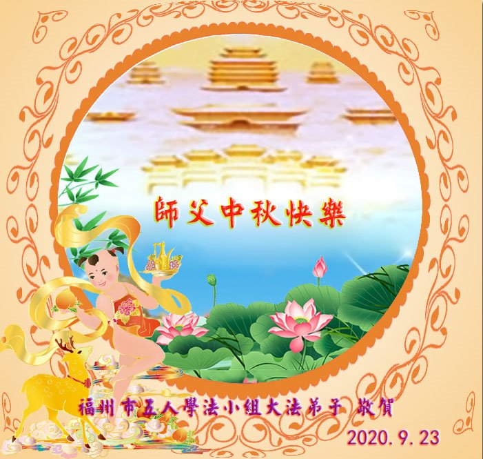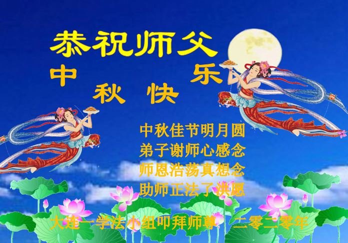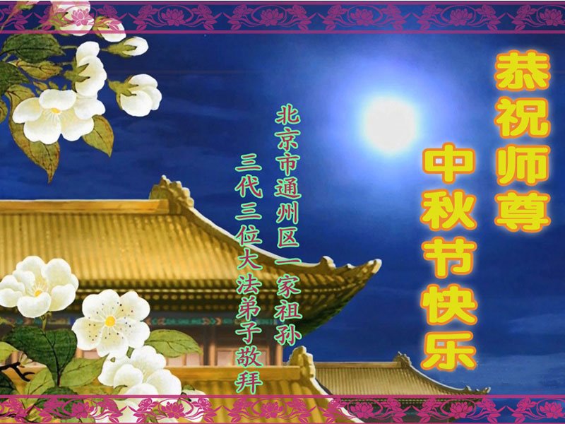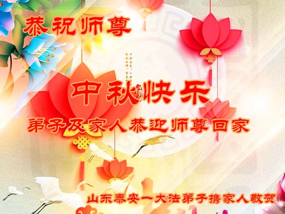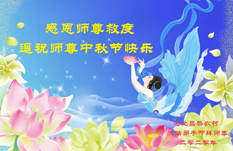 在2020年中秋节即将到来之际,我们夫妻大法弟子恭祝师尊中秋节快乐!我们是北京的一对教师大法弟子。1999年邪党迫害大法之后,我们坚定修炼,都失去了正式工作,但在师父的保护下,我们创办了文化公司,到农村、大学、小学、幼儿园等弘扬传统文化,10年间使几十所学校的师生受益。我们也有了稳定的工作,2020年还住進了翻盖的新房,得到了邻居的赞扬,这都是意想不到的事情,这是恩师的赐予,我们夫妻感谢师父慈悲苦度!