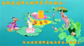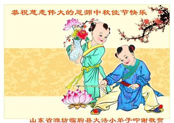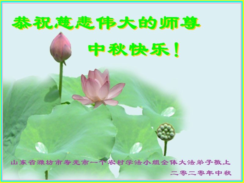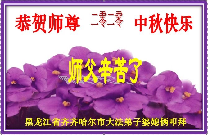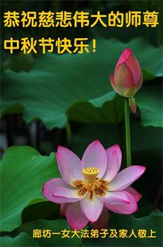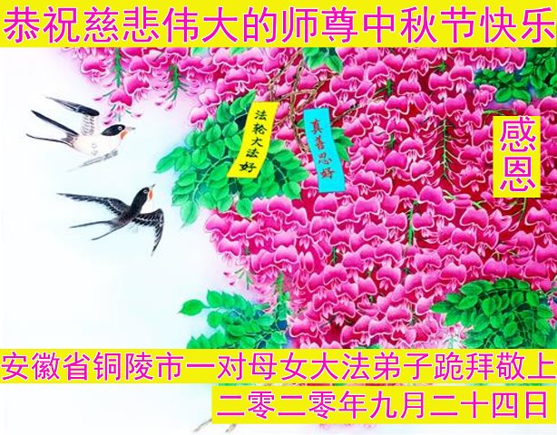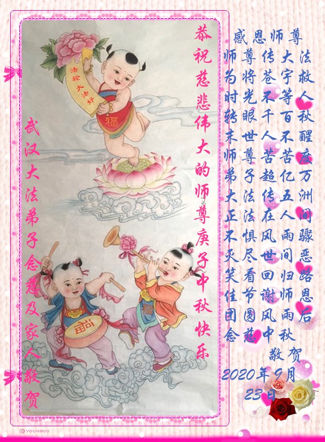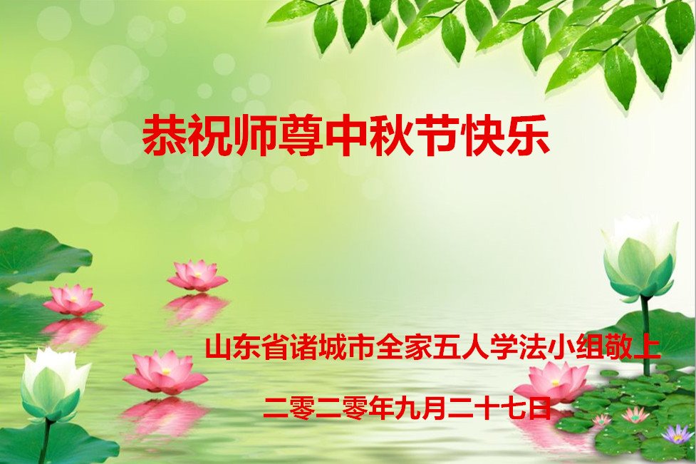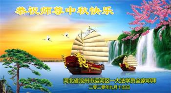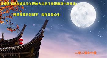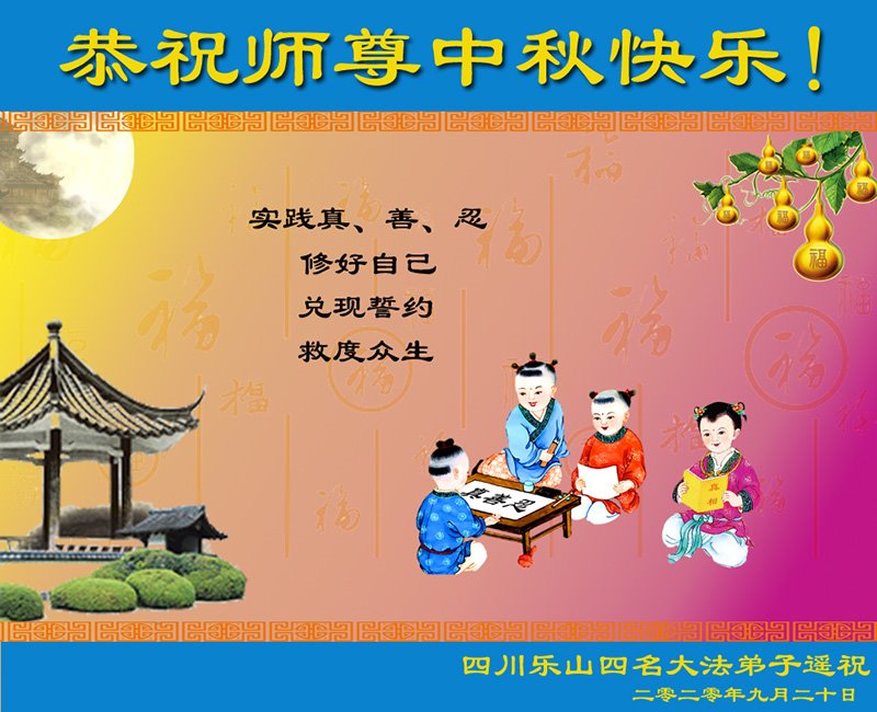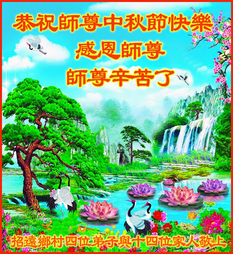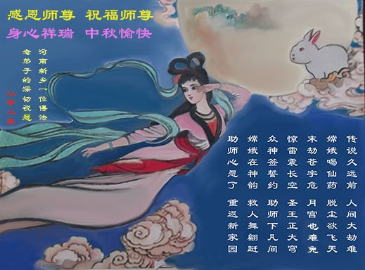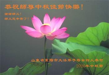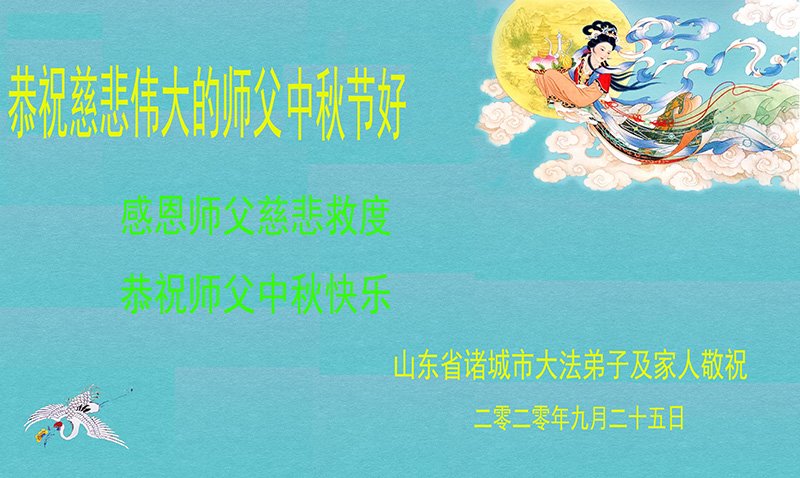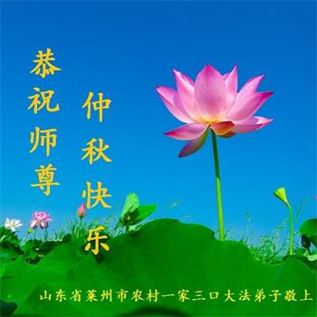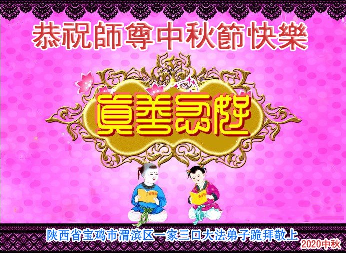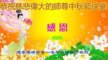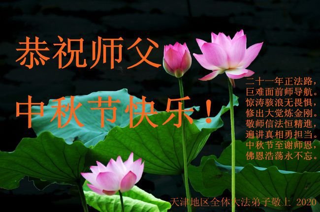 在2020年中秋节即将到来之际,我们夫妻大法弟子恭祝师尊中秋节快乐!我们是北京的一对教师大法弟子。1999年邪党迫害大法之后,我们坚定修炼,都失去了正式工作,但在师父的保护下,我们创办了文化公司,到农村、大学、小学、幼儿园等弘扬传统文化,10年间使几十所学校的师生受益。我们也有了稳定的工作,2020年还住進了翻盖的新房,得到了邻居的赞扬,这都是意想不到的事情,这是恩师的赐予,我们夫妻感谢师父慈悲苦度!