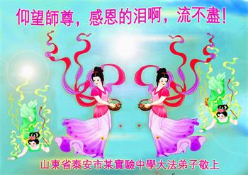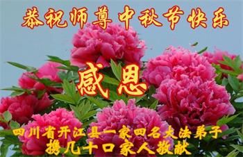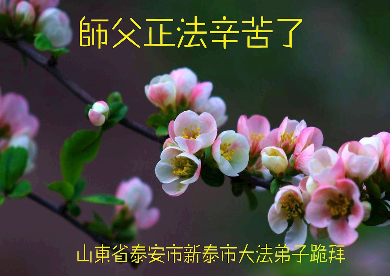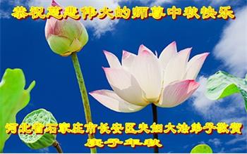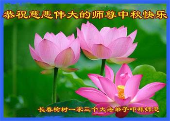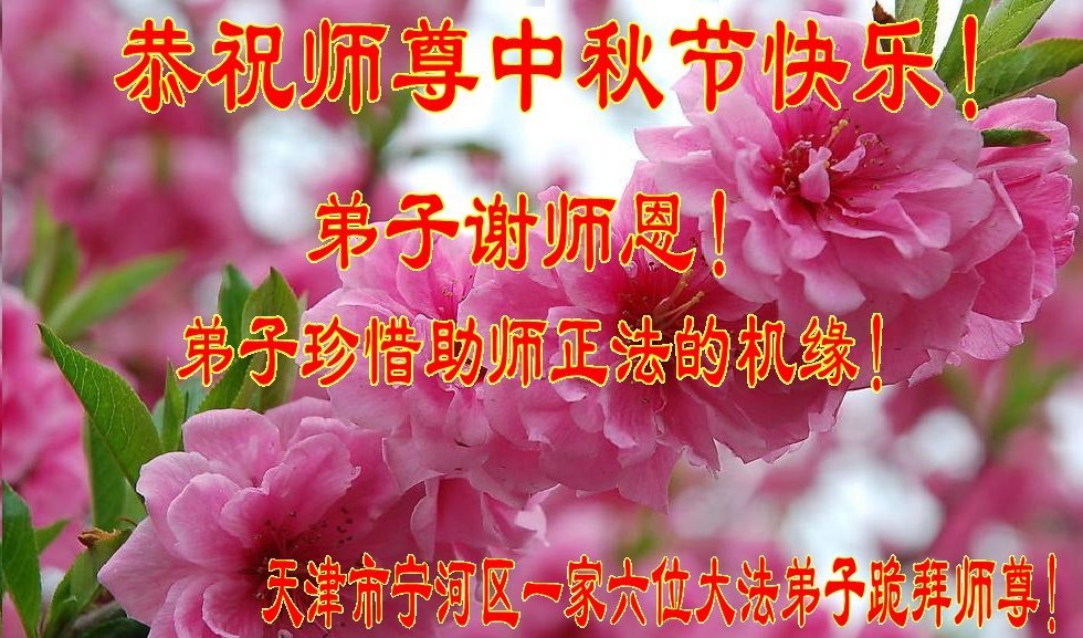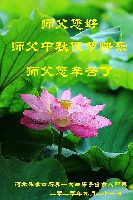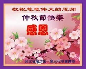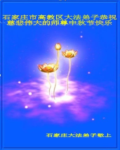 河北省石家庄市炼油厂大法弟子说:“在这阖家团圆的日子,弟子非常想念伟大的师尊!感恩师尊二十多年的一路保护,使弟子能在这场邪恶的迫害中走到了今天,不知师尊为弟子和众生承受了多少苦难,弟子只有无尽的感恩!”