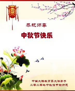 明慧网收到了来自教育、建材工业、铁路、商业、银行、船舶、机车车辆、燃气、服务、建筑、生物制药、卫生、外贸、文卫、财务、审计、航天航空、钢铁集团、军工企业、电力、黄金、油田、交通运输、水利、轻工、医务界、石化、商贸、邮政、新闻界、医务界、化纤、室内设计、音乐界、出版发行、软件行业、文艺、农业、税务,以及公检司法、政府部门公务员、军队等等40多个行业大法弟子的中秋贺词。
