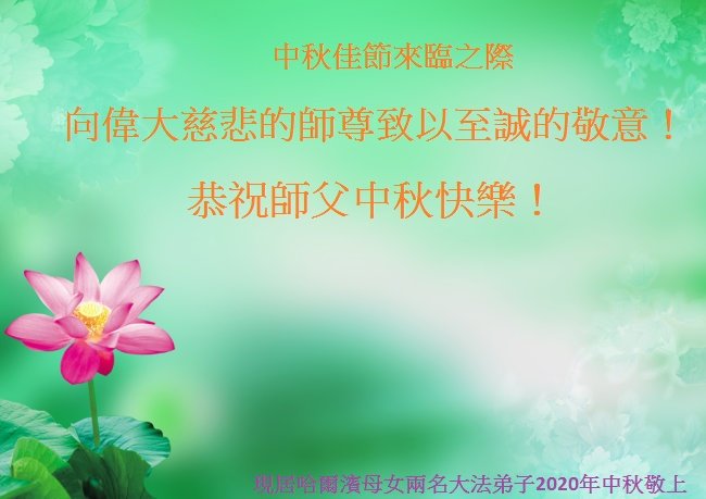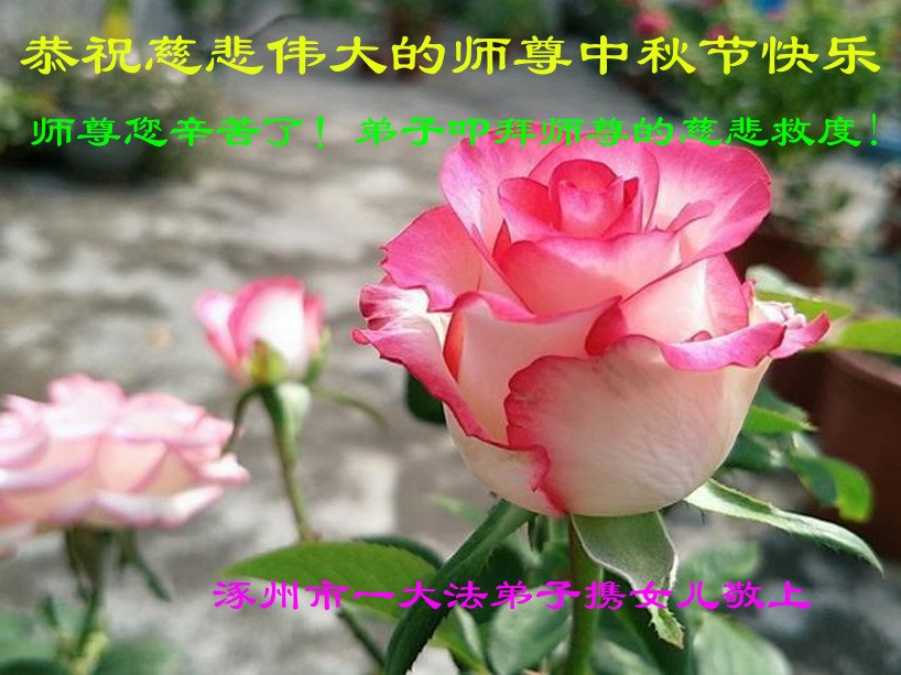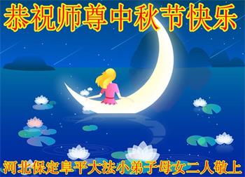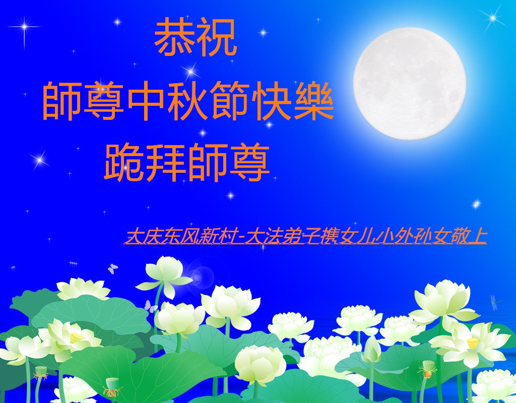 在这时刻,人间任何美好的词句都表达不尽弟子对师尊的感恩,弟子倍感这一刻值千金,值万金,只有抓紧时间精進实修,做好三件事,多救世人,以报师恩,圆满随师还。在此我和我的女儿恭祝师尊中秋节快乐!