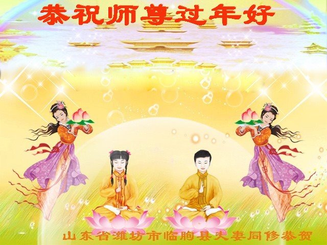 山东省诸城市明真相的两位老年夫妇恭祝师父新年快乐!
