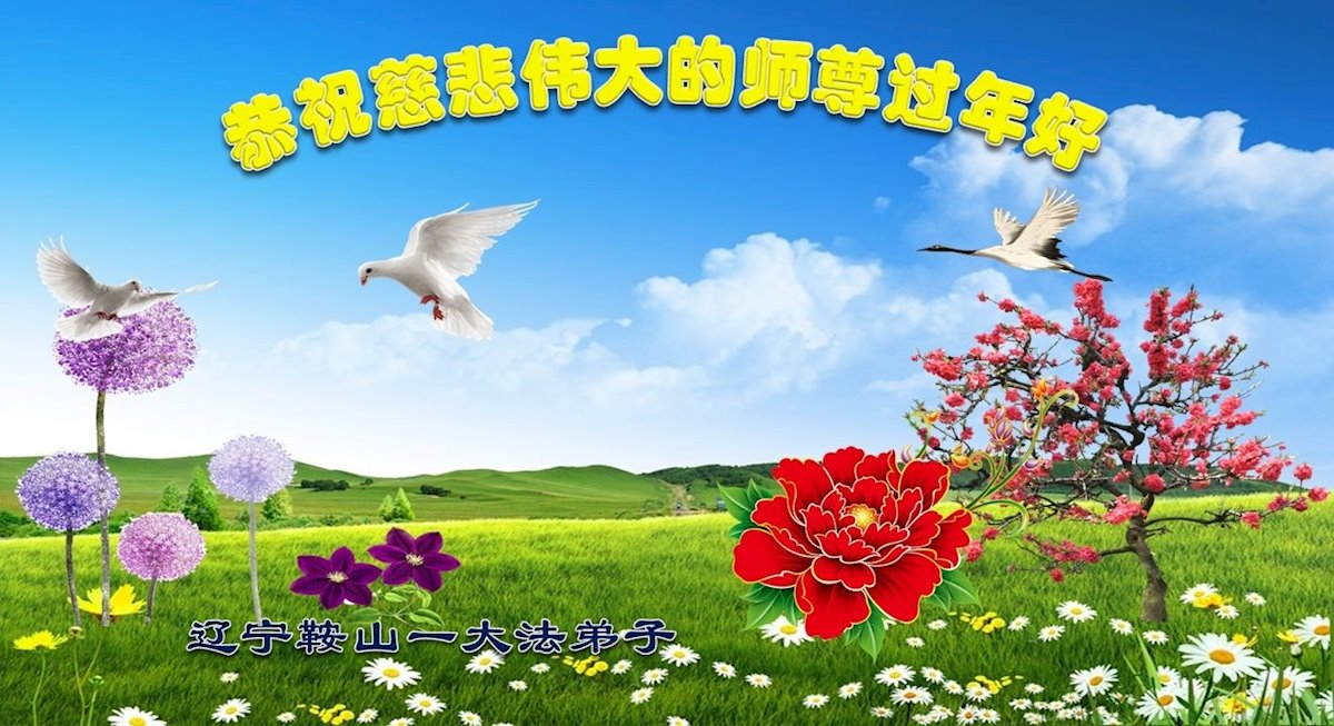 给大法师父拜年啦!感恩大法师父这些年对我的保护,使我身体健康,事事顺利、幸福满满。在这新年来临之际,恭祝大法师父新年快乐!