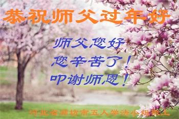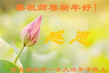 河北省保定市一个不修炼的常人祝李大师新年快乐!我已经八十多岁了,在这么多年里我看到了我修炼的儿媳的变化,知道法轮大法是好的,我每天都在念“法轮大法好”,再一次祝李大师新年快乐!