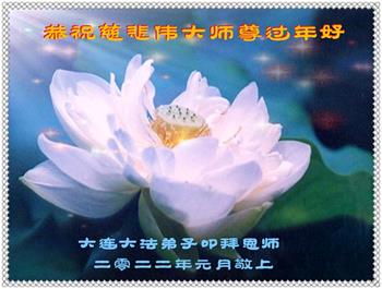 【明慧网二零二二年一月二十九日】(明慧记者章韵报道)自法轮大法弘传于世,三十年过去了,法轮大法的美好、坚忍和慈悲感动了世人,使他们身心受益。在师尊救度苍宇、法正洪穹的伟大正法中,新的一年到来了。值此辞旧迎新之际,多伦多大法弟子恭祝师尊过年好!