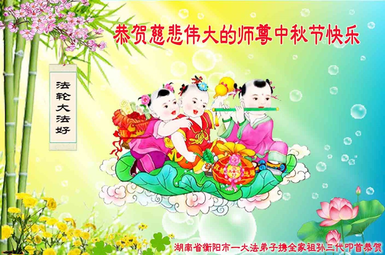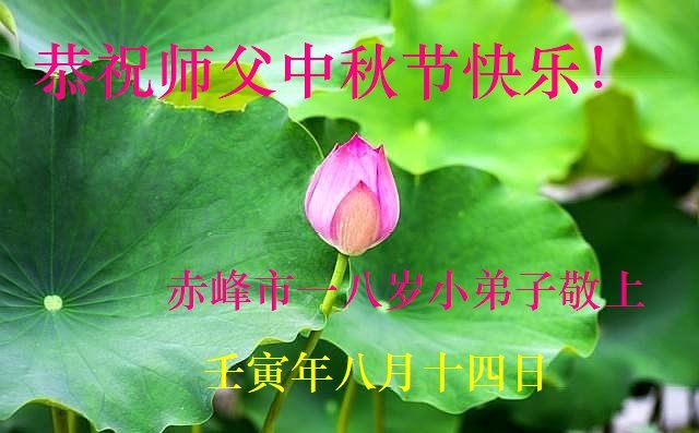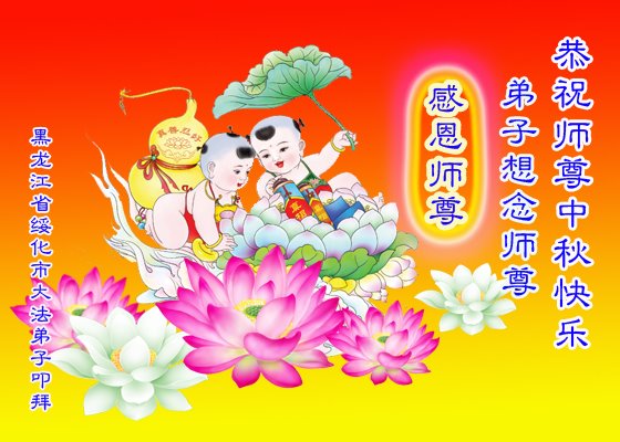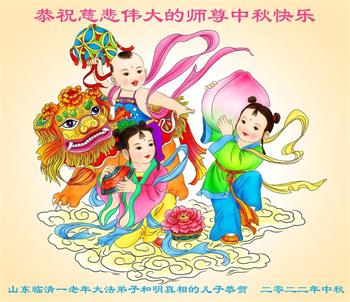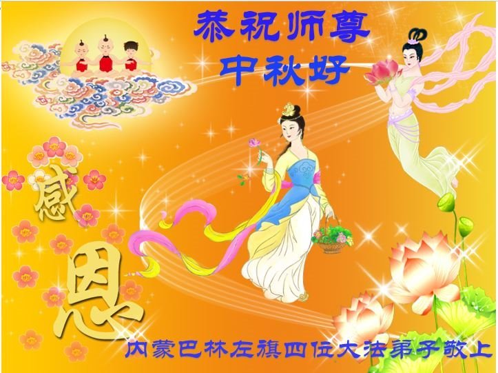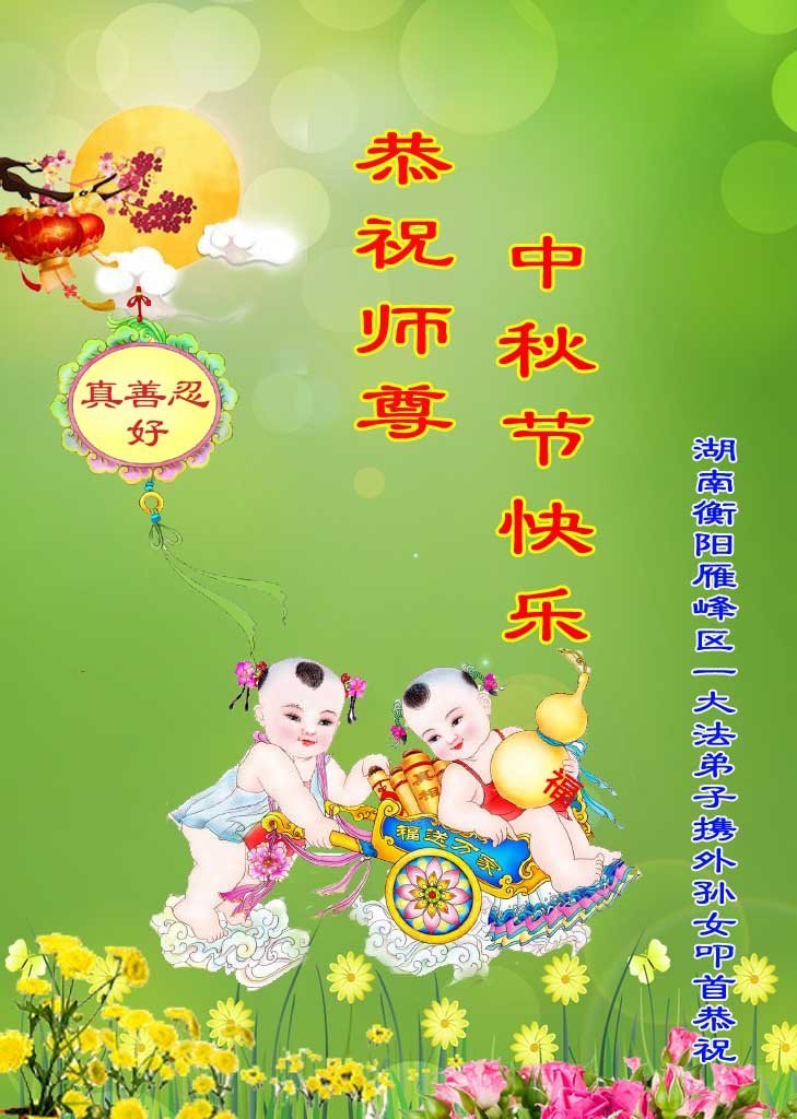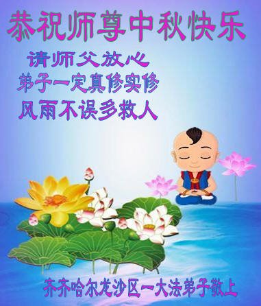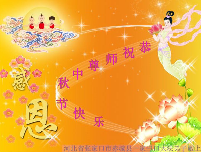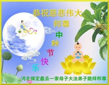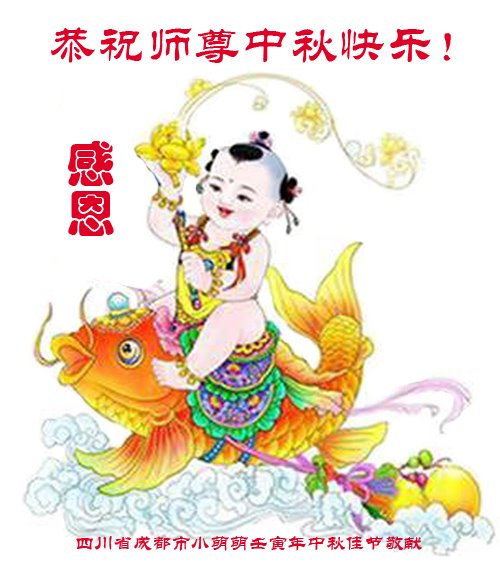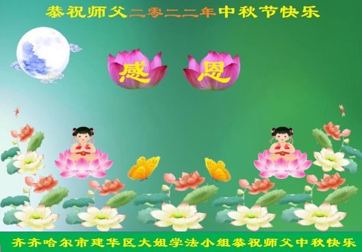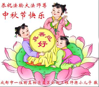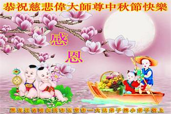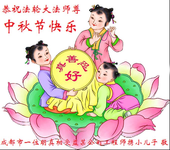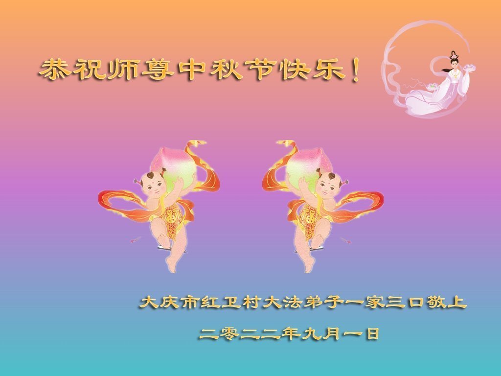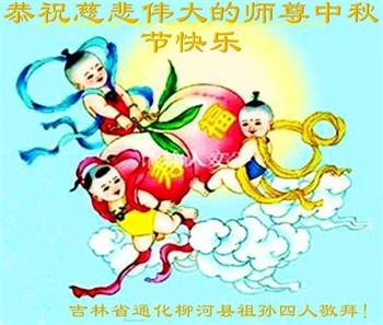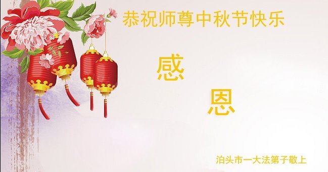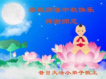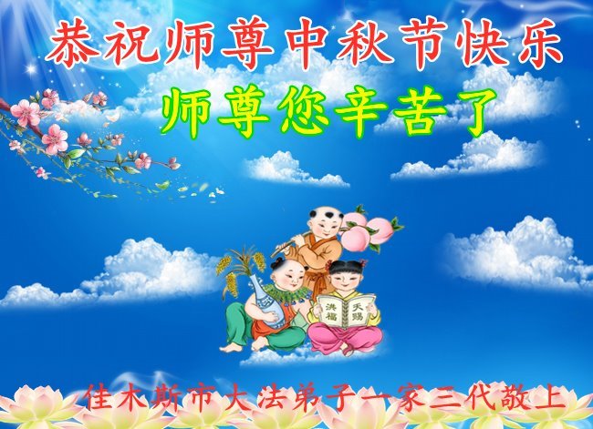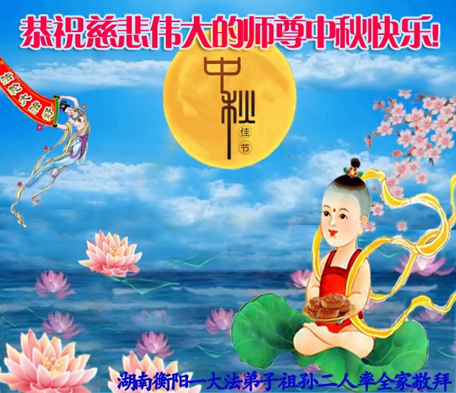 感谢师尊的无量慈悲!多次让陷入迷茫中的弟子回归正道,弟子叩谢师恩!在这举家团圆的日子里,弟子期盼师尊早日回到中国大陆与弟子团聚!3岁大法小弟子说:“恭祝师尊中秋节快乐!”