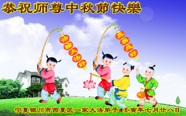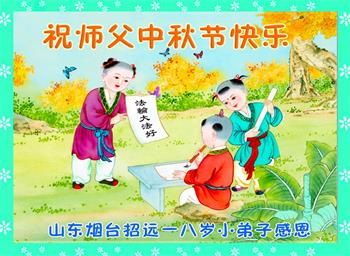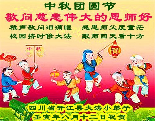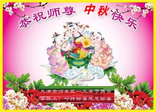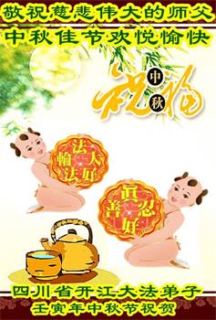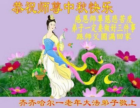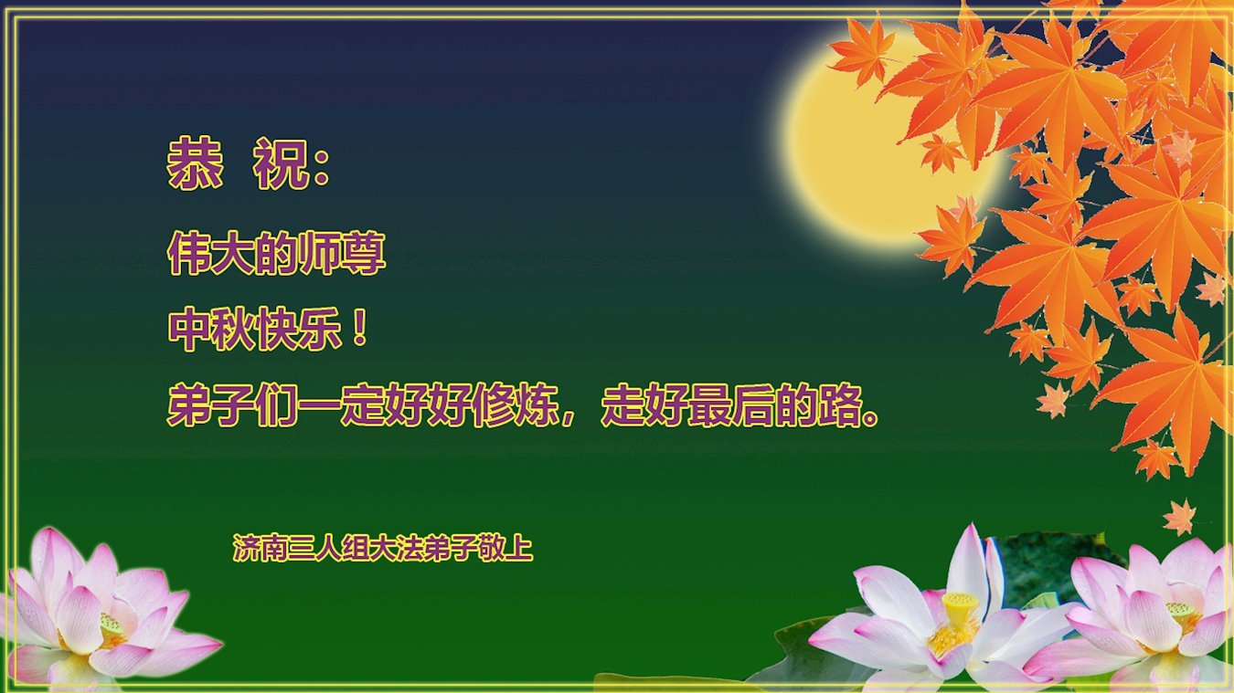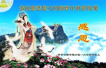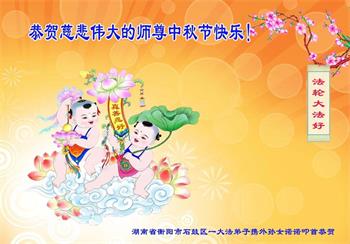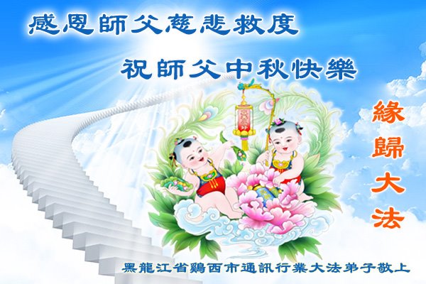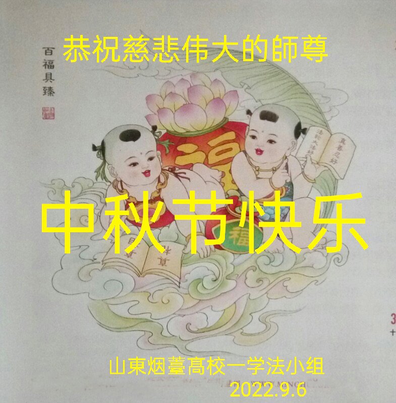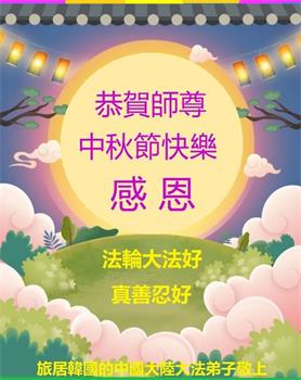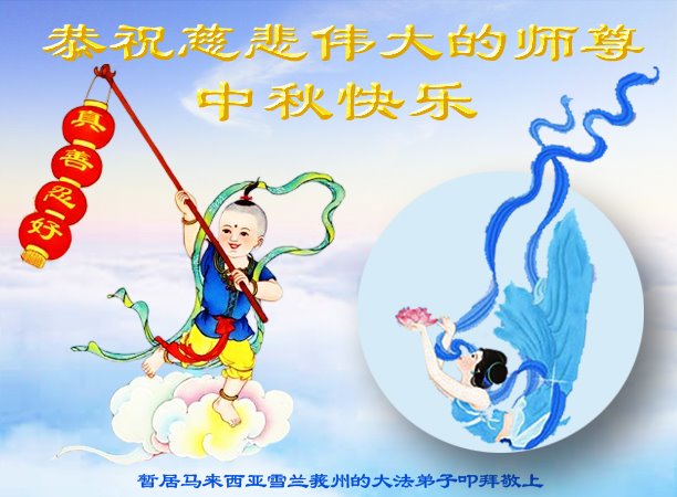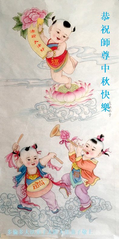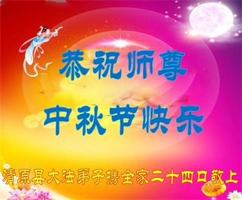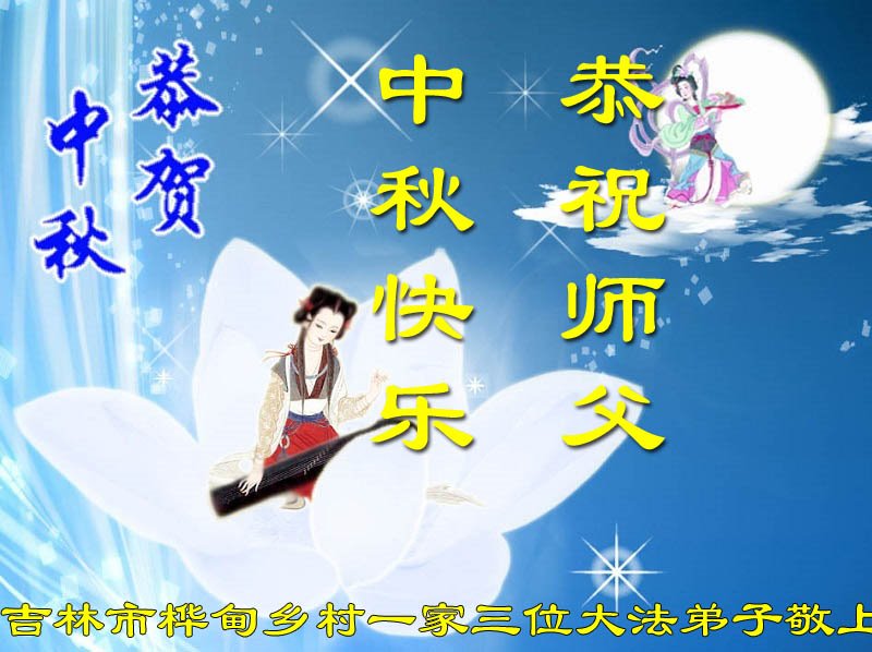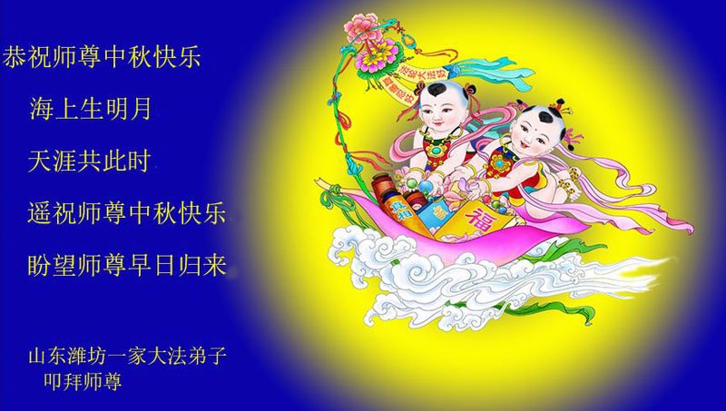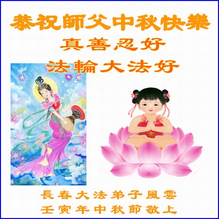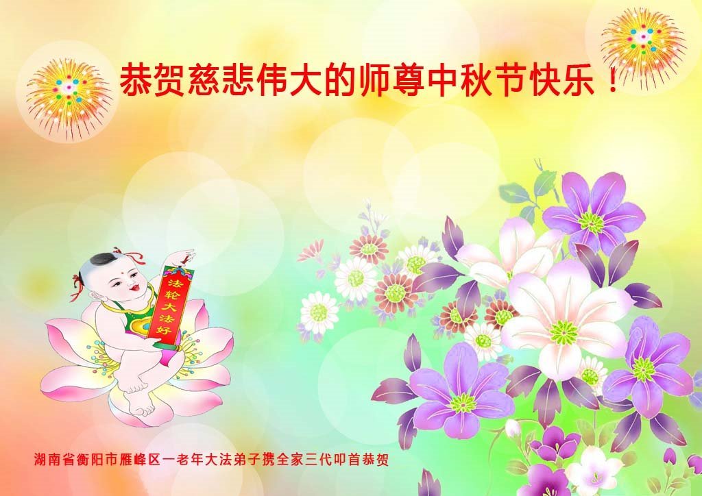 感谢师尊的无量慈悲!多次让陷入迷茫中的弟子回归正道,弟子叩谢师恩!在这举家团圆的日子里,弟子期盼师尊早日回到中国大陆与弟子团聚!3岁大法小弟子说:“恭祝师尊中秋节快乐!”