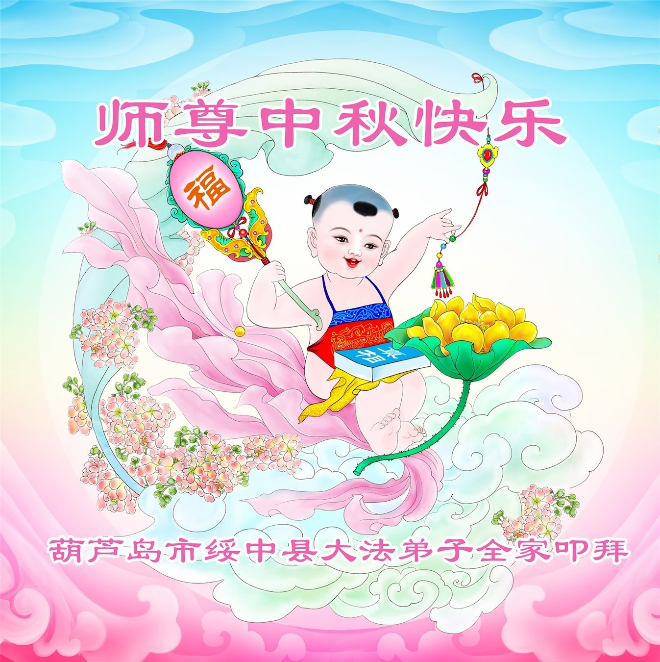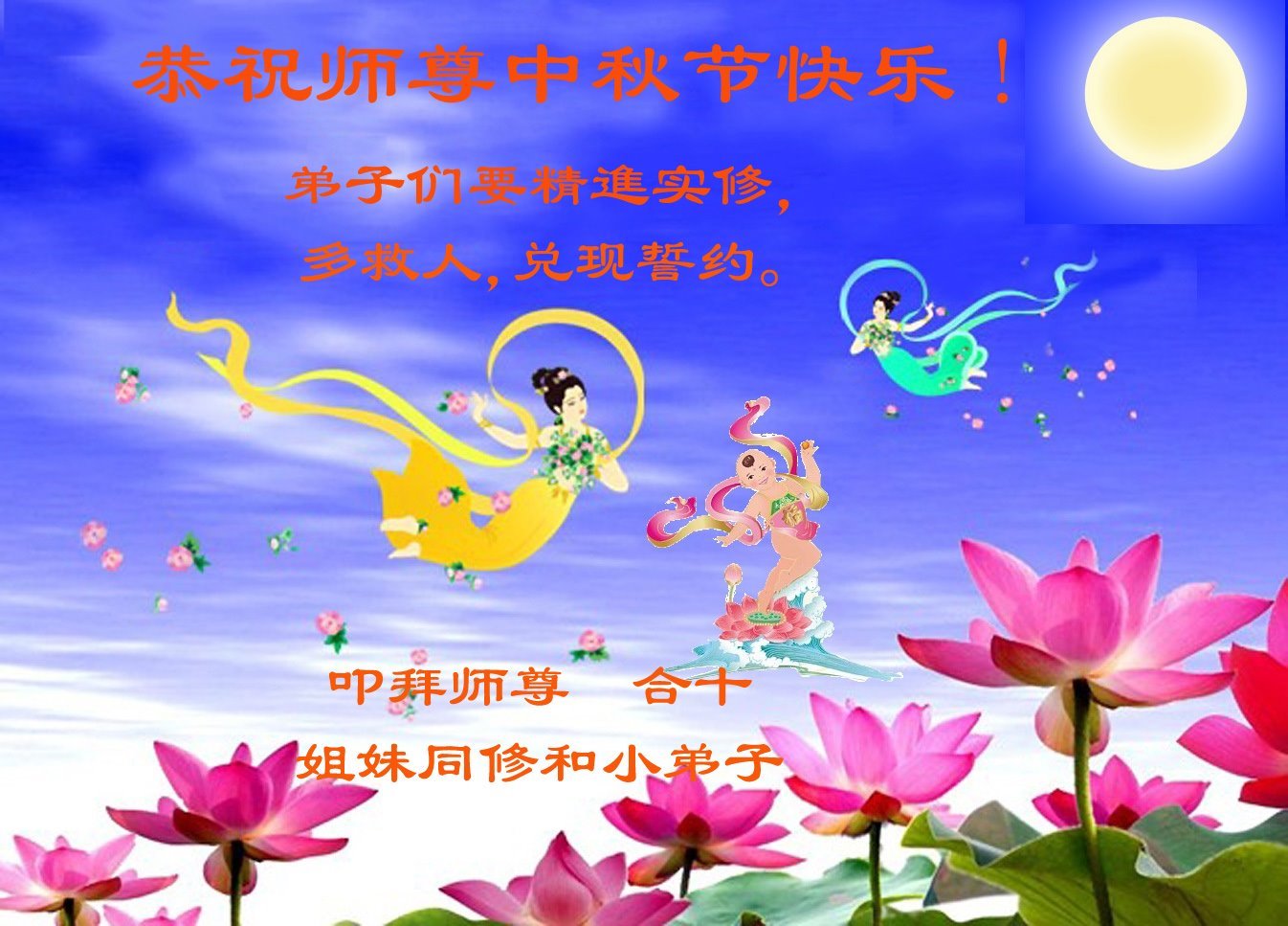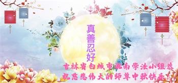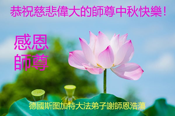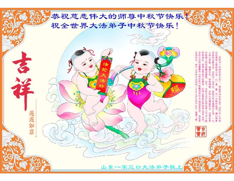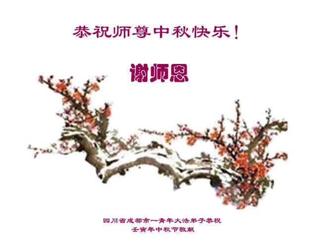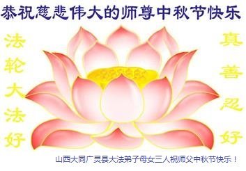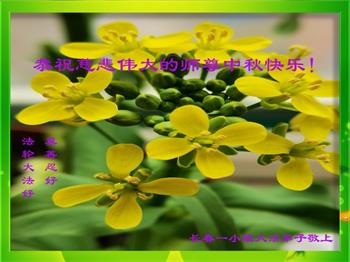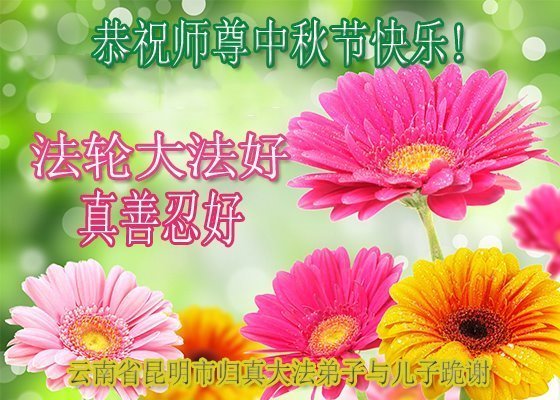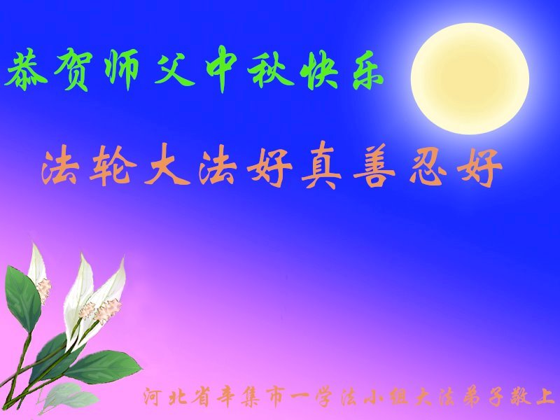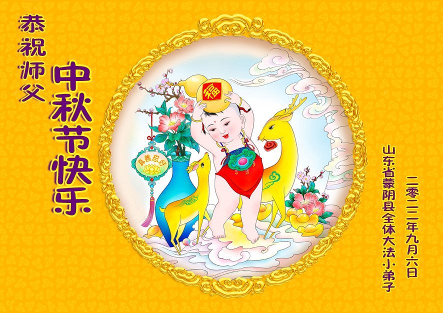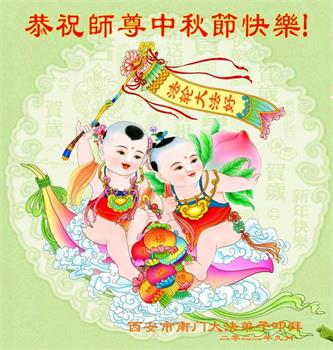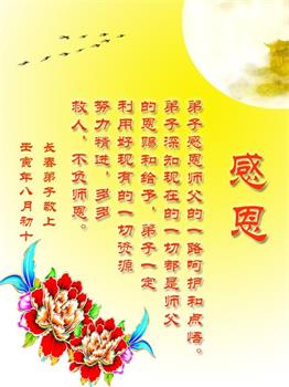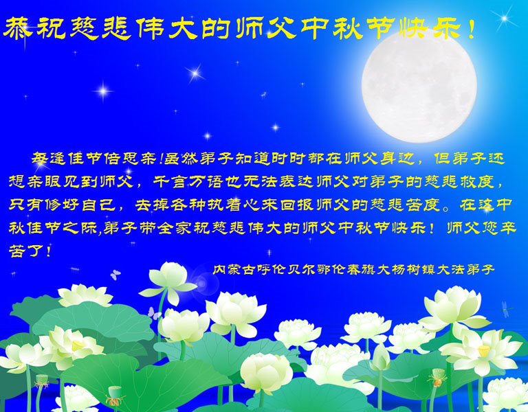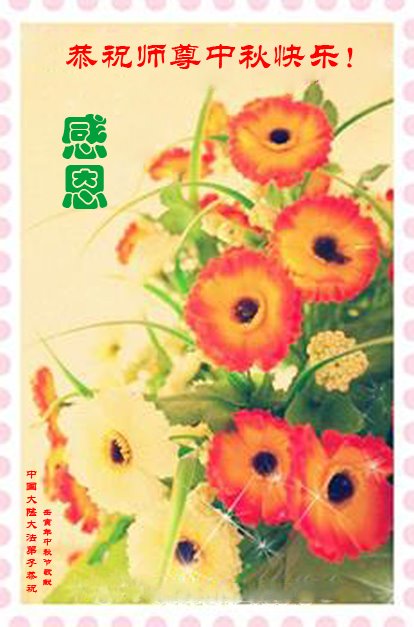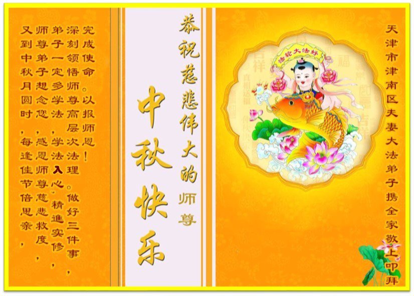 感谢师尊的无量慈悲!多次让陷入迷茫中的弟子回归正道,弟子叩谢师恩!在这举家团圆的日子里,弟子期盼师尊早日回到中国大陆与弟子团聚!3岁大法小弟子说:“恭祝师尊中秋节快乐!”