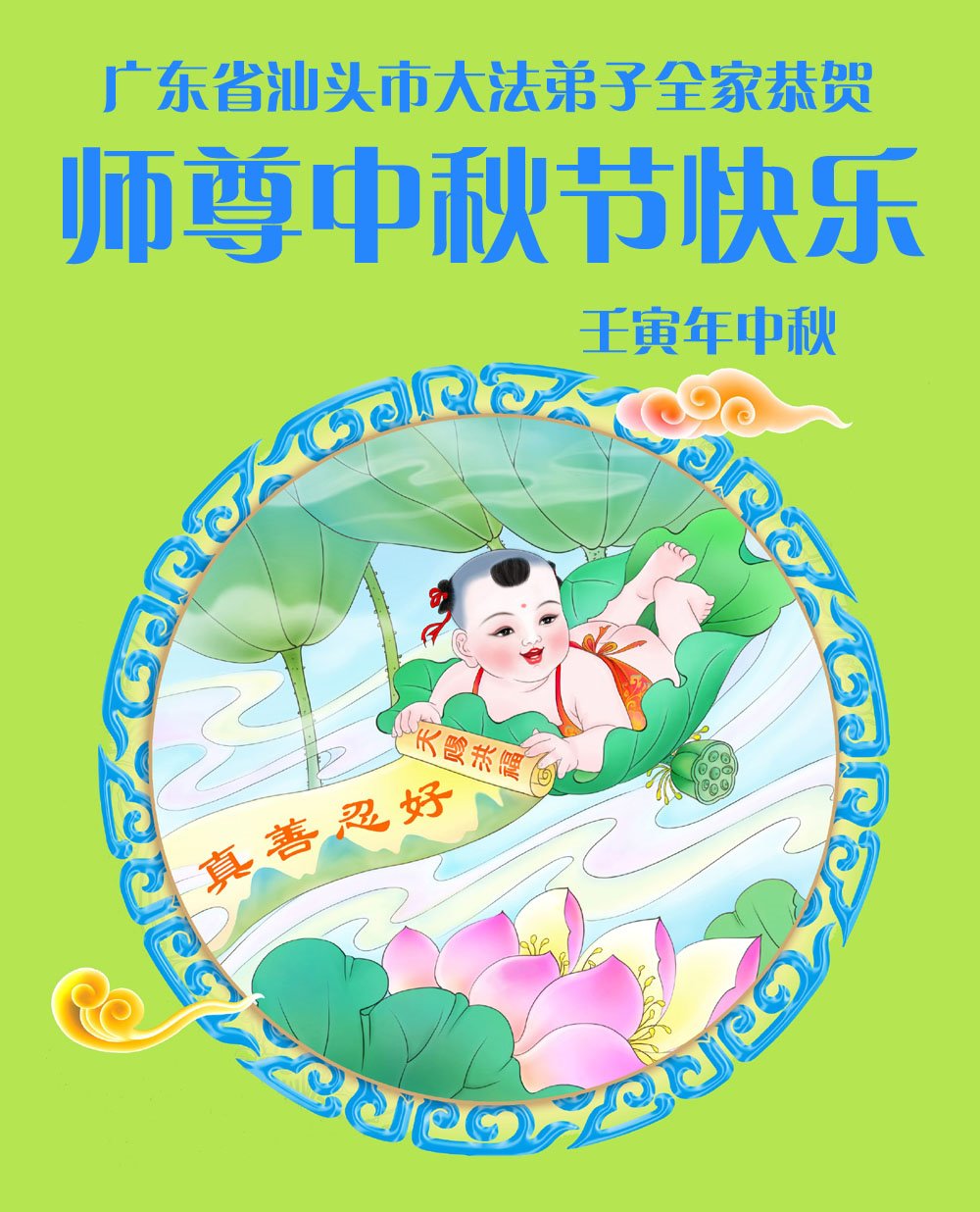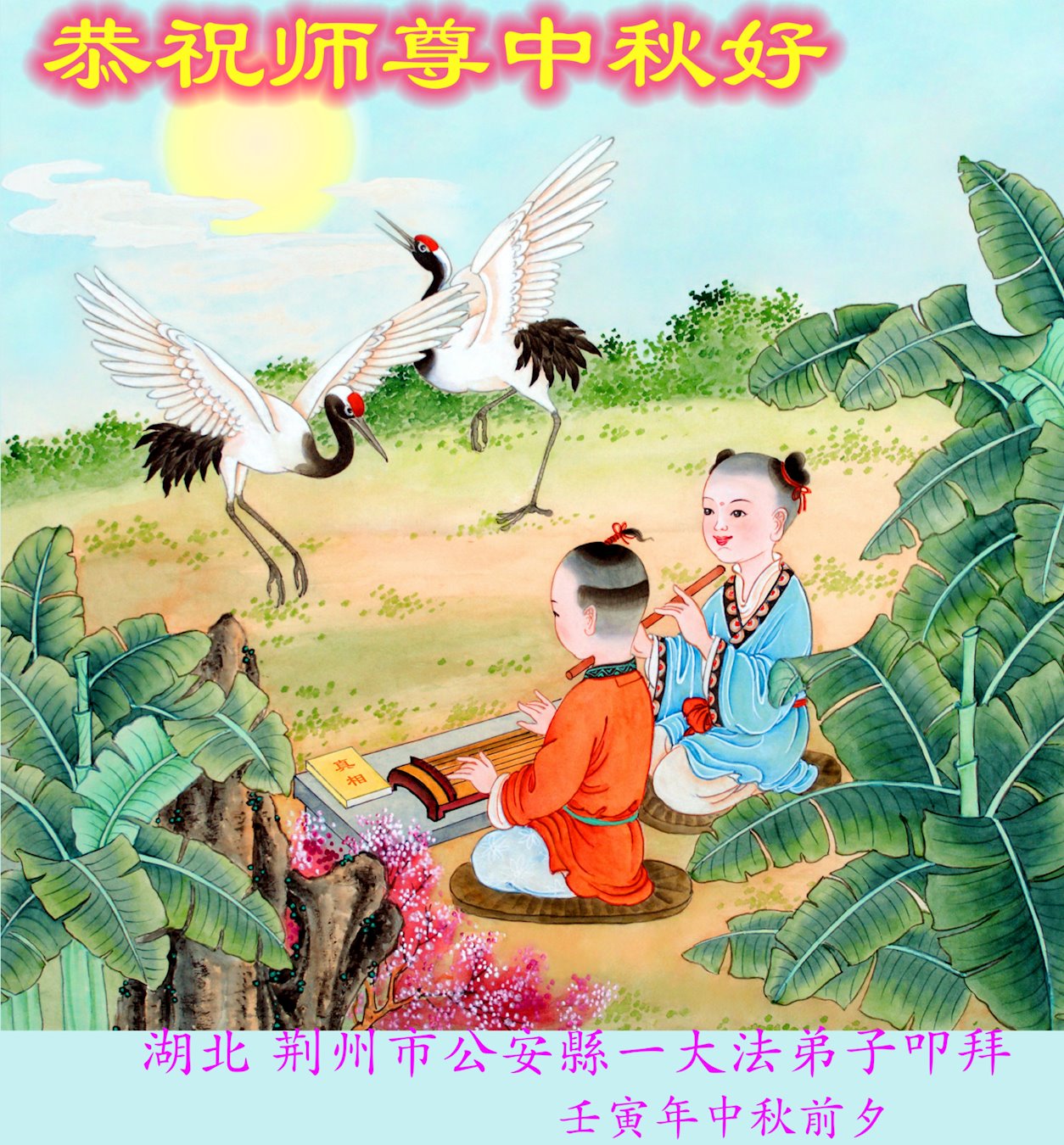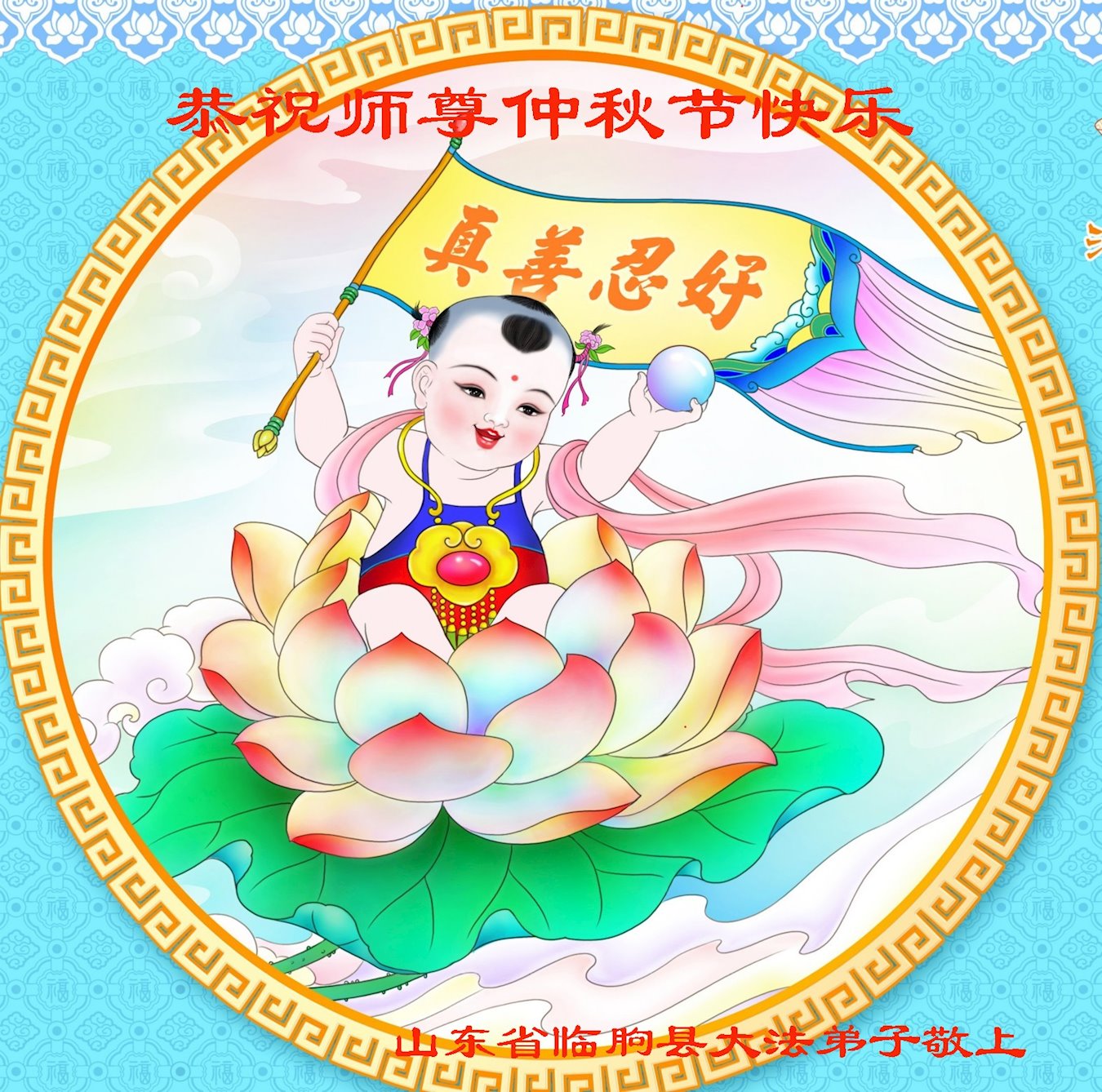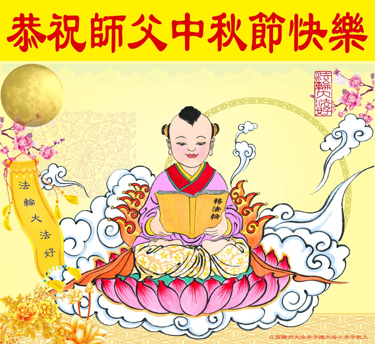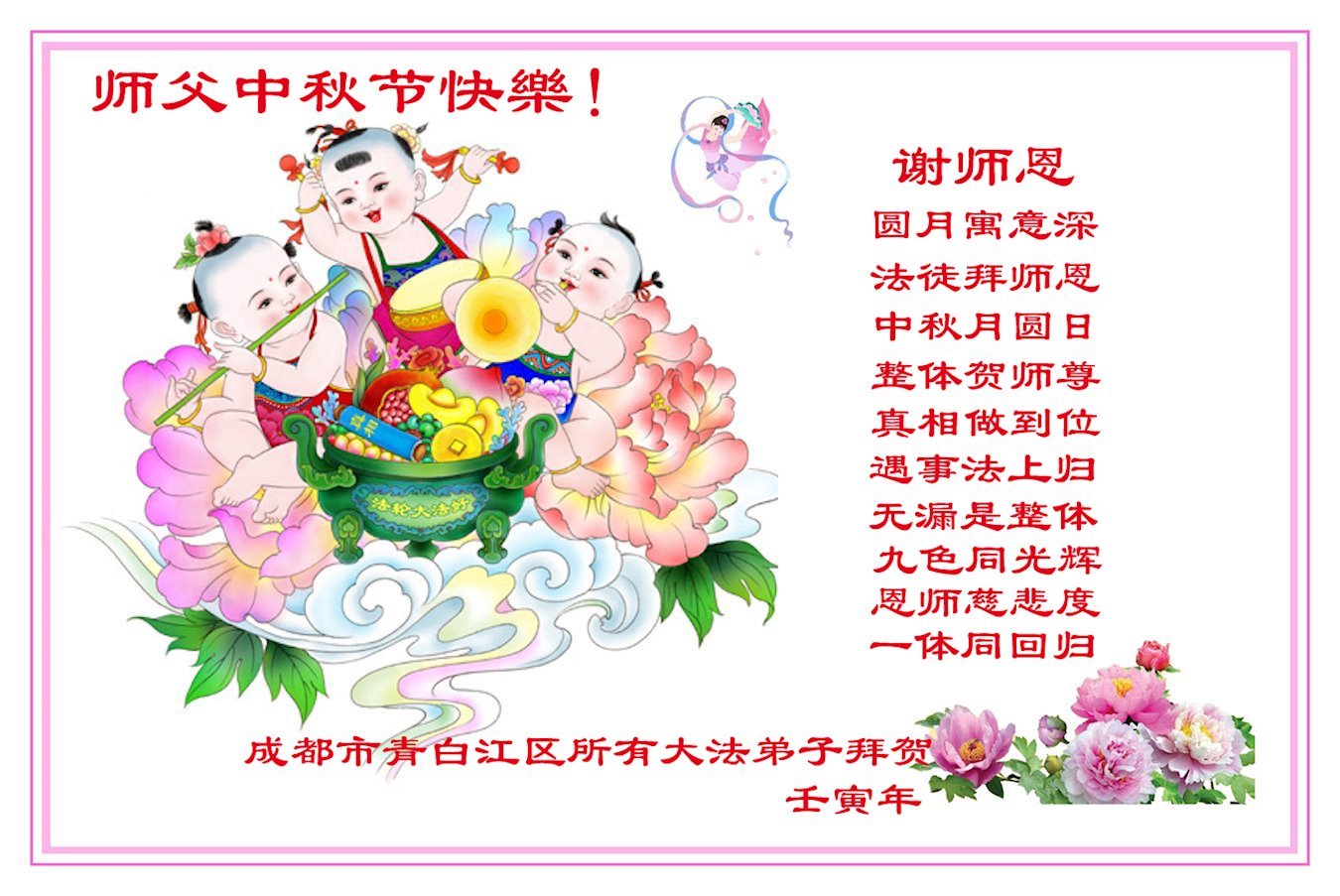 感谢师尊的无量慈悲!多次让陷入迷茫中的弟子回归正道,弟子叩谢师恩!在这举家团圆的日子里,弟子期盼师尊早日回到中国大陆与弟子团聚!3岁大法小弟子说:“恭祝师尊中秋节快乐!”