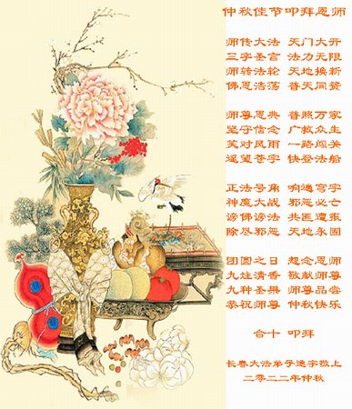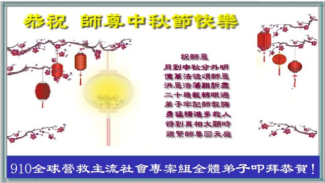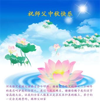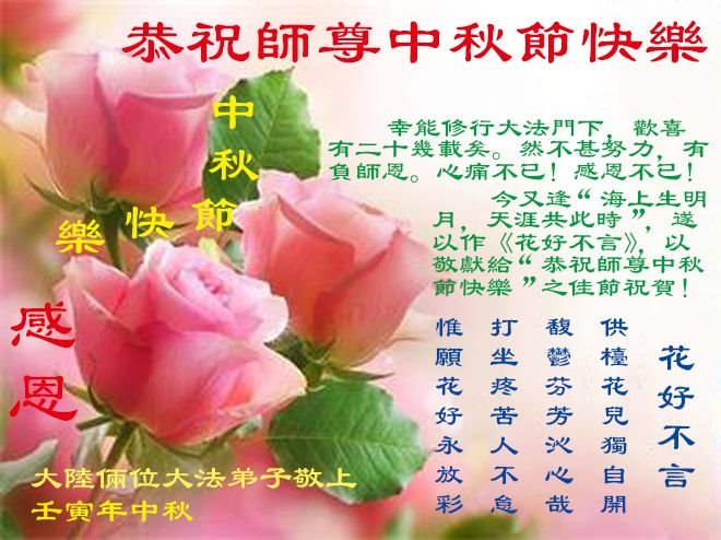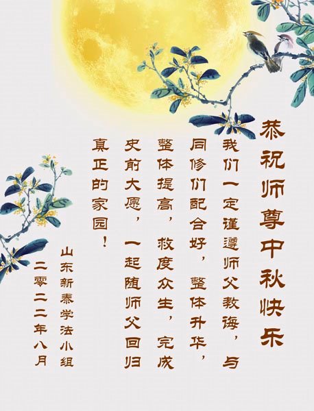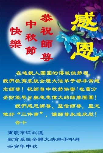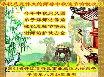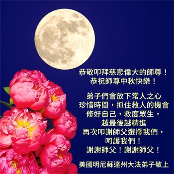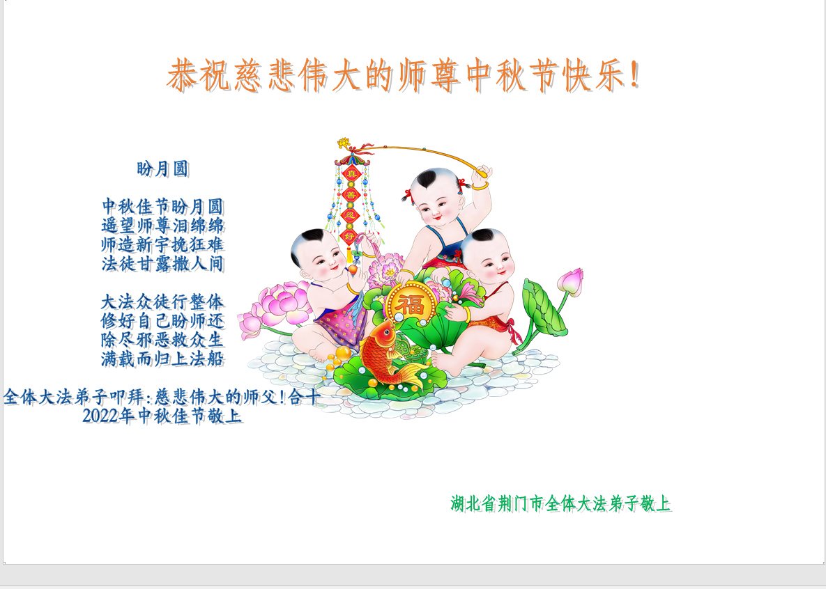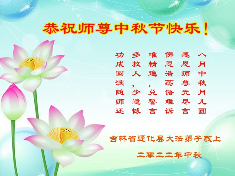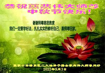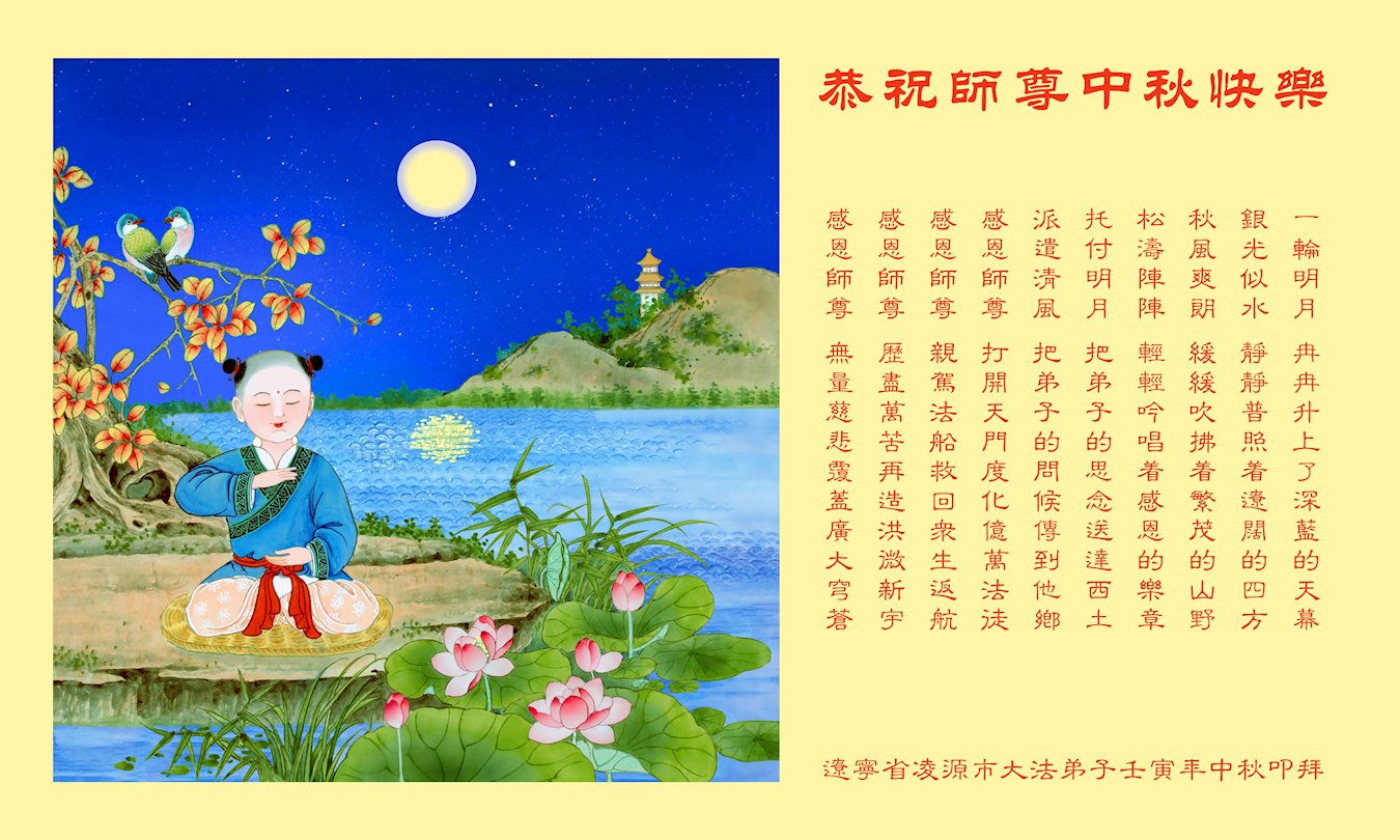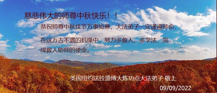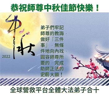 <英文版: http://en.minghui.org/html/articles/2022/9/11/203622.html>大陆11省、直辖市大法弟子恭祝师尊中秋好(31条)