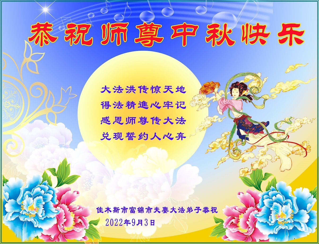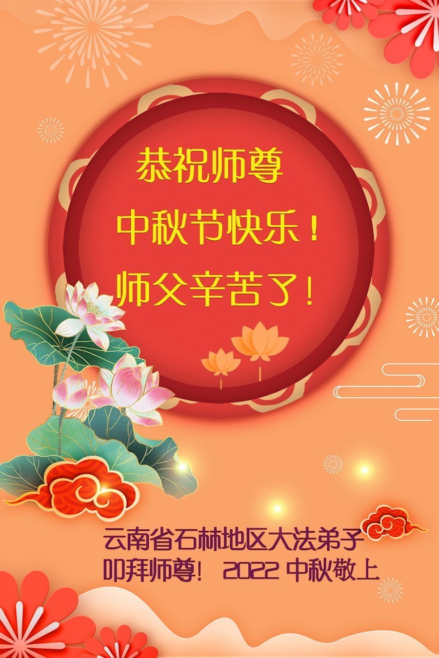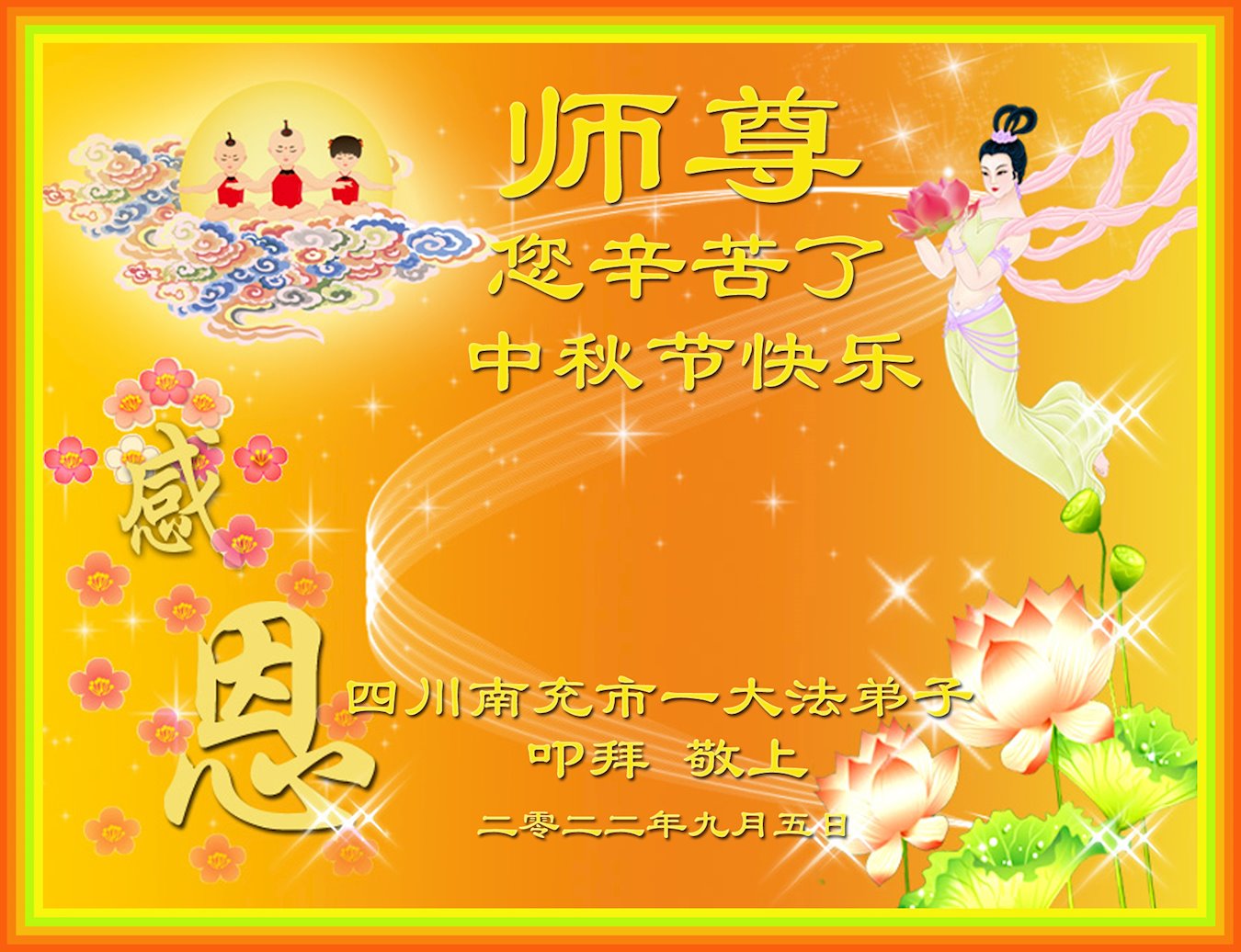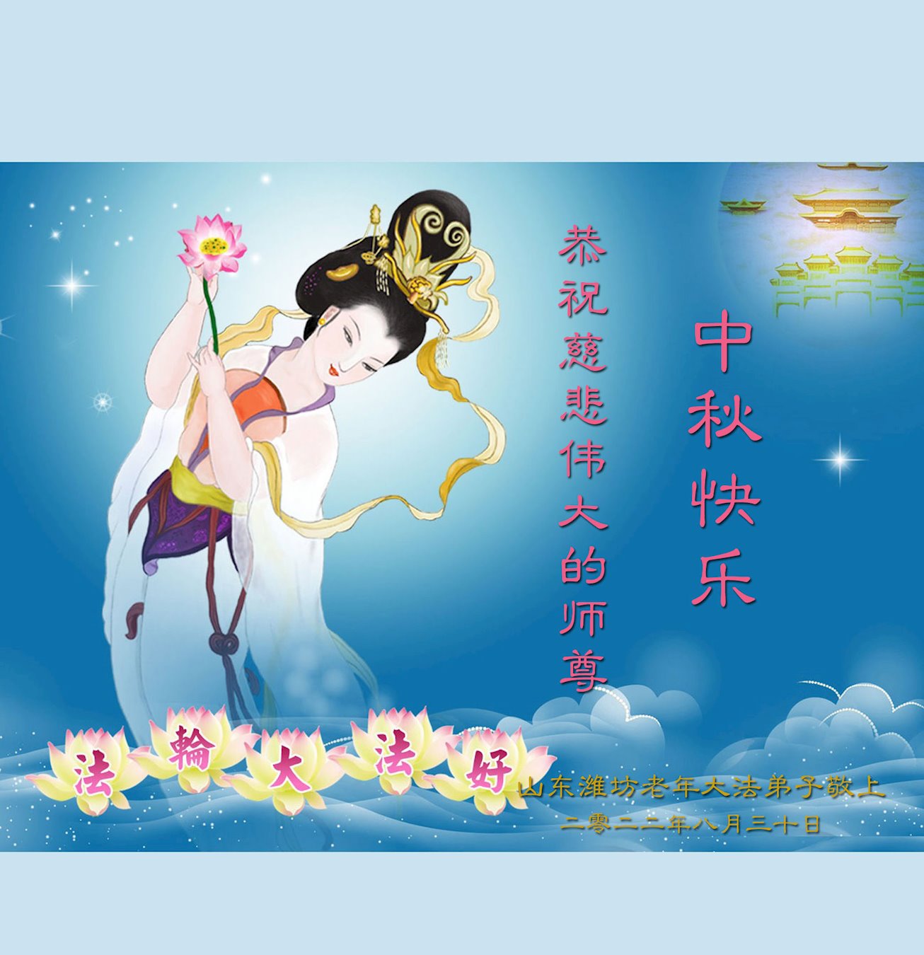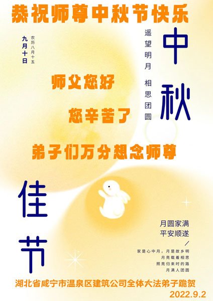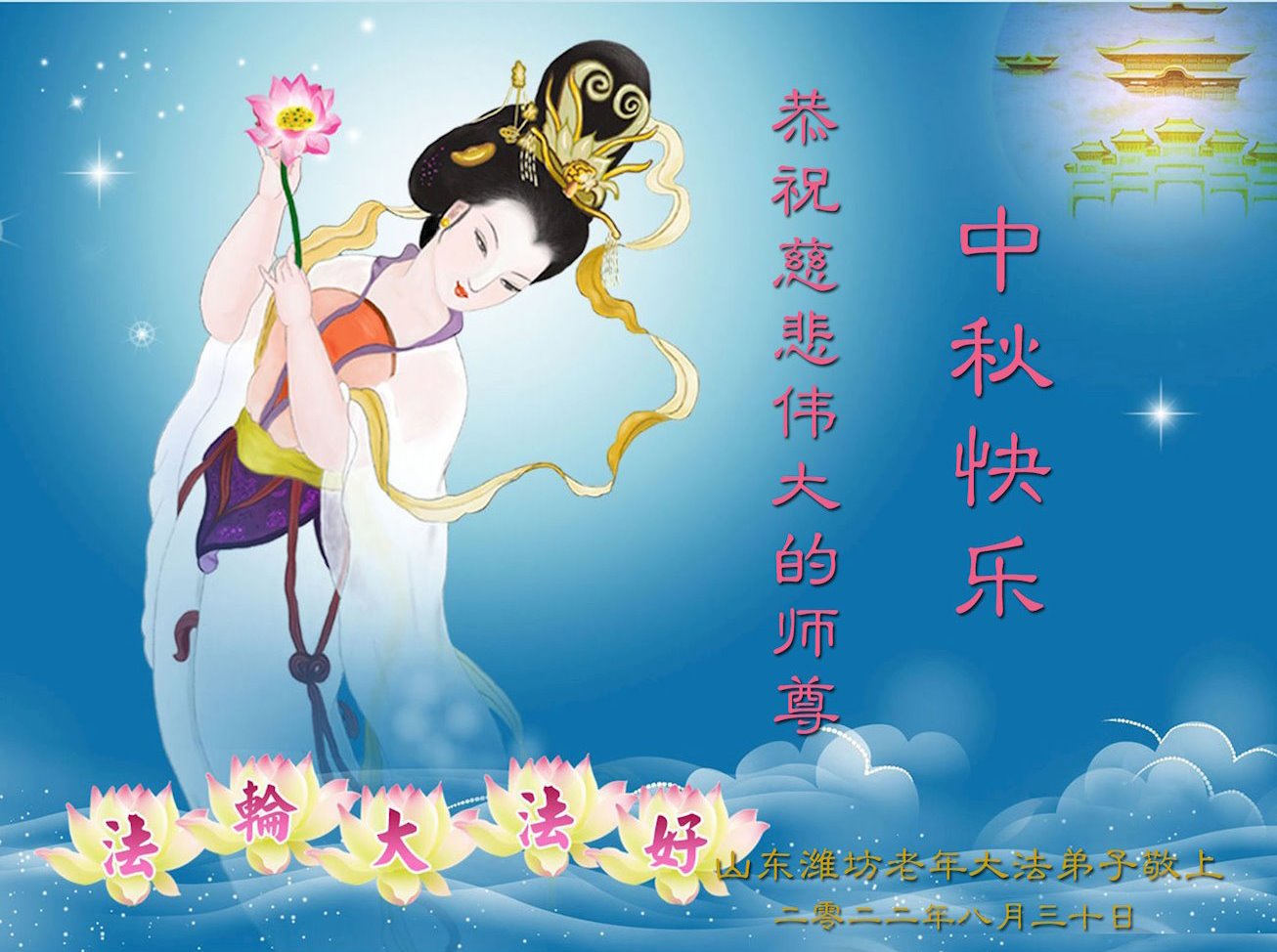 <英文版: http://en.minghui.org/html/articles/2022/9/11/203622.html>大陆11省、直辖市大法弟子恭祝师尊中秋好(31条)